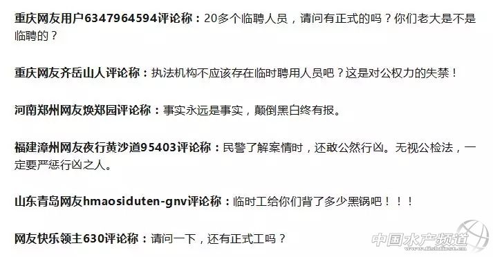 中國水產頻道報道, 城管電魚引沖突,被發現后竟將魚塘主人打傷住院 圖為當事人 張富強 重慶市巴南區惠民街道龍鳳村村民張富強5月22日晚發現有數人在其魚塘電魚,在前往魚塘制止電魚過程中,與對方發生肢體沖突,張富強和對方一名叫張彬的男子不同程度受傷,事后他得知張彬是一名城管。 據悉,這名池塘的承包者叫張富強,今年54歲。2016年12月張富強投入30-40萬元左右承包了這塊約8畝的魚塘,開始搞起生態休閑養魚來,年租金約為5千元左右。據張富強介紹稱:“魚塘內有上萬斤魚,平時就是靠釣魚和賣魚掙錢維持家用,今年正值該回本的時候!” 5月22日22時晚,張富強像以往一樣吃過晚飯后開始巡視著魚塘的保衛工作。25分許看到魚塘內有幾束手電筒光晃來晃去。憑借多年養魚經驗推斷有人來他的魚塘偷魚。張富強一邊回家換筒靴、一邊給他的堂弟張富祥打電話并向派出所尋求幫助。 由于擔心池塘內的魚被大量電死,張富強發現池塘內大致有八九個人(在電魚)便朝著魚塘方向大喊了一聲。對方隨之開始四處亂竄逃離現場。這時,張富強表弟張富祥也趕到現場,兩人一起攔住了身背電瓶跑在最后的一男子。 配圖來源網絡,僅用于模擬現場 張富強本想扣下這名男子身上背的電瓶作為他們私自電魚的有力證據。但該男子用身背電瓶的工具電他,隨即張富強兄弟倆和該男子打了起來。 不一會,派出所同事開車趕到現場。張富強隨后將要停放在路邊車輛車牌號全部拍了下來,這些車的車牌號分別為“渝BRDXX1”“渝BPPXX6”“渝AXXV93”和“渝DZ3XX9”。 正當派出所同事了解情況時,突然現場開進來四五輛車,車上迅速下來了一二十名不明身份的人,下了車就對張富強拳打腳踢。 23日凌晨,張富強前往惠民衛生院進行了清創和包扎。惠民衛生院出具的門診病歷顯示,張富強“因外傷致頭部多處軟組織損傷,可見兩處出血點,無明顯骨折”。當日上午,張富強前往重醫附二院做了CT檢查,結果無大礙。年過六旬的村民上成珍就住在村路的另一邊。事發當晚,她聽到屋外有很嘈雜的聲音,但由于時間太晚,加上頭痛,上成珍不知道發生了什么事。第二天,她才聽張富強說有人來電魚。 23日上午,記者看到,車牌號為“渝DZ3XX9”黑色的小轎車仍停放在現場。轎車后備廂中放著網兜等捕魚工具。另外三輛車已被人開走。張富強說,他事后得知,與他發生肢體沖突的是名城管,名叫張彬。此外,張富強模糊地記得,后面來的幾輛車中疑似有城管的執法車。 當地城管稱與單位無關且不在上班時間,官方:他是臨聘人員 5月23日下午,記者就此事向巴南區市政管理監察支隊惠民中隊(以下簡稱“惠民中隊”)進行求證。惠民中隊工作人員表示,張彬的確是該中隊的執法人員,“臨時聘用的,去年5月份進來的,剛好一年。”當記者詢問張彬是否在單位時,該工作人員說,張彬前一晚被打傷了,正在住院,當日沒來上班。“這個(指電魚)肯定是他個人的行為,也是下班時間,我們哪里管得了他下班。”該工作人員介紹,當日不是張彬值班,他5點40分就下班了。即使當天是張彬值班,晚上8點半也下班了。因此事發時段不在張彬的工作時間范圍內。 針對“現場疑似出現城管執法車”這一細節,該工作人員稱,他詢問了當天值班的隊員,當晚該中隊唯一的一輛執法皮卡車(渝B66C10)沒有外出記錄,一直停在街道辦的大院里。“張彬是開自己的車子出去的,他有車。”該工作人員稱,張彬的私車未貼有“市政管理”等任何標明單位的標識,因為這是不允許的。 圖為正在住院治療的張彬 網友評論 法說 據了解電魚是違法的。我國法律《中華人民共和國漁業法》(以下簡稱《漁業法》)第三十八條第一款規定:使用炸魚、毒魚、電魚等破壞漁業資源方法進行捕撈的,違反關于禁漁區、禁漁期的規定進行捕撈的,或者使用禁用的漁具、捕撈方法和小于最小網目尺寸的網具進行捕撈或者漁獲物中幼魚超過規定比例的,沒收漁獲物和違法所得,處5萬元以下的罰款;情節嚴重的,沒收漁具,吊銷捕撈許可證;情節特別嚴重的,可以沒收漁船;構成犯罪的,依法追究刑事責任。 各位網友,你們如何看待城管捕魚這事? 為何城管打人后,“動手的都是臨時工”? 【關鍵字】: 城管電魚 魚塘主人 打傷住院 水產養殖網 |