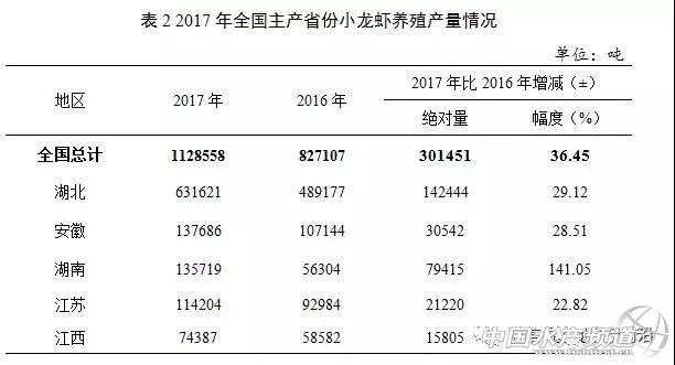 中國水產(chǎn)頻道報道,一條小小的蝦,一個巨大的產(chǎn)業(yè)!2017年養(yǎng)殖面積1200萬畝、養(yǎng)殖量112多萬噸或超過了南美白對蝦產(chǎn)量(有數(shù)據(jù)統(tǒng)計南美白對蝦年產(chǎn)量已不足100萬噸,甚至少于80萬噸),經(jīng)濟總產(chǎn)值2685億元,從業(yè)人員520萬人。近日,農(nóng)業(yè)農(nóng)村部漁業(yè)漁政管理局、全國水產(chǎn)技術(shù)推廣總站、中國水產(chǎn)學會三部門聯(lián)合權(quán)威發(fā)布了《中國小龍蝦產(chǎn)業(yè)發(fā)展報告(2018)》。你嗅到商機了嗎? 中國小龍蝦產(chǎn)業(yè)發(fā)展報告(2018) 農(nóng)業(yè)農(nóng)村部漁業(yè)漁政管理局 全國水產(chǎn)技術(shù)推廣總站 中國水產(chǎn)學會 (2018年6月) 2017年,中國小龍蝦(克氏原螯蝦,Procam barusclarkii)養(yǎng)殖面積突破1000萬畝,產(chǎn)量突破100萬噸,經(jīng)濟總產(chǎn)值突破2600億元(未包括香港特別行政區(qū)、澳門特別行政區(qū)和臺灣省的統(tǒng)計,下同)。小龍蝦養(yǎng)殖已成為生態(tài)循環(huán)農(nóng)業(yè)發(fā)展的主要模式之一,是新時代加快推進漁業(yè)綠色發(fā)展最具活力、潛力和特色的朝陽產(chǎn)業(yè),是中國實施鄉(xiāng)村振興戰(zhàn)略和農(nóng)業(yè)產(chǎn)業(yè)精準扶貧的有效抓手,在培育地方經(jīng)濟增長新動能、推進農(nóng)(漁)業(yè)供給側(cè)結(jié)構(gòu)性改革、促進農(nóng)(漁)業(yè)增效和農(nóng)(漁)民增收過程中發(fā)揮著重要作用。 為促進小龍蝦產(chǎn)業(yè)持續(xù)健康發(fā)展,農(nóng)業(yè)農(nóng)村部漁業(yè)漁政管理局聯(lián)合全國水產(chǎn)技術(shù)推廣總站、中國水產(chǎn)學會組織專家編寫了《中國小龍蝦產(chǎn)業(yè)發(fā)展報告(2018)》。報告重點對2017年度我國小龍蝦產(chǎn)業(yè)的發(fā)展狀況進行全面梳理、全面分析面臨形勢和挑戰(zhàn),總結(jié)發(fā)展特點、預(yù)測發(fā)展形勢、提出發(fā)展建議。 一 產(chǎn)業(yè)產(chǎn)值 中國小龍蝦產(chǎn)業(yè)從最初的“捕撈+餐飲”起步,逐步形成了集苗種繁育、健康養(yǎng)殖、加工出口、精深加工、物流餐飲、文化節(jié)慶于一體的完整產(chǎn)業(yè)鏈。據(jù)測算,2017年全國小龍蝦全社會經(jīng)濟總產(chǎn)值約2685億元,比2016年增長83.15%。其中,養(yǎng)殖業(yè)產(chǎn)值約485億元,以加工業(yè)為主的第二產(chǎn)業(yè)產(chǎn)值約200億元,以餐飲為主的第三產(chǎn)業(yè)產(chǎn)值約2000億元,分別占全社會經(jīng)濟總產(chǎn)值的18.06%、7.45%、74.49%。 據(jù)不完全統(tǒng)計,2017年全國從事小龍蝦生產(chǎn)經(jīng)營的合作經(jīng)濟組織近5000個,小龍蝦全產(chǎn)業(yè)鏈從業(yè)人員約520萬人,其中,從事第一產(chǎn)業(yè)人員近100萬人、從事小龍蝦加工等第二產(chǎn)業(yè)人員近20萬人、小龍蝦流通經(jīng)紀人約10萬人。 二 養(yǎng)殖生產(chǎn)情況 (一)產(chǎn)量情況 據(jù)統(tǒng)計,2017年,中國有小龍蝦養(yǎng)殖產(chǎn)量報告的省份有19個,依次為湖北、安徽、湖南、江蘇、江西、河南、四川、山東、浙江、重慶、云南、廣東、廣西、福建、貴州、上海、寧夏、新疆、河北。全國小龍蝦養(yǎng)殖總產(chǎn)量為112.86萬噸,其中湖北省63.16萬噸、安徽省13.77萬噸、湖南省13.57萬噸、江蘇省11.42萬噸、江西省7.44萬噸。上述5省份的小龍蝦養(yǎng)殖產(chǎn)量小計為109.36萬噸,占全國總產(chǎn)量的96.90%,其中湖北省產(chǎn)量最大,占全國的55.96%。 2017年,全國小龍蝦養(yǎng)殖產(chǎn)量前30名的縣(市、區(qū))中,湖北省20個、安徽省3個、江西省1個、湖南省4個、江蘇省2個。30個縣(市、區(qū))的小龍蝦養(yǎng)殖總產(chǎn)量為73.49萬噸,占全國小龍蝦養(yǎng)殖總產(chǎn)量的65.12%。其中,湖北省監(jiān)利縣小龍蝦產(chǎn)量為11萬噸,是唯一產(chǎn)量超過10萬噸的縣。 (二)養(yǎng)殖面積分布 據(jù)不完全統(tǒng)計,2017年全國小龍蝦養(yǎng)殖面積達1200萬畝,較2016年增加300萬畝。按養(yǎng)殖水域分,2017年全國小龍蝦稻田養(yǎng)殖面積約為850萬畝,占總養(yǎng)殖面積的70.83%,池塘養(yǎng)殖面積約為200萬畝,占總養(yǎng)殖面積的16.67%,其他蝦蟹混養(yǎng)、大水面增殖、蓮(葦)田套養(yǎng)等混養(yǎng)面積約為150萬畝,占總養(yǎng)殖面積的12.50%。2017年全國小龍蝦稻田養(yǎng)殖面積約占全國稻田養(yǎng)魚面積2524萬畝的47.54%,較2016年增加了7.54個百分點。 從分省情況看,2017年小龍蝦養(yǎng)殖產(chǎn)量前5名的省份中,湖北省的小龍蝦養(yǎng)殖面積為544.00萬畝、安徽省為148.00萬畝、江蘇省為138.20萬畝、湖南省為120.00萬畝、江西省為59.00萬畝。5省份的小龍蝦養(yǎng)殖面積均呈逐年增長趨勢。 (三)養(yǎng)殖模式 目前,小龍蝦養(yǎng)殖模式主要有稻蝦綜合種養(yǎng)、池塘主養(yǎng)、蓮藕(葦)田套養(yǎng)、河蟹池混養(yǎng)、大水面人工增養(yǎng)殖等。其中,稻蝦綜合種養(yǎng)為各地主要養(yǎng)殖模式,此模式可細分為稻蝦連作、稻蝦連作+共作等模式。 1、稻蝦模式。稻蝦連作:種一季中稻,養(yǎng)一季小龍蝦。即每年8-9月中稻收割前投放親蝦,或10-11月水稻收割后投放幼蝦,翌年4-5月收獲成蝦,6月整田插秧,種一季中稻,循環(huán)輪替。此模式一般畝產(chǎn)小龍蝦100公斤、水稻500公斤,畝均產(chǎn)值4500元左右,畝均利潤2000元左右。稻蝦連作+共作:養(yǎng)