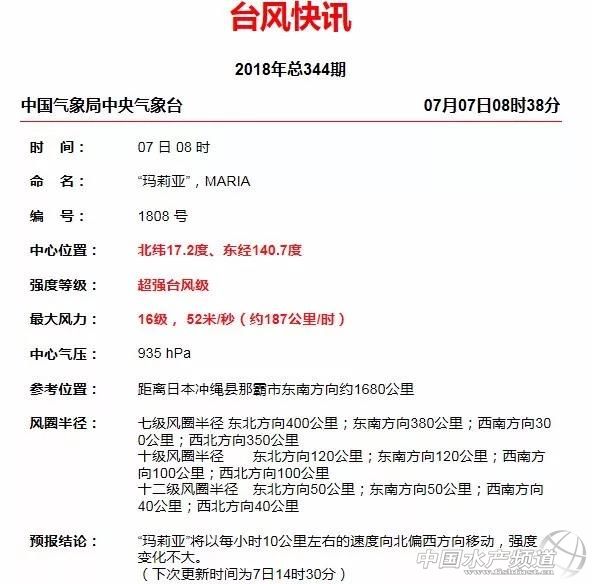 中國水產頻道報道,自7月4日晚8點生成后,臺風瑪莉亞爭分奪秒地迅猛增強。它在36個小時內連跳5級,從熱帶低壓直升超強臺風。這個加強速度超過了天兔、彩虹甚至是莫蘭蒂,近年罕見。 ▲葵花-8號衛星監測到的8號臺風“瑪莉亞”動態云圖(時間段:2018年7月6日23時30分至7月7日06時30分) “瑪莉亞”將于10日下午進入東海東南部海域 一、“瑪莉亞”位于西北太平洋洋面 今年第8號臺風“瑪莉亞”(超強臺風級)的中心今天(7日)上午8點鐘位于日本沖繩縣那霸市東南方向約1680公里的洋面上,就是北緯17.2度,東經140.7度,中心附近最大風力有16級(52米/秒),中心最低氣壓為935百帕,七級風圈半徑300-400公里,十級風圈半徑100-120公里,十二級風圈半徑40-50公里。 二、“瑪莉亞”逐漸趨向沖繩群島一帶海域 據中央氣象臺最新發布的消息稱,“瑪莉亞”將先以每小時10公里的速度向西北方向移動,8日以后移速將逐漸加快至每小時15-25公里,2天內強度變化不大,以后趨向日本沖繩群島一帶海域,10日下午移入東海東南部,逐漸向我國浙閩一帶沿海靠近,并將于11日白天在上述沿海登陸,預計登陸強度可達強臺風級(14-15級,45-50m/s),登陸后強度逐漸減弱。 確定性預報表明副高在未來幾天將大舉加強西伸,副高強度和西伸程度較稍早前的預報結果要強很多,而“瑪莉亞”的預期強度卻比之前預計的強度略弱。副高和“瑪莉亞”之間的角力很有可能是副高占優。最新的集合路徑預報結果也顯示,未來受副高加強西伸的影響,“瑪莉亞”路徑進一步向南掉的概率也在加大,不排除先登陸臺灣后登陸福建的可能性。 根據臺風統計,往年7月,臺風半徑超過400公里,強度在熱帶風暴級別以上,且生成地和“瑪莉亞”相似的臺風,絕大多數先奔臺灣,再登福建。但不管怎樣,我國東部海域以及華東沿海一場暴風雨是跑不掉的,請大家密切保持關注! 除了關心8號臺風瑪莉亞,南海低壓擾動同樣值得注意,因為未來它將有可能快速加強為今年第9號臺風“山神”。預計在下周末生成,趨向廣東,并可能西行影響海南和廣西。請密切留意臺風的信息和最新預報! 【關鍵字】:臺風 臺風瑪莉亞 水產養殖網 |