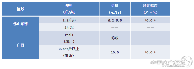 佛山順德區域:本周魚價維穩,近期叉尾病害腸胃為主。
