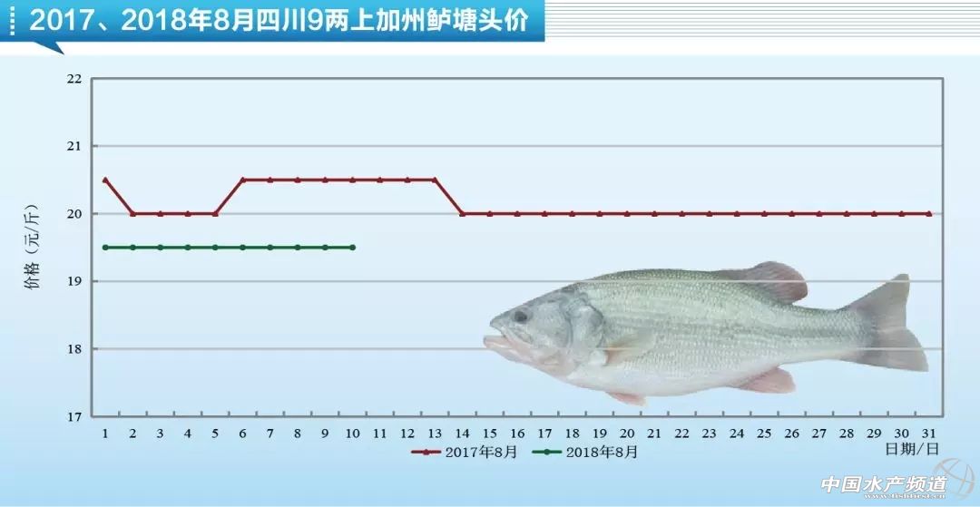 文/圖 水產前沿 李曉欣 今日關注 “9兩上抓起,19.5元/斤,價格沒有變動!睋拇ǔ啥籍數仞B戶和流通商消息,今天9兩上加州鱸塘頭價依然為19.5元/斤。據悉,當前魚價自6月25日后一直維持至今,已持穩了47天。 在9個報價產區中,四川成都加州鱸塘頭價一直呈領跑姿態,是有望率先沖破20元關口的佼佼者,但近來魚價似乎顯得上漲乏力。 拆箱、出魚量大,魚價上漲受阻 “網箱加州鱸9兩上19元/斤,統貨價格6元/斤。”據四川溪洛渡庫區一加州鱸網箱養殖戶王先生介紹,目前溪洛渡的網箱鱸魚存量大約還有幾百萬斤。由于網箱清拆,9兩上規格的網箱加州鱸比池塘魚便宜0.5元/斤,統貨更是低至6元/斤,不同規格的網箱魚集中上市,對成都市場造成了一定的沖擊。 由上圖可知,去年同期四川成都9兩上加州鱸塘頭價達20-20.5元/斤,雖然當前魚價同比去年低0.5-1元/斤,但也達到了當地養戶的心理預期,加上新魚到了分塘時段,養戶出魚較為積極,市場需求能夠得到滿足,對魚價上漲也有所抑制。 能否沖破20元大關? 有觀點認為,隨著成都當地老口鱸魚存塘的逐漸減少,以及高溫天氣外地魚運輸受阻,加州鱸塘頭價還有上漲空間,有望突破20元/斤;也有觀點認為,目前四川整體出魚量大,加上網箱魚上市沖擊,以及眉山地區月底預計有新魚上市,魚價上漲的可能性不大,甚至還可能下跌。 各產區出塘價與昨日對比