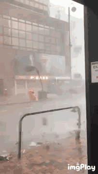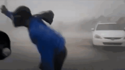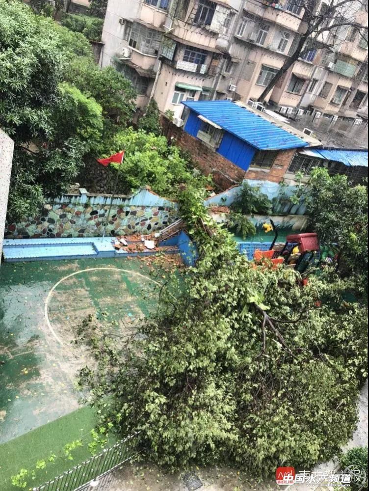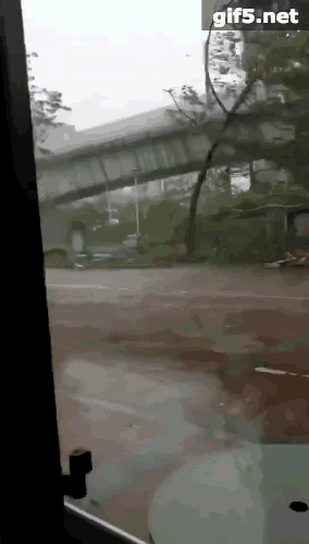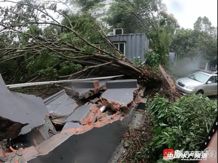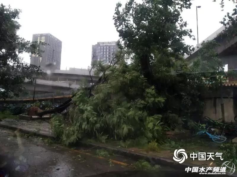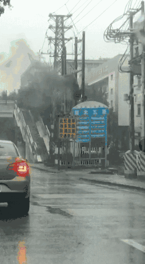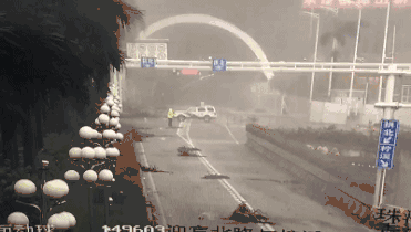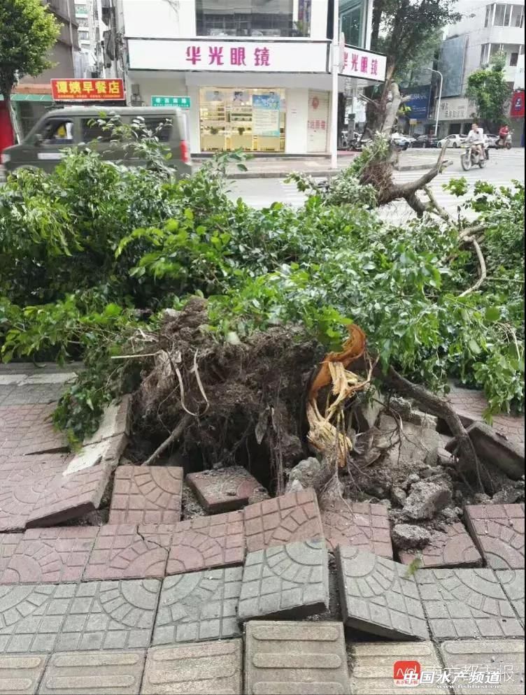 9月16日上午9時50分,惠州博羅縣城北門路,驟起的狂風將街頭大樹連根拔起。