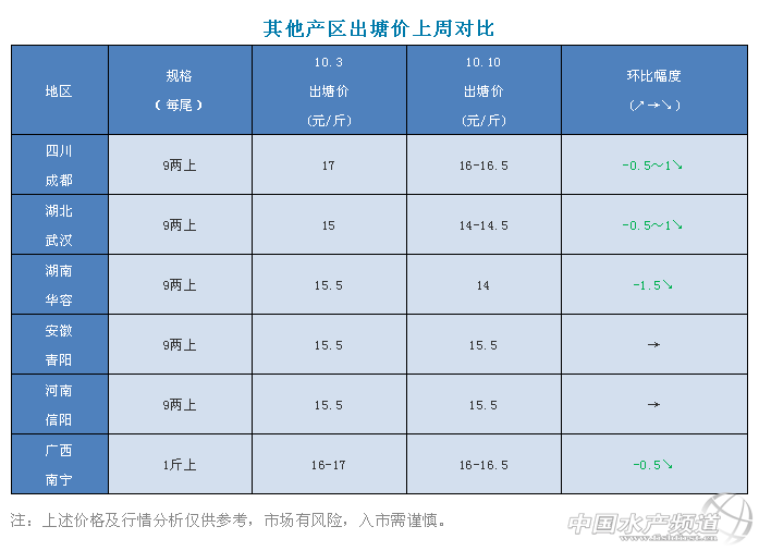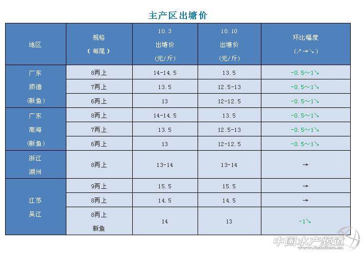 文/圖 杰大飼料 水產前沿 李曉欣 聯合發布 行情解析 國慶節過后,加州鱸市場銷量有所回落。目前廣東佛山加州鱸舊魚已經清完,新魚上市量也逐漸增大,魚價有所下滑,今天新魚報價6兩上12-12.5元/斤,7兩上12.5-13元/斤,8兩上13.5元/斤。全國魚價看廣東,受廣東魚價下跌影響,本周四川、湖北、湖南、廣西地區加州鱸塘頭價也有所降低。 業內人士認為,隨著新魚上市增多,魚價下滑屬于正常現象,按照往年行情走勢,預計接下來魚價將繼續呈穩中有降的態勢,建議養殖戶朋友理性看待魚價走勢,合理選擇時機出魚,確保養殖收益。 今日各地加州鱸價格及本周行情分析 廣東順德:今天報價新魚6兩上12-12.5元/斤,7兩上12.5-13元/斤,8兩上13.5元/斤,各規格相比上周均有所下跌,實際成交價看魚頭大小而定。目前出魚以6兩上規格較多,魚中挑小規格魚較為嚴格,要求有一定規格魚頭。現在市場上大規格魚比較緊缺,價格相對高一點。 廣東南海:南海區域的舊魚基本清完,新魚今天報價6兩上12-12.5元/斤,7兩上12.5-13元/斤,8兩上13.5元/斤,實際價格根據魚頭大小有浮動。近期出魚的養殖戶比較多,國節過后,由于舊魚清空,市場對大規格的魚有一定需求,抓魚時對魚頭要求較為嚴格。 浙江湖州:今天報價8兩上13-14元/斤,相比上周持穩。目前湖州地區有部分新口鱸魚上市,今年魚價相比去年同期略低,預計本月底新口鱸魚上市會更多,到時價格或有所回落。 江蘇吳江:吳江老口8兩上報價為14.5元/斤,9兩上15.5元/斤,相比上周持平;8兩上新口鱸魚報價13元/斤,比上周跌了1元/斤。近期到吳江抓魚的流通商傾向抓新口8兩,目前吳江地區新口上市還比較少,老口魚價以持穩為主。 四川成都:今天報價9兩上16-16.5元/斤,比上周降低了0.5-1元/斤。四川地區老口鱸魚已基本出完,現在大部分養殖戶還沒開始賣新口,預計10月底新口上市會增多,屆時魚價會有所調整。 湖北武漢:武漢老口9兩上報價14-15元/斤,魚價相比上周跌了1元/斤。武漢老口鱸魚預計十月底清完,現在當地已有部分新魚上市,9兩上12.5-13元/斤。 湖南華容:今天華容9兩上報價14元/斤,相比上周魚價下跌了1.5元/斤。廣東新魚大量上市,對湖南市場有所沖擊。節后華容鱸魚市場走量不大,預計當地老口鱸魚月底才能清完,屆時新口也將上市。 安徽青陽:今天9兩上報價15.5元/斤,與上周持平。國慶節后,本周出魚量有所下降,每天維持在1-2車。老口存塘量不多加上價格較去年同期有點低,養戶出魚意愿也不大。 河南信陽:今天9兩上報價15.5元/斤,相比上周持穩。 廣西南寧:今天南寧1斤上加州鱸報價16-16.5元/斤,相比上周跌了0.5元/斤。廣東新魚增多上市,對南寧市場有一定沖擊,受廣東魚價下跌影響,南寧魚價也有所下調。廣西當地新魚預計十月底出,接下來魚價還將有所回落。 |