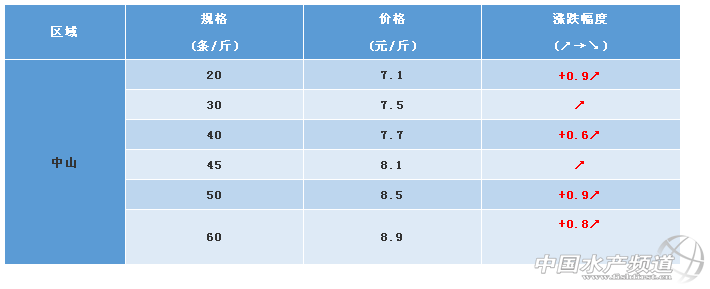 文/ 水產(chǎn)前沿 何鴻浩 中國水產(chǎn)頻道原創(chuàng)報道, 泥鰍 中山:本周泥鰍價錢漲幅較大,各規(guī)格魚同比上周上升約1元/斤。 ※上述報價可能會因區(qū)域、規(guī)格、品質(zhì)和時間等因素的不同而會產(chǎn)生差異,在此僅供參考。環(huán)比幅度以本周價格與上周價格數(shù)據(jù)做對比 |