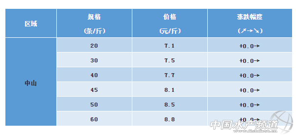 中山:本周泥鰍價錢保持穩定。