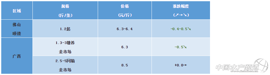 文/ 水產(chǎn)前沿 植銀素 中國水產(chǎn)頻道原創(chuàng)報道,廣西區(qū)域:目前叉尾主要以走市場為主。受近期網(wǎng)箱拆除,魚集中出售沖擊影響,叉尾作為無鱗魚粘液多不適合長途運輸,輻射范圍窄,魚價受沖擊較多,魚價較為低迷。 佛山順德:本周魚價下跌,主要病害有出血和腸炎。 ※上述報價可能會因區(qū)域、規(guī)格、品質(zhì)和時間等因素的不同而會產(chǎn)生差異,在此僅供參考。環(huán)比幅度以本周價格與上周價格數(shù)據(jù)做對比 【關(guān)鍵字】:叉尾鮰𫚔 叉尾鮰價格 水產(chǎn)養(yǎng)殖 |