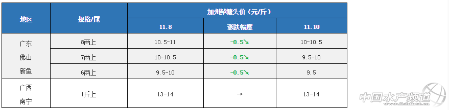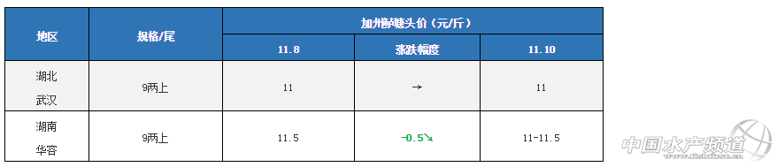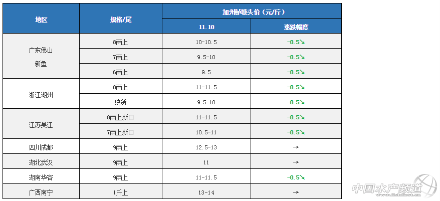 文/圖 水產前沿 李曉欣 中國水產頻道原創報道 今日加州鱸價一覽 產區加州鱸塘頭價及行情簡析 華南地區 廣東佛山:佛山各規格新魚價格相比8日報價均跌了0.5元/斤,今天報價6兩上9.5元/斤左右,7兩上9.5-10元/斤左右,8兩上10-10.5元/斤左右,實際成交價看魚頭大小和8兩上比例而定。由于目前魚價未及預期,養戶多選擇出大規格魚來提高產量和效益,現在出魚以7兩上和8兩上為主。很多已經出過前兩網魚的養戶觀望惜售,想養大規格再出魚。 廣西南寧:南寧今天1斤上加州鱸報價13-14元/斤,市場上以廣東魚為主,本地出魚量不大。 華東地區 浙江湖州:今天武漢9兩上加州鱸報價11元/斤左右,由于目前魚價不太理想,當地養戶賣魚積極性不高,有部分養戶擔心魚超標而挑頭魚出魚,但總體出魚量不大,市場上以廣東魚為主。 江蘇吳江:今天吳江新口報價7兩上10.5-11元/斤,8兩上11-11.5元/斤,各規格魚價跌了0.5元/斤,主要是受廣東魚價和本地新口上市增多影響。目前的魚價吳江養戶出魚意愿不高,已經有部分魚車到廣東收魚,本地銷量相對下滑。 華中地區 湖北武漢:今天武漢9兩上加州鱸報價11元/斤左右,由于目前魚價不太理想,當地養戶賣魚積極性不高,有部分養戶擔心魚超標而挑頭魚出魚,但總體出魚量不大,市場上以廣東魚為主。 湖南華容:今天華容9兩上加州鱸報價11-11.5元/斤,相比8日報價下跌了0.5元/斤。受廣東魚和江蘇新魚上市增多影響,華容本地鱸魚銷量減少,有養戶在排隊賣魚,魚價受到影響。 西南地區 四川成都:成都今天9兩上報價12.5-13元/斤,魚價持穩。目前魚價較為低迷,部分養戶惜售待價,也有部分養戶擔心后市價格還會有所波動,在存塘魚達上市規格后積極出魚。 注:上述價格及行情分析僅供參考,市場有風險,入市需謹慎。 【關鍵字】:加州鱸 加州鱸價格 水產養殖 |