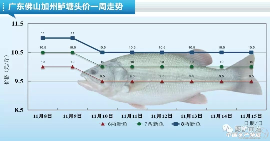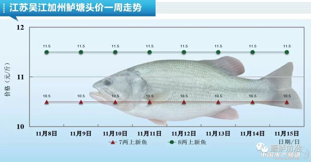 中國水產頻道原創報道, 養好魚,更要賣好魚! 加州鱸行情周報 《鱖鱸前沿》與您相約每周四 文/圖 水產前沿 李曉欣 廣東佛山 本周佛山各規格加州鱸新魚下跌了0.5元/斤,今天6兩上報價9.5元/斤,7兩上9.5-10元/斤,8兩上10-10.5元/斤,實際成交價看魚頭大小及8兩上比例。由于魚價較為低迷,養戶出魚意愿不高,部分養戶擔心魚超標,多選擇出大規格魚來提高產量和效益。現在市場上大魚比例有所增大,吸引外省流通商到本地拉魚增多,預計短期內魚價以持穩為主。 浙江湖州 本周湖州魚價有所下滑,8兩上今天報價11元/斤左右,相比8日11.5元/斤下跌了0.5元/斤;統貨今天報價9-10元/斤左右,比8日10元/斤下跌了1元/斤。現在湖州新口鱸魚上市量大,但因廣東魚價相對便宜,當地流通商南下收魚較多,對本地魚價有所影響,預計短期內魚價維持目前價位。 江蘇吳江 本周吳江新口魚價一周持穩,今天7兩上報價10.5元/斤,8兩上11.5元/斤,市場以出8兩上規格為主。目前魚價基本上已經達到臨界點,養殖戶觀望心理增強,部分魚車到廣東收魚。 四川成都 成都今天9兩上報價12-12.5元/斤,相比上周12.5-13元/斤下跌了0.5元/斤。受外地魚沖擊市場影響,成都魚價有所下滑,目前價格未達養戶心理價位,總體出魚積極性不高。 湖北武漢 本周武漢9兩上加州鱸價格維持在11元/斤左右,目前的價位養戶出魚意愿不高,市場上以廣東魚為主。有部分養戶擔心魚超標而挑頭魚出魚,但總體出魚量不大。 湖南華容 本周華容9兩上加州鱸下滑了0.5元/斤,今天9兩上報價11元/斤左右。受廣東和江蘇新魚上市增多影響,近期華容本地魚銷量上不去,部分養戶在排隊出魚,魚價有所回落。 廣西南寧 廣西南寧加州鱸13-14元/斤的價格持穩了半個多月,在本周出現下滑,今天1斤上報價13-13.5元/斤。現在南寧本地魚達上市規格的還比較少,當地流通商多到廣東拉魚,市場上以廣東魚為主,本地出魚量不大。 |