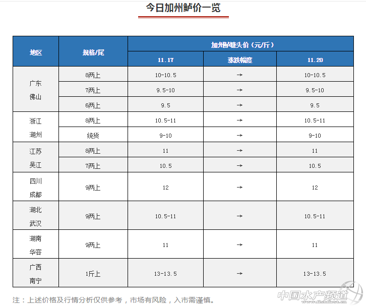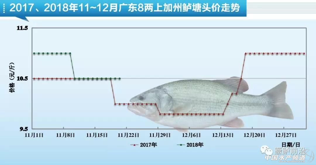 中國水產(chǎn)頻道原創(chuàng)報道,11月20日加州鱸塘頭報價及行情分析 文/圖 水產(chǎn)前沿 李曉欣 11月份已過大半,相比上月加州鱸塘頭價震蕩下跌,本月以來魚價下行較緩,今天各產(chǎn)區(qū)加州鱸塘頭價持穩(wěn)。其中,廣東佛山加州鱸報價6兩上9.5元/斤左右,7兩上9.5-10元/斤,8兩上10-10.5元/斤,實(shí)際成交價看魚頭大小,目前這個價格已經(jīng)持穩(wěn)了11天。 從2017、2018年11~12月廣東佛山8兩上加州鱸塘頭價走勢圖可以看出,去年同期8兩上加州鱸塘頭價為10元/斤左右,目前魚價10-10.5元/斤同比去年還高出0.5元/斤。此外,去年11月下旬開始,8兩上魚價出現(xiàn)幾次小幅下跌,最低跌至9.7-9.8元/斤左右,一直到12月中旬才開始出現(xiàn)回暖。 受廣東魚價影響,其他產(chǎn)區(qū)加州鱸塘頭價也較為低迷,多地養(yǎng)戶惜售待價。但隨著天氣逐漸轉(zhuǎn)冷,存塘加州鱸的養(yǎng)殖風(fēng)險也在逐漸增大。一方面,存塘魚在低溫期容易出現(xiàn)爛身、水霉病等病害;另一方面,存塘魚的規(guī)格會逐漸加大甚至超標(biāo),從而影響賣價。建議養(yǎng)殖戶朋友理想看待魚價走勢,合理安排出魚時機(jī),以確保養(yǎng)殖收益。 |