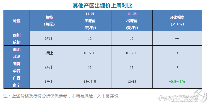 中國水產頻道原創報道,各產區加州鱸塘頭價與行情一周解析 文/圖 杰大飼料 水產前沿 李曉欣 聯合發布 本周,全國加州鱸塘頭價穩中有降。其中,浙江湖州、江蘇吳江各規格加州鱸均下跌了0.5元/斤;廣西南寧1斤上加州鱸下跌了0.5-1元/斤不等,主要是受廣東魚價影響;其他產區魚價基本保持不變。 目前廣東佛山加州鱸塘頭價已經企穩超半個月,今天8兩上報價10-10.5元/斤,而浙江湖州同規格魚價也是10-10.5元/斤,江蘇吳江8兩上報價10.5元/斤,江浙兩地魚價與廣東已相差無幾,華東流通商到廣東收魚有所減少。而湖北武漢、廣西南寧等本地出魚量不大,流通商多到廣東拉魚,市場以廣東魚為主。 今日各地加州鱸價格及本周行情分析 廣東順德:今天報價7兩上9.5-10元/斤,8兩上10-10.5元/斤,實際價格看塘魚整體規格大小和魚頭而定。近期養戶基本都以出魚8兩上規格為主。現在魚價不太理想,8兩以下規格較小、產量不高,養戶不太愿意出。目前大多數養戶惜售心理明顯,特別是已經出過兩箍魚的養戶。 廣東南海:今天報價7兩上9.5-10元/斤,8兩上10-10.5元/斤,實際成交價看魚頭大小有浮動。由于魚價企穩了近20天,南海當地選擇出魚的養戶相對較多,主要是擔心后期存魚超標而想出一部分大魚。部分養殖戶因為魚價未達預期,出魚積極性不高,想等天氣轉冷后市看下價格再作打算。 浙江湖州:今天報價新口8兩上10-10.5/斤,統貨報價9-9.5元/斤,各規格相比上周價格下跌了0.5元/斤。目前湖州地區新口鱸魚上市增多,由于統貨魚價便宜,很少有流通商愿意抓標魚,當地養戶以出售統貨為主。 江蘇吳江:吳江新口鱸魚7兩上報價10元/斤,8兩上報價10.5元/斤,各規格均比上周跌了0.5元/斤。受廣東新魚價格影響,吳江魚價有所下滑。目前的魚價吳江當地養戶都不太愿意出魚,預計后市魚價不會有太大波動。 四川成都:今天成都9兩上加州鱸報價12元/斤,與上周持平。目前魚價未達養戶預期,雖然成都大多數養殖戶魚塘的二網魚已達上市規格,但出魚積極性較低,觀望心理增強。 湖北武漢:今天武漢9兩上加州鱸報價10.5-11元/斤左右,目前魚價已經持穩了近一個月,由于魚價未達預期,當地養戶出魚意愿不強,本地銷量不大,市場以廣東魚為主。 湖南華容:今天華容9兩上加州鱸報價11元/斤左右,這個價格已持穩了超半個月。據悉,現在華容標魚所剩不多,當地出魚量有所減少。目前當地銷量穩定,預計短期內魚價以維穩為主。 廣西南寧:南寧今天1斤上加州鱸報價12-13元/斤,相比上周魚價下跌了0.5-1元/斤,主要是受廣東魚價影響。目前南寧本地存塘量不多,已經很少養戶出魚,預計后市下降空間不大。 |