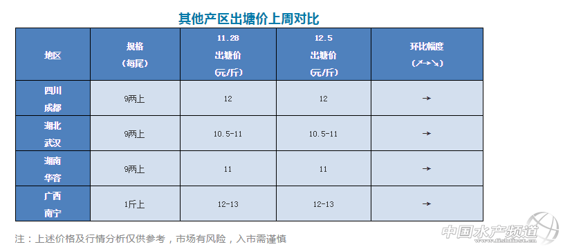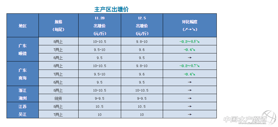 中國水產頻道原創報道,各產區加州鱸塘頭價與行情一周解析 文/圖 杰大飼料 水產前沿 李曉欣 聯合發布 本周,廣東佛山加州鱸塘頭價有所下滑,今天6兩上報價9.5元/斤,7兩上9.6元/斤,8兩上9.8-10元/斤。 此次魚價下滑,一方面是外省加州鱸養殖量相比去年增加,魚價同比去年低迷,拉近了與廣東魚價的差距,導致流通商南下收魚的利潤減少,外省魚車到廣東收魚也相對減少;另一方面,據佛山當地魚中介紹,今年6月份放苗的養戶近期出頭箍魚,對魚價也有所沖擊。 從上圖可知,去年同期佛山8兩上加州鱸塘頭價為9.8元/斤左右,目前魚價與去年同期相差無幾。另外,去年12月中旬開始魚價有所回暖。 對于后市行情,有觀點認為隨著天氣逐漸轉冷,部分養戶為減少存塘風險將繼續出魚,到時魚價還將有所回落;也有觀點認為,目前魚價已逼近成本價,下滑空間不大,等外省魚賣得差不多了,廣東魚價或將回暖。你怎么看?歡迎在文末留言。 今日各地加州鱸價格及本周行情分析 廣東順德:今天報價6兩上9.5元/斤,7兩上9.6元/斤,8兩上9.8-10元/斤,魚價相比上周有所下滑。目前魚價養戶出魚積極性不高,很多人并不著急出魚。選擇出魚的養戶以出8兩上為主,部分傾向出9兩上規格。 廣東南海:今天報價6兩上9.5元/斤,7兩上9.6元/斤,8兩上9.8-10元/斤。養戶出魚以8-9兩規格為主。沙頭地區養戶基本已經買好3-7兩魚格入塘,雖然現在市場收魚量比較大,但因為魚種、塘租都比較貴,目前的價格不大理想,很多養殖戶惜售心理依然明顯。 浙江湖州:今天報價新口8兩上10-10.5/斤,統貨是9-9.5元/斤,魚價一周企穩。目前湖州地區新口鱸魚上市增多,本周養戶依然以出售統貨為主,流通商很少愿意抓標魚。 江蘇吳江:吳江新口鱸魚8兩上報價10.5元/斤,7兩上報價10元/斤,價格與上周持平。受廣東魚價影響,吳江加州鱸塘頭價較為低迷,當地養殖戶基本不太愿意出魚,大多惜售等價,預計后市價格不會有太大波動。 四川成都:今天報價9兩上12元/斤,相比上周魚價持穩。近來四川大多養戶在觀望惜售,一方面是魚價未達養戶預期;另一方面,冬季四川本地鱸魚攝食量大大減少,養戶不擔心二網魚存在超標問題,同時水溫低養殖戶擔心出魚有損傷,增加感染水霉病的風險,所以整體出魚積極性不高。 湖北武漢:今天武漢9兩上加州鱸報價10.5-11元/斤左右,目前魚價已經持穩超過1個月。由于魚價未達預期,加上武漢本地達上市規格的存魚減少,當地養戶整體出魚積極性不高,流通商多到廣東收魚,市場以廣東魚為主。 湖南華容:今天華容9兩上加州鱸報價11元/斤左右,這個價格已持穩了20多天。現在華容標魚相比之前有所減少,部分養戶開始觀望等價,本地走量不大。 廣西南寧:今天報價1斤以上新魚價格12-13元/斤,對比上周價格基本保持不變。目前南寧本地存塘不足三成,養殖戶觀望惜售居多,后市價格看好。 |