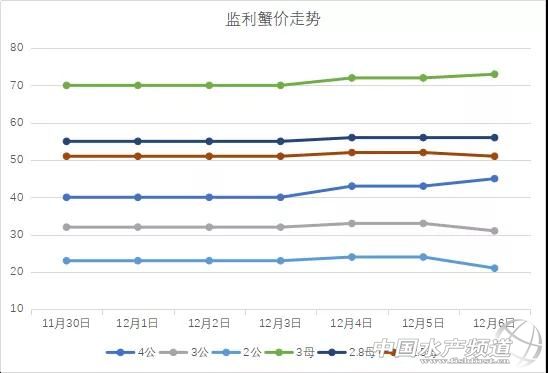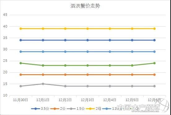 中國水產頻道原創(chuàng)報道,本周蟹價整體平穩(wěn),后期部分規(guī)格略有上漲。預測下周蟹價微漲 文/水產前沿 沈君 本周走勢(部分產區(qū)) 江蘇興化 本周興化蟹價整體平穩(wěn),略呈兩頭高中間低,但價差均不大。如3兩公蟹在11月30日和12月6日兩天均為23元/斤,中間五天均為21元/斤。4兩公蟹兩頭均為31元/斤,中間30元/斤。2.5兩、3兩母蟹在近三天價格有所上揚,但上漲幅度均很小,最高上漲2元/斤。 江蘇泗洪 本周泗洪蟹價較為平穩(wěn),個別規(guī)格稍有變化。2公、3.5公、1.35母、2母分別保持在19元/斤、34元/斤、29元/斤、39元/斤。1兩母蟹兩頭高中間低,價差僅在1元/斤。1.5兩公蟹在12月1日達到15元/斤,其他均為14元/斤。 湖北監(jiān)利 本周監(jiān)利蟹價前期平穩(wěn),后期稍有波動。如3兩母蟹前期穩(wěn)定在70元/斤,近3天上漲至73元/斤。4兩公蟹前期保持在40元/斤,后期逐漸上漲至45元/斤。2兩公蟹則由23元/斤上漲至24元/斤,今天又跌至21元/斤。 今日蟹價(部分產區(qū)) 江蘇興化 江蘇泗洪 上海 湖北監(jiān)利 下周蟹價預測 目前河蟹市場交易穩(wěn)定,供需平衡,蟹價波動較小。近期氣溫下降明顯,預測下周蟹價微漲。(觀點僅供參考) |