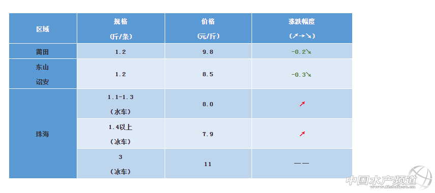 文/ 水產(chǎn)前沿 何鴻浩 中國水產(chǎn)頻道原創(chuàng)報道, 8年來最強寒潮襲擊全國,連華南也被凍透!今天南寧、廣州最低溫仍是個位數(shù),似乎回暖仍是遙遠。此時各處魚肉火鍋驅(qū)寒就成為消費者最愛。看,多品種的魚價又面臨一波上漲! 海鱸 福建莆田、東山、詔安區(qū)域:鱸魚均已達到上市規(guī)格,存塘規(guī)格在1.2-1.6。福建地區(qū)鱸魚銷售主要活魚為主,莆田地區(qū)本地收魚量減少,本周價格相對穩(wěn)定。 廣東珠海區(qū)域:(1)目前市場需求大規(guī)格魚,小規(guī)格沒有人抓,加上部分養(yǎng)殖戶持魚不出,市場價格回暖;(2)天氣回暖,鱸魚長水霉的情況或?qū)⒊霈F(xiàn),養(yǎng)殖戶需要注意使用金碘+西林+五黃潑水預(yù)防;(3)鱸魚魚苗陸續(xù)下來,目前規(guī)格3-4公分均有,價格為2.5-3毛不等。據(jù)苗中表示,魚苗也會升價。 ※上述報價可能會因區(qū)域、規(guī)格、品質(zhì)和時間等因素的不同而會產(chǎn)生差異,在此僅供參考。環(huán)比幅度以本周價格與上周價格數(shù)據(jù)做對比 【關(guān)鍵字】: 海鱸 塘頭價 行情 水產(chǎn)養(yǎng)殖 |