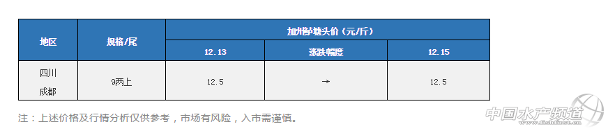 中國水產(chǎn)頻道原創(chuàng)報道, 12月15日各產(chǎn)區(qū)加州鱸行情與塘頭報價 文/圖 水產(chǎn)前沿 李曉欣 本周末多地天氣以升溫為主題,據(jù)中國天氣網(wǎng)消息,北方氣溫率先回升,到明天(16日)累積升溫幅度普遍將達到4-8℃,局地可達10℃左右;南方升溫會持續(xù)到下周二前后,累積升溫幅度普遍會達到6-12℃。這次回暖之猛,將10℃線從華南一路向北推到了華北南部一帶。 中央氣象臺預(yù)計,17日前后長江中下游一帶以及江南、西南多地最高氣溫將回升至15℃上下,華南升至20℃出頭,明起三天(16-18日)南方將迎來大范圍的晴好天氣。今天各產(chǎn)區(qū)加州鱸塘頭價基本持穩(wěn),隨著天氣逐漸回暖、道路暢通,外省魚車到廣東拉魚將有所增多,預(yù)計廣東加州鱸銷量將慢慢上升。 產(chǎn)區(qū)加州鱸塘頭價及行情簡析 華南地區(qū) 廣東佛山:佛山養(yǎng)戶現(xiàn)在以出大規(guī)格魚為主,今天8兩上加州鱸報價9.8元/斤左右,具體成交價看魚頭大小和規(guī)格比例略有浮動。隨著天氣回暖、道路暢通,外省魚車到佛山收魚量將有所增加,預(yù)計廣東加州鱸銷量將慢慢上升。 廣西南寧:南寧本地魚達上市規(guī)格的比較少,養(yǎng)戶基本很少出魚,1斤上加州鱸塘頭價維持在12-13元/斤,市場以廣東魚為主。 華東地區(qū) 浙江湖州:今天湖州8兩上加州鱸報價10元/斤左右,統(tǒng)貨報價8.5-9.5元/斤左右,具體看8兩上成次。現(xiàn)在湖州存魚大多達上市規(guī)格,養(yǎng)戶大多在積極出魚,市場供應(yīng)充足,魚價上漲乏力。 江蘇吳江:今天吳江加州鱸7兩上報價9.5元/斤,8兩上10元/斤。目前的魚價吳江養(yǎng)戶出魚意愿不強,當(dāng)?shù)鼗竞苌俪鲷~,流通商多到湖州區(qū)域收魚,預(yù)計魚價短期內(nèi)波動不大。 華中地區(qū) 湖北武漢:武漢9兩上加州鱸今天報價10.5-11元/斤左右,現(xiàn)在武漢養(yǎng)戶很少出魚,市場以廣東魚為主。受廣東魚沖擊市場影響,預(yù)計短期內(nèi)魚價上漲機會不大。 湖南華容:今天華容9兩上加州鱸報價10.8-11元/斤左右,受廣東和武漢等地魚價低迷影響,流通商到華容收魚減少,近期華容走量都不大,養(yǎng)戶多在觀望等價,預(yù)計元旦前后銷量或?qū)⒆咔巍?/div> 西南地區(qū) 四川成都:成都9兩上加州鱸今天報價12.5元/斤,現(xiàn)在價格賣魚利潤不高,當(dāng)?shù)仞B(yǎng)戶待價惜售居多,本地出魚量不大,流通商到廣東拉魚有所增多。 |