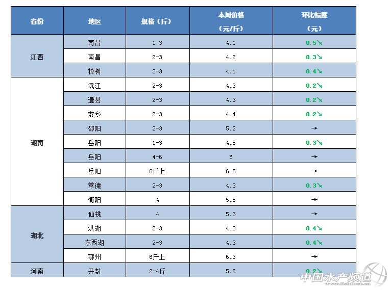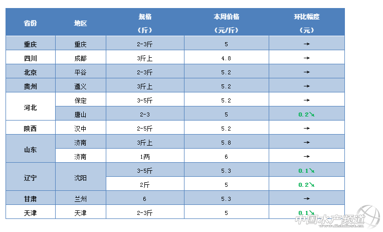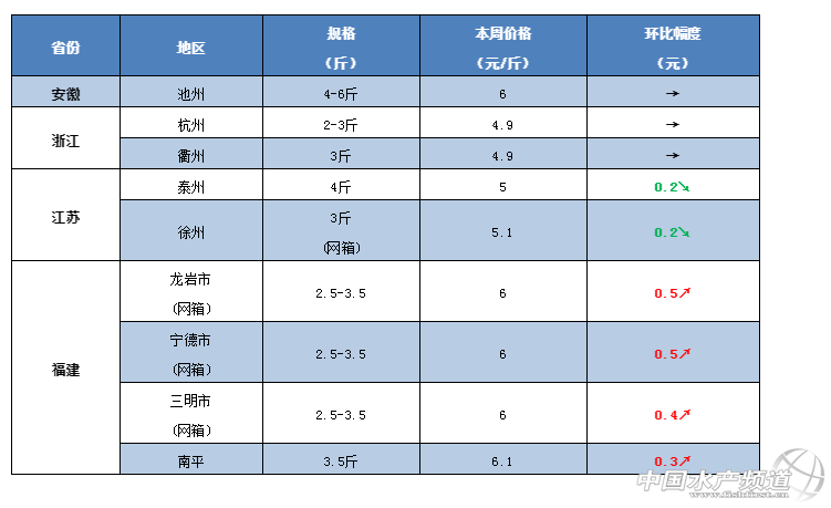 中國水產(chǎn)頻道原創(chuàng)報道, 廣東、華東草魚行情大好,各地漲漲漲! 文/ 水產(chǎn)前沿 鄭鵬飛 一周要聞 本周珠三角地區(qū)價格整體呈上漲趨勢,開平地區(qū)最高上漲0.7元/斤。據(jù)了解,最近草魚苗種開始走俏,中山地區(qū)1-3兩的苗種最高已經(jīng)賣到5.8元/斤。本周福建地區(qū)草魚上漲勢頭強勁,最新塘頭價較上周整體上漲0.3-0.5元/斤,草魚價格全線突破6元大關(guān)。 養(yǎng)殖戶表示,最近水產(chǎn)市場異常繁忙,魚車紛紛出動搶魚,白沙洲市場上大草魚拉過去很快就被搶光,5斤草魚報價6.2-6.5元/斤。由于賣魚的增多,前幾天華中、華東以及北方大部分地區(qū)草魚價格出現(xiàn)小幅下滑,廣西地區(qū)較上周下滑0.2-0.3元/斤。 今日行情 華南地區(qū) 這幾天珠三角地區(qū)草魚價格全線飆紅,中山、珠海、江門、臺山等地草魚價格均出現(xiàn)0.1-0.2元/斤的上漲。開平地區(qū)草魚最高上漲了0.7元/斤,2斤草魚最新塘頭價突破5元/斤。近期,受華南地區(qū)氣溫回暖影響,養(yǎng)殖戶放苗非常積極,草魚苗種開始走俏,大涌地區(qū)1-3兩的草魚已經(jīng)賣到5.8元/斤。 中山:本周中山地區(qū)大規(guī)格草魚價格基本穩(wěn)定,草魚苗種開始走俏。據(jù)流通商介紹,目前大涌地區(qū)1-3兩的草魚苗最新塘頭價5.8元/斤,2-5兩賣5元/斤,3-7兩的賣4.6元/斤,目前整體價格穩(wěn)中緩慢回升。目前中山地區(qū)統(tǒng)鯇基本賣到4.8-4.9元/斤,5斤以上的賣6.2-6.8元/斤,6斤的草魚塘頭價7.2元/斤,目前保持穩(wěn)定。 江門:本周江門地區(qū)草魚價格也是出現(xiàn)小幅回升,其中2斤起的草魚最新報價4.7-4.8元/斤。 肇慶:目前,肇慶地區(qū)草魚價格也是有部分上漲,整體上漲不明顯。超市鯇最新報價4.3元/斤,較上周上漲0.1元/斤。養(yǎng)殖戶表示,目前魚車不多,短期內(nèi)價格可能起不了。 開平:這兩天,開平地區(qū)的草魚價格出現(xiàn)明顯上漲,最高上漲了0.7元/斤。臺山地區(qū)2斤左右的草魚最新報價4.7-4.8元/斤。 梅州:據(jù)業(yè)內(nèi)人士介紹,目前梅州地區(qū)4斤以上的草魚賣5.8元/斤,2-4斤的賣5.2-5.3元/斤,走量有所增加,廣州和佛山等地草魚最新報價基本保持穩(wěn)定。 廣西:最近,廣西的草魚價格出現(xiàn)一波下,整體下滑幅度為0.2-0.3元/斤。從養(yǎng)殖戶了解到,貴港、金陵和桂林等地區(qū)的最新塘頭價已經(jīng)跌回到5元/斤,目前魚不是很好賣。 華中地區(qū) 最近,華中地區(qū)進入了干塘和放苗的小高峰,大批草魚涌向市場導致近期魚不太好賣,價格整體出現(xiàn)0.2-0.4元/斤下滑。從養(yǎng)殖戶了解到,目前南昌、常德、洪湖等地草魚價格下滑比較明顯,南昌地區(qū)1.6斤的草魚最低賣到3.9元/斤,2斤草魚基本都在4.1元/斤左右。養(yǎng)殖戶表示,目前草魚市場熱鬧非凡,今天武漢白沙洲市場的草魚價格較昨天已經(jīng)回暖了0.1-0.2元/斤,尤其大草魚一到市場就被搶光,5斤以上大草魚最新塘頭價6.2-6.5元/斤。 江西:本周江西地區(qū)草魚整體行情比較低迷,魚不太好賣。有養(yǎng)殖戶表示,目前南昌部分地區(qū)草魚價格出現(xiàn)下滑,1.6-1.7斤規(guī)格的草魚最低賣3.9元/斤,2.5斤的賣4.1元/斤;樟樹的地區(qū)小規(guī)格的草魚賣4.1元/斤,大一點的賣4.6-4.7元/斤;贛州地區(qū)2.5-3斤的網(wǎng)箱草魚最新報價5.1元/斤,3斤以上的賣5.2-5.3元/斤;宜春地區(qū)3斤以下的草魚賣4.1元/斤。 湖南:從養(yǎng)殖戶了解到,目前湖南地區(qū)草魚整體行情也是不太好,草魚走不動,這幾天常德地區(qū)有部分市場草魚下滑了0.3-0.5元/斤。 湖北:本周湖北地區(qū)草魚整體還算穩(wěn)定,小規(guī)格草魚價格出現(xiàn)下滑,大草魚繼續(xù)吃香。有養(yǎng)殖戶表示,最近出魚量比較大,魚車比之前多了很多,場面比較火爆,今天白沙洲和仙桃市場草魚價格較昨天上漲了0.1-0.2元/斤,大草魚基本是拉到市場很快就被搶光,5斤以最新報價6.2-6.5元/斤。前兩天洪湖地區(qū)草魚價格跌了,2斤的草魚賣4.3元/斤,5斤的賣4.8-5元/斤。目前,隨州地區(qū)的草魚價格還是沒怎么,基本維持穩(wěn)定。 華東地區(qū) 本周華東地區(qū)草魚整體保持穩(wěn)定,其中福建地區(qū)整體繼續(xù)以上漲為主,江蘇、安徽、浙江、上海等地區(qū)草魚行情相對低迷,部分地區(qū)價格有小幅下滑;窗驳貐^(qū)5斤的草魚最新報價4.8-5元/斤,養(yǎng)殖戶表示魚不好賣。福建三明地區(qū)3斤的草魚塘頭價最高賣到6.2元/斤。 江蘇:由于最近出魚比較多,本周江蘇地區(qū)草魚行情出現(xiàn)小幅下滑。據(jù)了解,目前徐州、淮安、無錫等地區(qū)草魚不太好賣,部分地區(qū)價格有所下滑。養(yǎng)殖戶表示,目前淮安地區(qū)5斤的草魚最新報價只有4.8-5元/斤,行情不好。 福建:本周福建地區(qū)草魚整體還會保持上漲趨勢,最新塘頭價較上周整體上漲0.3-0.5元/斤。從養(yǎng)殖戶了解到,目前南平地區(qū)3斤的網(wǎng)箱草魚最新塘頭價6-6.1元/斤,三明地區(qū)最新塘頭價賣6元/斤,最高賣到6.2元/斤,價格繼續(xù)上漲;閩湖地區(qū)的草魚價格出現(xiàn)小幅下滑。 其他地區(qū) 本周西南地區(qū)草魚較之前好賣了一些,但是目前價格還是沒有明顯回升,四川德陽地區(qū)最新塘頭價5.3元/斤。最近,北方地區(qū)草魚行情不太好,沈陽地區(qū)最新塘頭報價下滑0.1-0.2元/斤,3斤多的草魚賣5.3元/斤,2斤的草魚回落到5元/斤。目前,西北地區(qū)草