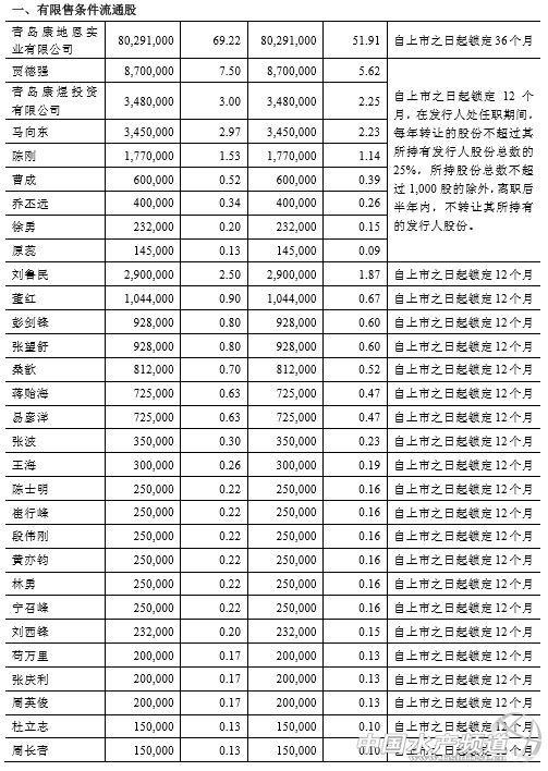 中國水產頻道獨家報道,蔚藍生物,股票代碼“603739” 文/ 水產前沿 唐東東 1月15日,青島蔚藍生物股份有限公司首次公開發行A股股票上市公告書,將于明日(1月16日)在上海證券交易所上市,證券簡稱“蔚藍生物”,股票代碼“603739”。 公告書顯示,本次新股發行數量為3866.70萬股,發行價格為10.19元/股,市盈率為22.99倍。發行后每股凈資產為5.62元/股,每股收益0.44元/股。采用網下向投資者詢價配售和網上按市值申購向持有上海市場非限售A股股份市值的社會公眾投資者定價發行相結合的方式,網下發行數量為386萬股,占本次發行總量的9.98%,網上發行數量為3480.70萬股,占本次發行總量的90.02%。本次主承銷商包股份的數量為118301股,包銷比例為0.31%。 本次發行共募集資金總額39401.6730萬元,扣除發行費用總額,募集資金凈額為34744.0291萬元。按此前的計劃,募集資金將用于以下用途:1、年產1萬噸新型生物酶系列產品項目,擬投資金21400萬元;2、年產1萬噸植物用微生態制劑系列產品項目,擬投資金19252萬元;3、1500噸/年獸用粉劑自動化密閉式工藝調配項目,擬投資金10000萬元;4、蔚藍生物集團技術中心建設項目,擬投資金6097萬元。由于發行所募集資金不能滿足上述投資項目的需求,缺口部分將由公司自行募集資金解決。 此外,公司子公司共注資1200萬占股70%,與越南合資方在當地投建胡志明蔚藍生物科技有限公司,建成后年產5000噸微生物菌劑產品,目前該公司尚在前期籌備當中,不過已于2018年8月29日取得當地工商登記核準證書。 發行后,康地恩實業持有蔚藍生物51.91%的股份共8029.1萬股,為控股股東,張效成、黃炳亮則分別持有康地恩實業50%的股權,為蔚藍生物的實際控制人。在報告期內,張效成、黃炳亮一直通過康地恩實業參與發行人的經營決策,且二人在發行人董事會投票及康地恩實業內部作出與發行人有關的決策時一直保持一致。張效成、黃炳亮于2017年6月簽訂《一致行動協議》。按發行的股價,張效成、黃炳亮所持股票已增值為8.18億元。 資料顯示,蔚藍生物成立于2005年2月23日,注冊資本為11600萬元,以酶制劑、微生態制劑的生產、研發和銷售為主營業務。公司所生產的酶制劑產品,已經廣泛應用于飼料、紡織和食品等行業。主要客戶包括:新希望六和股份有限公司、山東華夏維康農牧科技有限公司、HUVEPHARMAEOOD、廣東溫氏食品集團股份有限公司、黑龍江北三峽養殖有限公司、贏創營養與消費化學品有限責任公司等。 2018年1-9月公司營業收入為59071.04萬元,同比增長1.00%。歸屬于母公司股東的凈利潤為5231.17萬元,同比增長1.69%。扣除非經常性損益后歸屬于母公司股東的凈利潤為4346.89萬元,同比增長3.68%。預計2018年全年營業收入80000萬元至82673萬元,同比增長0.07%至3.41%;預計歸屬于母公司股東的凈利潤8600萬元至8900萬元,同比增長0.44%至3.94%;預計扣除非經常性損益后歸屬于母公司股東的凈利潤為6900萬元至7400萬元,同比增長0.66%至7.95%。 注:青島康煜投資有限公司為蔚藍生物董事、總經理陳剛獨資,因此陳剛的實際持股數量為525萬股 蔚藍生物董事、管理人員持股情況 |