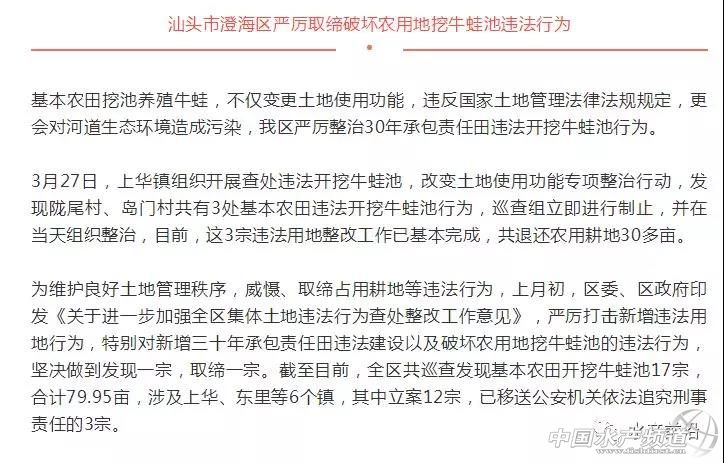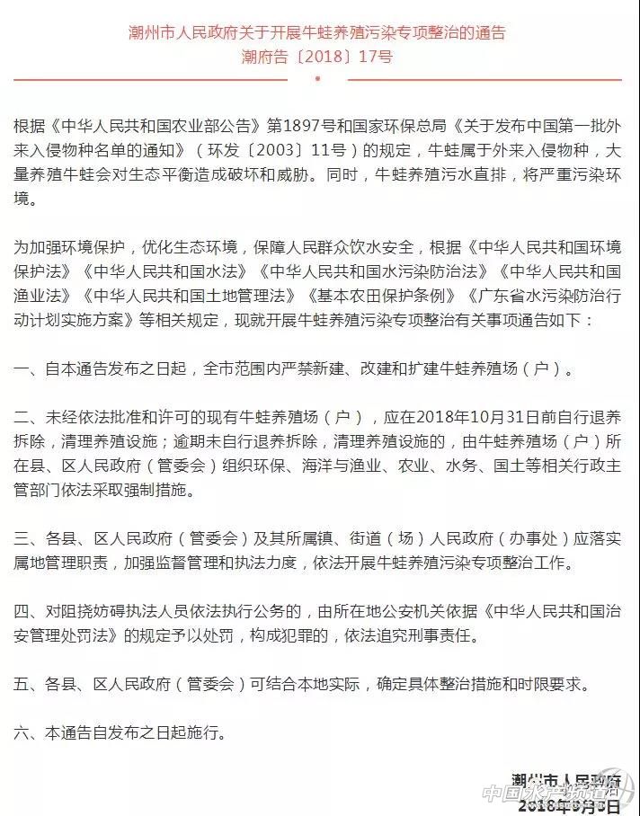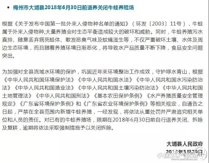 文/圖 中國水產頻道綜合整理 2019養殖什么品種更賺錢?——牛蛙? 中國水產頻道綜合整理報道,養什么品種利潤高、市場上最受歡迎,這是很多養殖戶所關注的問題。此前,我們根據2018年的市場統計數據,精選出當前行業關注度高、搜索熱門以及養殖規模增長明顯的十大水產養殖品種,其中牛蛙傲然在列。 一個由國內餐飲市場所帶動的養殖熱潮——牛蛙養殖。它的肉質細膩,且具有養殖技術簡單、成活率高、出肉率高、養殖周期短等特點,目前已大部分取代了青蛙肉的市場銷售,年總養殖量在30萬噸左右。但由于牛蛙屬于外來物種,且高密度養殖牛蛙所產生的環境污染問題嚴重,目前江西、廣東、福建等地區已禁養,從而造成牛蛙市場價格的高升,最高曾達17元/斤。 市場供不應求,超過10元/斤就是暴利 牛蛙自20世紀60年代引入我國,經50余年的發展,牛蛙養殖技術逐漸成熟。據不完全統計,在2013年中國的牛蛙產量達到15萬噸。由于當時供求關系不平衡,導致眾多牛蛙養殖戶虧本。2015年牛蛙最低收購價不到3元/斤,2016年,暴漲至15元/斤,最低在4-5元/斤。2017年,牛蛙行情最低時5-6元/斤,最高時接近15元/斤。一般來說維持在七八塊錢的時候,養殖戶的利潤就比較可觀了,超過10塊錢就是暴利了。這也是很多牛蛙養殖戶堅持養殖的根本原因。 浙江地區的牛蛙養殖歷史由來已久,目前主要集中于湖州千金、雙林和德清等地。2018年,由于各地相繼出臺禁養牛蛙的政策,牛蛙養殖量日益減少,然而市場的需求量卻在不斷擴大,牛蛙供不應求使得不少牛蛙養殖戶賺的盆滿缽滿。 參考一則消費需求數據: 截止到2018年2月,全國牛蛙特色餐廳數量超過2.2萬家,相比2017年同期增長2691家,比2016年同期則增長4443家。這個數字還在持續增長。從百度指數來看,小龍蝦的夏季消費高峰過去之后,牛蛙的搜索指數甚至超過了小龍蝦。 《美團餐飲報告2018》顯示,以牛蛙、小龍蝦、酸菜魚等作為招牌的單品餐廳越來越多,而且各個單品品類均出現了代表性的品牌。 全國Top10省市地區牛蛙餐廳數量(數據來源:美團點評) 另外,由于牛蛙的肉質,各種菜系也都開始使用牛蛙入菜,甚至江浙菜系也包括在內。業內人士表示,與前幾年相比,整個市場的牛蛙用量增幅都是比較大的。 沒什么菜品是只有牛蛙才能做的,但是看起來原本不做牛蛙的菜系,也可以將牛蛙塞進去。無論是外賣平臺銷售最好的干鍋牛蛙、香辣牛蛙、泡椒牛蛙,還是網絡爆火的雙層牛蛙銅鍋,同樣做法換成別的做法一樣可以:店里一般也都提供別的食材選擇,以平衡牛蛙價格波動帶來的成本上漲。 從外賣平臺的數據來看,牛蛙的增長更為明顯。餓了么的數據顯示,2018年1-7月,全平臺牛蛙訂單量環比提高了41%,商戶數則環比提高了30%,午餐、晚餐時段占了全天牛蛙訂單超過77%的比例,還有13.6%發生在宵夜時間段。 與此同時,原本做半成品小龍蝦的公司,也開始將目光投向牛蛙。 門檻低、利潤高的牛蛙緣何被禁養? 據有關部門調查:牛蛙因其養殖門檻低、利潤高,因此其養殖迅速蔓延,但是也帶來了一系列問題。 牛蛙養殖對水質要求較高,一般選在水的源頭處養殖。但是養殖水體嚴重富營養化,尾水未經處理直接排放,對水域環境造成污染。病死牛蛙未經處理,隨意棄置,造成河道生態環境污染。 養殖戶為追求利潤,一般采用高密度的養殖方式,為保證成活率大劑量使用抗生素,對食品安全造成隱患。牛蛙體內存在霍亂弧菌等寄生病菌,可能導致食物型霍亂的流行和爆發。 牛蛙屬于外來入侵物種,已于2013年2月1日列入農業部發布的《國家重點管理外來入侵物種目錄(第一批)》(第1897號公告)中。牛蛙成蛙會捕食其他蛙類,蝌蚪也會捕食其他原生蛙類的蝌蚪,牛蛙蝌蚪期可長達1-3年,所以對其他蛙類蝌蚪的影響相當大。 回顧2018年來各地禁養牛蛙政策頻出臺 牛蛙養殖,暴利與風險并存,主要產地在廣東和福建。但在今年,福建、廣東、江西幾乎是同一時間進入了退養或禁養新高潮,不符合要求的養蛙場面臨退養或關閉。 廣東禁養清剿進入倒計時! 潮州全市:完成清理面積2137.17畝 據潮州市海洋與漁業部門介紹,近段時間來,潮州市各縣區黨政主要領導高度重視,組織人員持續開展督查。一方面,全力開展牛蛙養殖污染專項整治的宣傳,深入養殖場(戶)做好退養、關閉、拆除的動員工作。另一方面,分步驟組織各鄉鎮對牛蛙養殖戶進行摸底調查、登記造冊,下達限期自行拆除通知書。針對逾期未自行退養、拆除、關閉的,由養殖場(戶)所在縣、區人民政府(管委會)組織環保、海洋漁業、農業、水務、國土、林業等相關行政主管部門依法采取強制措施,予以清理拆除。 截至去年12月24日,潮州全市已完成清理面積2137.17畝,占應清理面積的86%。潮安區、饒平縣、湘橋區和鳳泉湖高新區分別完成應清理面積的93%、91%、55%和76%。 潮安區:整治工作進入掃尾階段 據了解,潮安區高度重視牛蛙養殖整治工作,積極采取措施,落實整治責任,加強牛蛙養殖清理整治工作。該區于去年8月底發出嚴禁牛蛙養殖的通告,在全區范圍內禁止牛蛙養殖,全面開展牛蛙養殖專項整治工作。根據各鄉鎮前期摸底排查,全區共有牛蛙養殖戶100多戶,養殖總面積達300多畝。 饒平縣:鼓勵養殖戶轉養發展生態農業 去年8月10日,饒平縣委縣政府發布通告,決定在全縣范圍內廣泛開展牛蛙養殖污染專項整治行動。截至去年