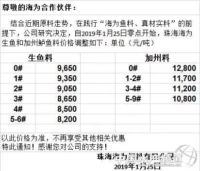 中國水產頻道原創報道,從1月25日零時起,一大波企業對生魚料、加州鱸料降價300-400元/噸。最高降400元/噸!珠三角特種料降價風暴兇猛來襲!海大、通威、粵海、旺海率先降價,豐華、德海將緊跟,還有恒興... 文/水產前沿 唐東東 整理 降降降!繼福建市場草魚料、羅非魚料價格下調后,今天,新一輪降價潮兇猛來襲! 1月25日,珠海海龍、珠海海為、中山粵海、順德旺海等企業挑起了珠三角特種水產料的降價大旗,從1月25日零時起,對生魚料、加州鱸料降價300-400元/噸。 目前 ,降價風潮在圈子內迅速蔓延。據筆者了解恒興珠三角大區稱正在了解情況,據知情人士稱,降價已是板上釘釘的事情,目前只是在走正常程序而已;珠海德海也稱將在明日發布降價通知。 順德豐華飼料剛剛表示,明天起即1月26日將跟進生魚料降價的步調,但加州鱸料暫時不降。 初略估算,2018年珠三角生魚料市場容量約為50萬噸,加州鱸料市場容量約為15萬噸,其中海大(包括珠海海龍等)、順德旺海的生魚料銷量在總量中的占比超過50%,佛山杰大、珠海海龍、順德旺海則是珠三角加州鱸料的主要銷量企業。 可見,本次降價由于是主導企業挑起,因此最終落地的可能性非常大。不過,作為珠三角加州鱸料市場主導者之一的佛山杰大,則表示“由于2018年杰大加州鱸料已降過一次價,而當時很多同行沒有跟進,因此這次不一定會同步降價,將重心放在產品質量上,將根據運營成本來綜合考慮。我們的原則是不會降低質量參與惡性競爭”。 同時筆者也獲悉,本輪降價的原因不一,其中生魚料降價主要是因為生魚行情低迷,養殖戶虧損,企業降價有與養殖戶共度難關的意思;加州鱸料降價則部分屬于補降,因為2018年6月份時有企業降了,有些沒降,但是沒降的也通過促銷等政策彌補了。這次降價則是把促銷取消,價格降下來。另外,海鱸料為什么沒有降?一方面是海鱸魚價格相對較好;另一方面是前幾年惡性競爭,飼料企業的盈利空間大幅下滑,沒有回歸到合理的盈利水平。因此,海鱸料預估暫時不會降價。 附1月25日飼料企業降價通知: 中山粵海飼料有限公司 產品價格調整通知 尊敬的經銷商、養殖戶: 由于主要原材料回落,保證產品質量前提給予廣大用戶實惠,公司決定于2019年1月26日零時起對產品價格進行下調,調整如下: 1、金裝生魚料下調500元/噸;冬棚生魚料(5—6號)、普通生魚料(1—4號)下調400元/噸;普通生魚料(5-6號)下調300元/噸。 2、加州鱸魚料價格調整如下:加州鱸魚料1-2號,11600元/噸(232元/包);加州鱸魚料3-4號11200元/噸(224元/包);加州鱸魚料5-9號10800元/噸(216元/包)。 特此通知! 中山粵海飼料有限公司 2019年1月25日 旺海飼料實業有限公司 “匠心精品旺海創,攜手協作渡嚴寒”。 自2019年1月25日零時起,對以下品種價格作出調整: ① 普通生魚料1#-4#、精品生魚料1#-4#每噸優惠400元(8元/包); ② 普通生魚料5#-6#、精品生魚料5#-7#每噸優惠300元(6元/包) ③ 精品加州料1#-4#每噸優惠400元(8元/包); ④ 精品加州料5#-8#每噸優惠300元(6元/包)。 ⑤ 其他品種暫不變。 旺海飼料實業有限公司 珠海海龍生物科技有限公司 各位客戶朋友們,結合當前行情,公司于1月25號凌晨開始對以下品種降價: 生魚1#、4#、5#、6#降價300元/噸;2#降價350元/噸;3#降價400元/噸; 高檔生魚料海生園系列降價400元/噸; 加州料0--4#降價400元/噸,5-9#降價300元/噸。 珠海海龍生物科技有限公司 珠海海為飼料有限公司 江門市新會區奧特飼料有限公司 各位客戶朋友們,結合當前行情,公司于1月25號凌晨開始對以下品種降價: 生魚1#、4#、5#、6#降價300元/噸;2#降價350元/噸;3#降價400元/噸; 高檔生魚料海生園系列降價400元/噸; 加州料0--4#降價400元/噸,5-9#降價300元/噸。 江門市新會區奧特飼料有限公司 早在1月中旬,福建淡水魚料市場率先降價,其中有福建恒興、廈門同欣榮等行業知名品牌公司,之后,廣東茂名粵誠飼料有限公司也下調了飼料價格。 附1月中旬飼料企業降價通知: 福建恒興飼料有限公司 由于原材料價格下降,我公司從2019年1月14日零點起對以下品種降價: 101(粉料,1.0)苗料降價80元/噸, 膨化羅非魚料(106,107,217,216)降價120元/噸, 膨化草魚料(803,805,225,223)系列、101(3.0)降價120元/噸, 顆粒草魚料221系列降價100元/噸。 廈門同欣榮飼料科技有限公司 福建漳州龍文塔飼料有限公司 從即日起下調膨化魚料,魚沉料,魚苗料從即日起到元月10日止每包優惠4元。折合下調幅度為200元/噸。 福建龍泰飼料有限公司 自2018年12月30日起,公司所有魚料系列全部下降2元每包。 附1月22日飼料企業降價通知: 茂名市粵誠飼料有限公司 尊敬的各經銷商與養殖戶:由于近期原料價格有所下降,為了確保用戶利益,經公司研究決定,春洋魚料價格從12月22日起下調如下: 1、浮水料降3元/包, 2、沉水料降4元/包, 祝各位老板養魚豐收、生意興隆! 茂名市粵誠飼料有限公司 12月22日 3天前,我們就分析,由于豆粕價格大幅跌價(業內或將會跌至2200元/噸)以及魚粉價格長期低迷,為爭取更多客戶,預計春節后將掀起降價潮。 然而,僅隔3天,新一波降價潮就兇猛襲來。目前,珠三角部分特種料和福建大宗普通料如草魚、羅非魚料已下調價格,未來,華南其它地區、華中、華東以及北方市場,更多企業、更多品種料會不會跟進降價?拭目以待! |