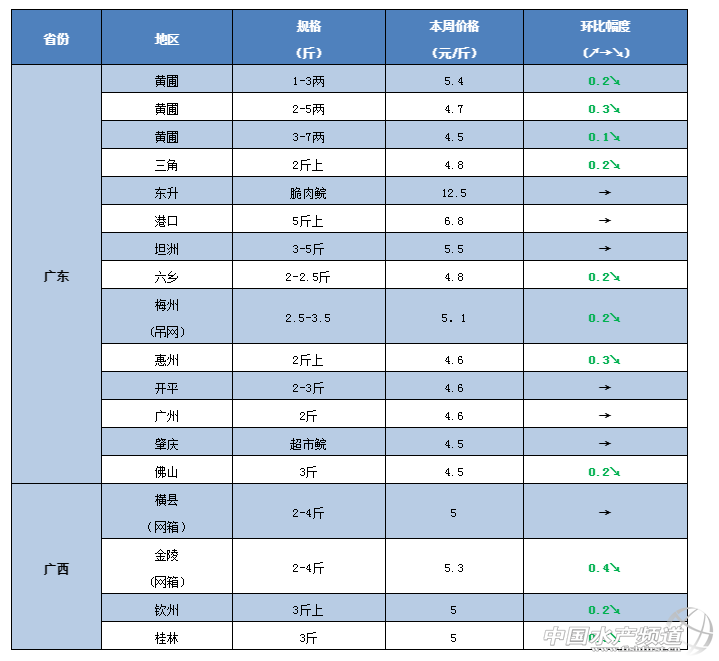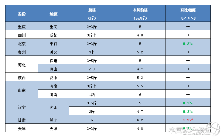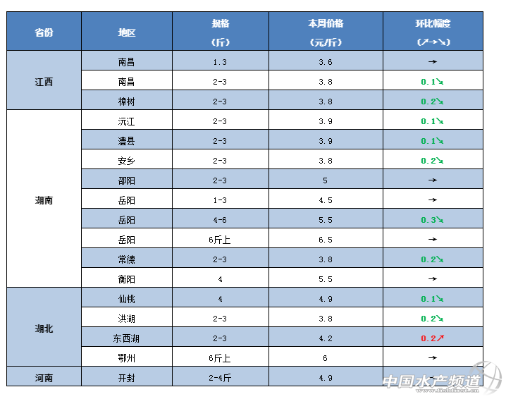 中國水產(chǎn)頻道原創(chuàng)報道,草魚有好消息了?!今天已有部分地區(qū)價格出現(xiàn)喜人反彈,暴風(fēng)雨雪將至+春節(jié)效應(yīng),能否拉升價格上漲? 文/ 水產(chǎn)前沿 鄭鵬飛 一周要聞 今年的魚價行情真是讓人捉摸不透。按照以往的經(jīng)驗,年前草魚一般都會漲,但是從目前的情況來看,華南、華北、東北、西南等地區(qū)整體草魚行情卻穩(wěn)中有降。其中,河北地區(qū)整體下滑0.2-0.3元/斤,4斤的草魚只賣到4.7元/斤;遼寧沈陽地區(qū)3斤的草魚最新報價4.6-4.7元/斤,較之前最高下滑0.4元/斤;福建南平部分地區(qū)3斤以上的草魚最新塘頭價也是從5.7元/斤下滑到5.4元/斤;廣東中山1-3兩小草魚也從最高5.8跌至5.4元/斤。 不過,好消息也是有的。據(jù)流通商介紹,昨天下午甘肅蘭州市場草魚報價還只有5.3元/斤,到了凌晨3點多就漲到了6.2元/斤,最大漲幅達到0.9元/斤。目前武漢白沙洲市場草魚價格也是出現(xiàn)巨大波動,報價從5.1-7.5元/斤不等,目前的市場價格是一天一個價。受年關(guān)消費拉動,湖南常德、四川成都、湖北武漢等地的魚較之前好賣了一些。 受冷空氣影響,未來幾天我國大部分地區(qū)都將出現(xiàn)雨雪降溫天氣。南京地區(qū)最低氣溫將降到-2℃,最大累計降溫達到11℃,養(yǎng)殖戶表示希望這波降溫加上年關(guān)消費拉動下草魚行情能夠有所回暖。 今日行情 華南地區(qū) 本周華南地區(qū)天氣持續(xù)晴好,未來幾天雖然又有冷空氣南下,但是華南地區(qū)受到影響不會太大,白天氣溫基本還是維持在20℃以上。目前年關(guān)將至,很多養(yǎng)殖戶只等魚價上漲,但最新草魚行情可能又要讓大家失望了。目前,華南大部分地區(qū)的草魚最新報價除了大草魚還比較穩(wěn)定,從苗種到統(tǒng)鯇幾乎是全線下跌。其中,中山地區(qū)1-3兩的草魚最新報價5.4元/斤,最高下滑0.4元/斤;近期湖南草魚大量進入廣西市場,統(tǒng)鯇最低只賣到4.5元/斤,雖然本地草魚基本還是5元/斤,但是賣的很少。 中山:本周中山地區(qū)除了大草魚和脆肉鯇繼續(xù)保持穩(wěn)定,其他規(guī)格草魚基本都有所下滑。其中,大部分地區(qū)超市鯇下滑了0.2元/斤,最新塘頭價4.8元/斤;小草魚價格也是小幅下滑,目前大涌地區(qū)1-3兩草魚苗種賣5.4元/斤,下滑0.4元/斤;2-5兩的賣4.7元/斤,下滑0.3元/斤;3-7兩的賣4.5元/斤,下滑0.1元/斤。養(yǎng)殖戶表示,目前中山地區(qū)草魚價格整體還算可以,不過相比廣東出現(xiàn)豬瘟那段時間差了一些,年前沒機會了,漲價只能看年后了。 茂名:據(jù)養(yǎng)殖戶介紹,目前茂名地區(qū)6斤以上的草魚最新塘頭價6-6.2元/斤,最近草魚行情非常差,魚賣不動。 肇慶:據(jù)了解,目前肇慶地區(qū)草魚市場行情整體還是比較淡,超市鯇的草魚最新塘頭價4.5元/斤,暫時沒有出現(xiàn)好轉(zhuǎn)。 廣西:本周廣西地區(qū)草魚整體行情也是出現(xiàn)下滑趨勢。據(jù)了解,近期湖南草魚大量進入桂林市場,桂林地區(qū)草魚最新報價4.5元/斤,雖然本地草魚還是5元/斤,但是魚賣的很少。有養(yǎng)殖戶表示,目前貴港地區(qū)草魚暫時還是沒有出現(xiàn)好轉(zhuǎn),最新塘頭價5元/斤,之前大家都覺得價格會漲,導(dǎo)致目前還有很多魚都還沒出。 華中地區(qū) 年關(guān)將至,部分市場的行情開始出現(xiàn)較大的波動。其中,武漢白沙洲市場草魚行情開始出現(xiàn)巨大波動,最近一天好幾個價,從5.1-7.5元/斤價格不等。有養(yǎng)殖戶表示,目前常德地區(qū)的草魚銷售也開始出現(xiàn)好轉(zhuǎn)。不過,目前華中地區(qū)草魚的整體流通依然不暢,整體行情還是非常低迷。迫于壓力很多人虧本也得賣,導(dǎo)致魚價越賣越低,目前湖南、湖北、江西大部分地區(qū)的最新塘頭價都有所下滑。其中,南昌地區(qū)2斤的草魚最新塘頭價只賣到3.8元/斤;岳陽地區(qū)1-4斤的草魚也是跌破4元/斤,創(chuàng)下當(dāng)?shù)貧v史新低;常德地區(qū)2-4斤的草魚最新報價3.5-3.8元/斤,只求有人要;仙桃地區(qū)5斤的草魚零售只賣到5.5元/斤。 江西:本周江西大部分地區(qū)草魚都還是不太好賣,價格依然有小幅下滑。目前吉安地區(qū)2-4斤的草魚從上周的4.5元繼續(xù)下滑到4.4元/斤,下滑0.1元/斤;樟樹地區(qū)小規(guī)格草魚只賣到3.8元/斤,3斤以上的賣4元/斤,養(yǎng)殖戶表示春節(jié)前是不會漲了;南昌地區(qū)2斤的草魚最新塘頭價只賣到3.8元/斤;贛州地區(qū)3斤的網(wǎng)箱草魚賣5.2-5.3元/斤,價格穩(wěn)中有降,有價無市,養(yǎng)殖戶表示魚車都去其他地方裝魚了。 湖南:據(jù)了解,這兩天湖南常德地區(qū)草魚行情開始有所稍微好轉(zhuǎn),魚開始好賣一點。不過,大部分地區(qū)行情還是非常低迷,迫于資金壓力,很多養(yǎng)殖戶虧本也在賣魚,導(dǎo)致價格是越賣越低。其中,岳陽地區(qū)1-4斤的草魚跌破4元/斤,價格跌至歷史新低,4斤以上的草魚最新塘頭價4-4.5元/斤,養(yǎng)殖戶表示魚的流通依然不暢,近段時間可能不會有好轉(zhuǎn),總體應(yīng)該會維持當(dāng)前價位,春節(jié)前后即使上漲也只能是曇花一現(xiàn);常德地區(qū)2-4斤的草魚最新報價3.5-3.8元/斤;湘陰地區(qū)2斤的草魚市場上基本不走了,行情不容樂觀;目前益陽地區(qū)最新報價3.8-3.9元/斤,迫于壓力很多人虧本也得賣,價格越賣越低;養(yǎng)殖戶表示,目前長沙地區(qū)還是沒有什么魚車,行情還是不見好轉(zhuǎn),