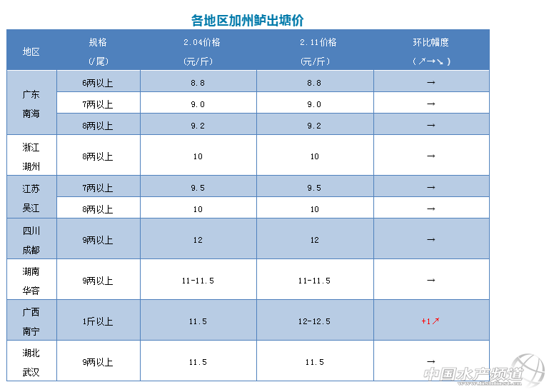 中國水產頻道原創報道, 文|圖 何氏水產 水產前沿 李靜 全國除了廣西南寧由于塘頭人工上漲,開塘量不多,導致價格上漲了1元/斤,其它地區本周價格與上周相比沒什么變化,上周由于部分城市停發貨,有兩三天銷量比較少,到周末銷量恢復正常,從今天開始市場行情有些回落,銷量下滑。 1、廣東鱸魚本周價格與上周一樣, 6兩以上8.8元/斤,7兩以上9.0元/斤,8兩以上9.2元/斤,最終成交價還是看魚頭、質量以及8兩以上的比例來定價的。這兩天由于部分收購商休息,貨量比平日大,部分收購商收不夠魚,塘頭有加0.2-0.3元/斤來滿足市場訂單,但這只是短期行為,塘頭價格總體沒有變化。本周開始,銷量恢復正常,接下去銷量還會慢慢下滑,本周價格或持穩或有少許上漲,下周會回歸正常。 2、浙江湖州新魚還是出統貨為主,8兩以上成交價還是10元/斤,統貨價格8-9元/斤,銷量上漲,養戶出魚積極性不高,本周銷量會下降。本周江蘇吳江價格不變,7兩以上還是9.5元/斤,8兩以上還是10元/斤,出魚量比上周大,預測接下來價格會持穩,本周銷量比上周少。廣西南寧由于塘頭人工漲價,銷量上漲,價格上漲了1元/斤,其他產區本周價格與上周一樣,本周開始銷量也會下滑。 |