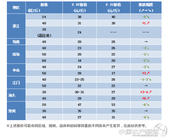 | 中國水產頻道原創報道, 文/ 水產前沿 植銀素 張紅 價格全線跌,對蝦最受傷 剛剛過去的春節,不但是養魚戶最難過的春節,同時蝦農過得也很“煎熬”,這是因為大家預期春節消費旺季將大幅拉動魚蝦價格走高,不但沒有盼來,反而出現全線暴跌。除了少數品種如金鯧魚、海鱸之外,其他絕大部分熱門品種都跌,其中對蝦跌得最慘,珠三角、福建冬棚普遍跌8-12元/斤,粵西大蝦同期比更是下跌了40元/斤,山東地區30頭/斤規格對蝦也跌得厲害,同期比下跌25元/斤。這一輪蝦價不但跌得重,且持續時間很長,貫穿了整個春節。 好消息,部分蝦價現喜人反彈 據水產前沿今日了解,盡管部分養殖產區蝦價仍然持續低迷,如海南地區,30頭/斤規格塘頭價只有20元/斤,與1月24日最高34元/斤相比,一個月內竟然下跌了14元/斤,但部分地區已出現了喜人的反彈上漲,且漲幅不小。如湛江徐聞、中山、汕頭等部分規格對蝦都漲了(具體看下表),還有福建漳州云宵地區40頭規格塘頭價在29-30元/斤,較上周同期大約上漲了1-2元/斤。 廣西北海地區今天45頭規格塘頭價約25-27元/斤,雖然價格暫時未有出現明顯上漲,但由于日前,北海發生了廣西首例非洲豬瘟疫情,在居民中引起了恐慌,很多市民少吃或不吃豬肉而轉向消費牛肉、禽類和水產品。牛肉已從平時45元/斤迅速飆升至60元/斤還供不應求,水產品需求也增加,養殖戶看好未來蝦價,塘中有蝦養殖戶都在持蝦待價。 步廣西后塵山東也發現首例瘟疫病豬,廣西、山東均為沿海地區,喜吃對蝦,業內人士預計豬疫將會刺激對蝦消費,從而拉動價格上升。 此外,一年一度湛江“吃年例”的習俗已進入高潮狀態,而對蝦是一道必備“硬核”菜肴。據悉,“吃年例”的時間將持續到農歷三月,這一段時間恰逢對蝦上市的青黃不接期,預計湛江的蝦價在年例消費刺激下,值得期待。 業內人士看好2019年對蝦養殖 眾所周知,在國際大環境國內小環境影響下,2019年對蝦養殖業或面臨價格低迷的嚴峻局面,或者說以往高蝦價不再現。主流觀點認為第一全球養殖產量增加可能包括中國在內;第二是國家雖然打擊邊貿走私力度增加但開放正關進口也在加大,預計境外對蝦進口量不會下降;第三是經濟下行影響,消費疲軟。但不少業內人士表示,在諸多水產養殖品種中,對蝦仍然是最被看好的一個值得養殖品種。理由如下: 1、對蝦養殖周期較短,一般養殖3個月就有收成。 2、即使蝦價下跌,仍有較大利潤空間,如白水塘對蝦,40頭20元/斤,管理得好,或有8-10元/斤利潤。 當然,即使今年對蝦再好養,要想賺錢就要做好如下工作: 1、進行改良蝦塘硬件設施、尤其是增氧條件要跟上; 2、選好苗,選好投苗時機; 3、可進行與其它品種魚蝦(如羅氏沼蝦、泥鰍)混養; 4、精養大規格蝦; 5、提高養殖技術,精心科學管理; 6、關注對蝦行情走勢,掌握養殖節奏,盡早上市; 7、養冬棚。 2019年,讓我們繼續支持對蝦養殖事業, 為養蝦業良性發展 努力、加油! 各產區白對蝦一周價格分析 湛江:今日蝦價土塘24頭38元/斤,40頭31元/斤,高位池30頭24-26元/斤。有養殖戶表示,近日湛江地區蝦車增多,交易也相對增多,價格雖有下跌,但行情有走好勢頭出現。同時,正月湛江吃年例的習俗有利于土塘蝦的銷路,價格沒有下跌太快。 海南:30頭20元/斤,海南東方地區存塘量不多,對比上周同期下降幅度較大,蝦價持續低迷。 中山:40頭24元/斤,50頭20元/斤。有賴于今年初氣溫較高,中山地區冬棚蝦養殖成功率有6成以上,養殖成功者畝產上千斤。今天中山50頭蝦價格小幅上漲,對養殖戶來說是絕對利好的消息,有養戶表示近日來收蝦的車輛增多,價格有望上漲。 江門:40頭25元/斤,50頭22元/斤。江門地區目前存塘量一般,但50頭規格的蝦對比前兩日有止跌上漲的勢頭。 珠海:40頭23元/斤,50頭20元/斤,60頭18元/斤。珠海目前貨源交充足,有養殖戶表示近兩日蝦車增多,但是價格沒有明顯起色。 汕頭:本周蝦價30頭30-31元/斤,40頭28元/斤。汕頭地區目前存塘量減少,近期價格大爆發,對比上周同期上漲8元/斤!目前主要出30-40頭規格的蝦。 漳州:本周蝦價20頭47元/斤,30頭35元/斤,40頭27元/斤。東山對蝦行情不比去年,養殖狀況欠佳,銷量也不佳。 |