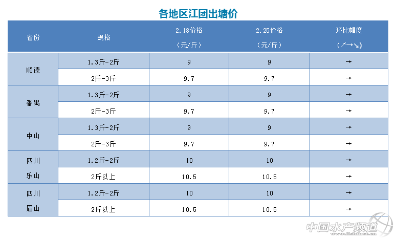 | 中國水產頻道原創報道, 文/圖 何氏水產、水產前沿 李靜 真是虧到心極痛!魚市行情陷跌價風暴,持續爛市。不但大宗養殖魚類如草魚、鯽魚、鯉魚價格暴跌,特種魚類如鱖魚、加州鱸、生魚等跌得更兇猛。在上周量價齊跌的基礎上,本周鱖魚最高再跌2元/斤,加州鱸最高再跌1元/斤,不但價格大降,兩條魚的銷量也呈大幅下跌。生魚銷量稍穩定,但價格仍止不住地跌,絕大部分人跌破成本。 不少業內人士無奈地驚嘆甚至震驚,全國大江南北魚價幾近全線暴跌,涉及品種之多持續時間之久下跌幅度之大,為20多年來罕見的現象。而何止魚價才能回暖反彈?目前,雖然廣東地區黃顙魚仍持續低迷行情,量價還在跌,但浙江、湖北地區市場已出現回暖,價格有所上揚,最高漲了0.5元/斤。另外生魚銷量企穩,上周部分地區對蝦價格現喜人上漲,如汕頭地區一周內漲了8元/斤,中山地區最高漲3元/斤,還有湛江也小幅漲。 那么,這些品種的表現是不是預示低迷已久的行情要回暖了呢?讓我們一起祈愿吧! 江團 1、廣東江團本周與上周相比大小魚價格保持穩定,小魚價格還是9.0元/斤,大魚價格還是9.7元/斤,F在廣東江團存塘量還能滿足市場需求,由于與四川本地差價不多,過來廣東拉魚的水車較之前少了。接下來價格還會暫時保持穩定,銷量差不多。 2、本周四川江團價格與上周相比大小魚價格不變,小魚還是10元/斤,大魚還是10.5元/斤。銷量比上周下滑,預測接下來價格變化不大,銷量不多。 |