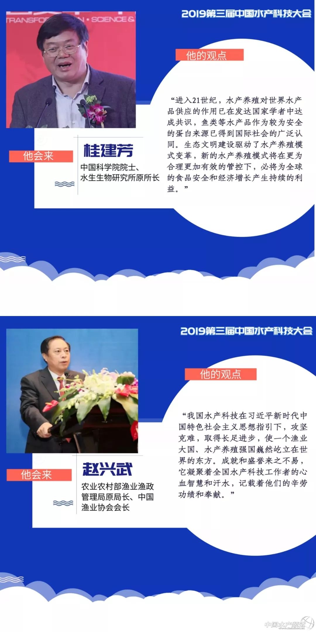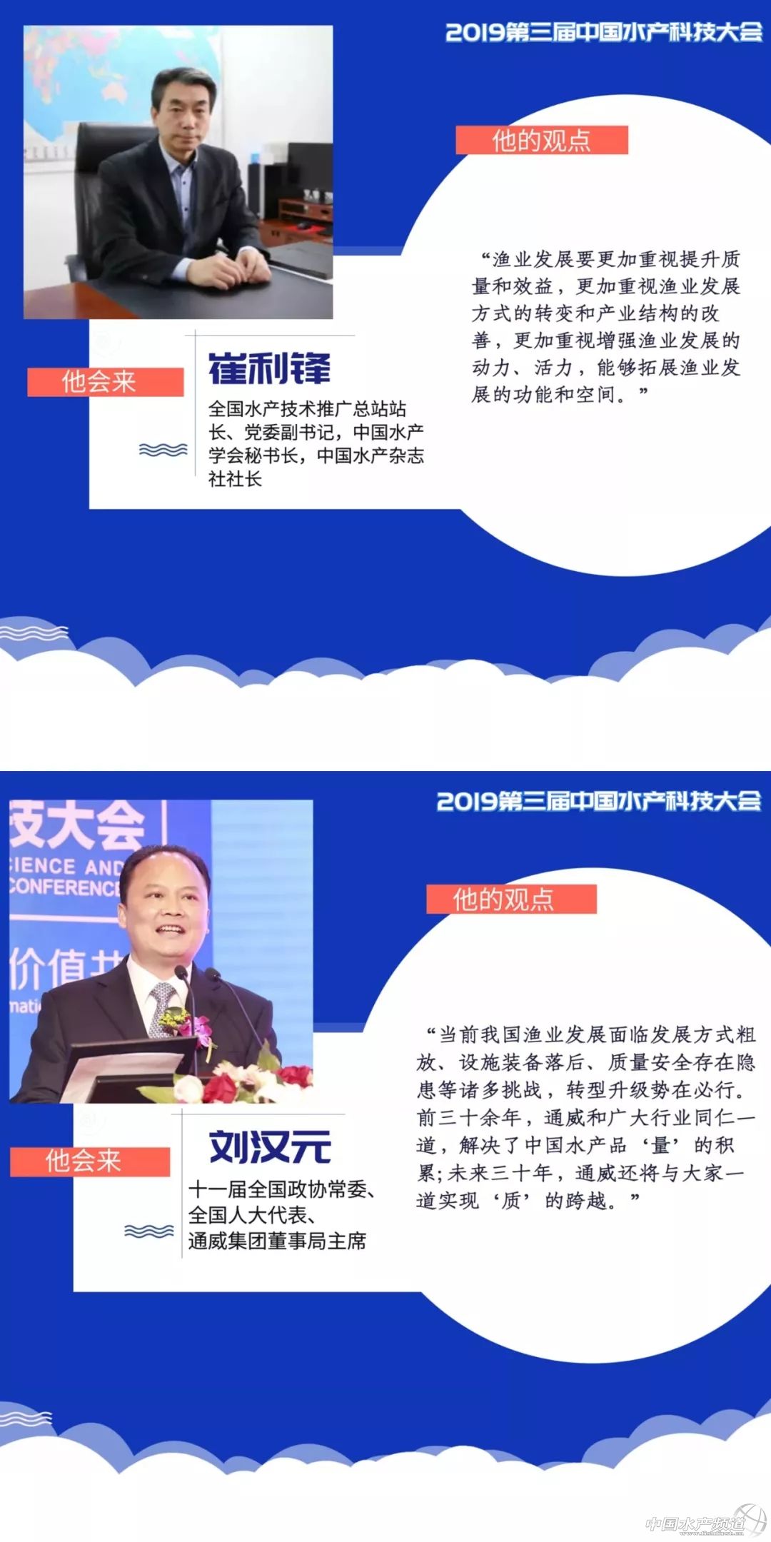 | 中國水產(chǎn)頻道獨家報道, 眾所周知 2019第三屆中國水產(chǎn)科技大會將于 4月26日在通威國際中心舉行, 大會高舉“創(chuàng)新驅(qū)動質(zhì)量興漁”大旗, 匯聚重磅行業(yè)大咖、水產(chǎn)精英, 共謀行業(yè)發(fā)展,聚焦創(chuàng)新驅(qū)動! 你想知道—— 大咖頭腦風暴有沒有??有! 滿滿的干貨有沒有??有! 馬上揭曉 前方高能 一大波水產(chǎn)界大咖來襲 |