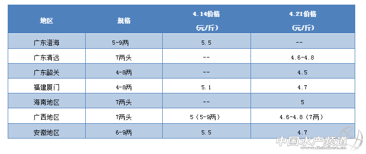 | 中國水產頻道報道, 產業發展協會成立,牛蛙即將崛起 文/圖 金浦飼料&水產前沿 陳曉慶 聯合發布 一周行情簡析 牛蛙 廣東:汕頭市澄海區牛蛙產業發展協會今天成立。汕頭市澄海區為全國牛蛙養殖的主要產區之一,全年牛蛙養殖產量在18-20萬噸。 2019年2月25日汕頭市澄海區人民政府發布《關于開展牛蛙養殖污染專項整治的通告》。牛蛙產業可持續發展的問題亟待解決。汕頭市澄海區牛蛙產業發展協會的成立,加強了對牛蛙品種的宣傳與推廣,促進其領域研究和市場開拓,推動牛蛙的產業健康、綠色、可持續發展。 4月21日,汕頭市澄海區牛蛙產業發展協會成立 廣西:4月21日廣西南寧牛蛙現金價7兩頭規格4.6-4.8元/斤,上周廣西玉林5-9兩規格牛蛙現金價5元/斤,價格有所下跌。究其原因主要在于近期牛蛙發病增多,腐皮、腸炎、紅腿等病癥頻發,養殖戶急于出蛙,市場蛙量過多,價格下滑。 近期,牛蛙腐皮、腸炎、紅腿病頻發,養殖戶損失慘重(圖片來源:東萬昌生物科技) 安徽:安徽地區4月21日6-9兩規格牛蛙4.7元/斤,4-7兩規格的4.8元/斤,相比上周下降了0.7-0.8元/斤。目前安徽地區出蛙量也比較多,因為臨近產卵期,蛙的抗病力差,容易發病,死亡風險較高,而且產過卵的蛙會倒瘦,造成減產。 福建:福建廈門目前也在降價出蛙,4-8兩規格的蛙4.7元/斤,相比上周下降了0.4元/斤。 海南:海南本周7兩頭的蛙塘口基價5元/斤,下跌幅度較小。 青蛙(黑斑蛙) 目前國內湖北、江西、蘇州等地青蛙統貨在17-19元之間,波動幅度不大。而據有關消息稱,江蘇南京地區青蛙已由上周的17元/斤升至21元/斤,大幅上漲4元/斤。 泰國虎紋蛙 |