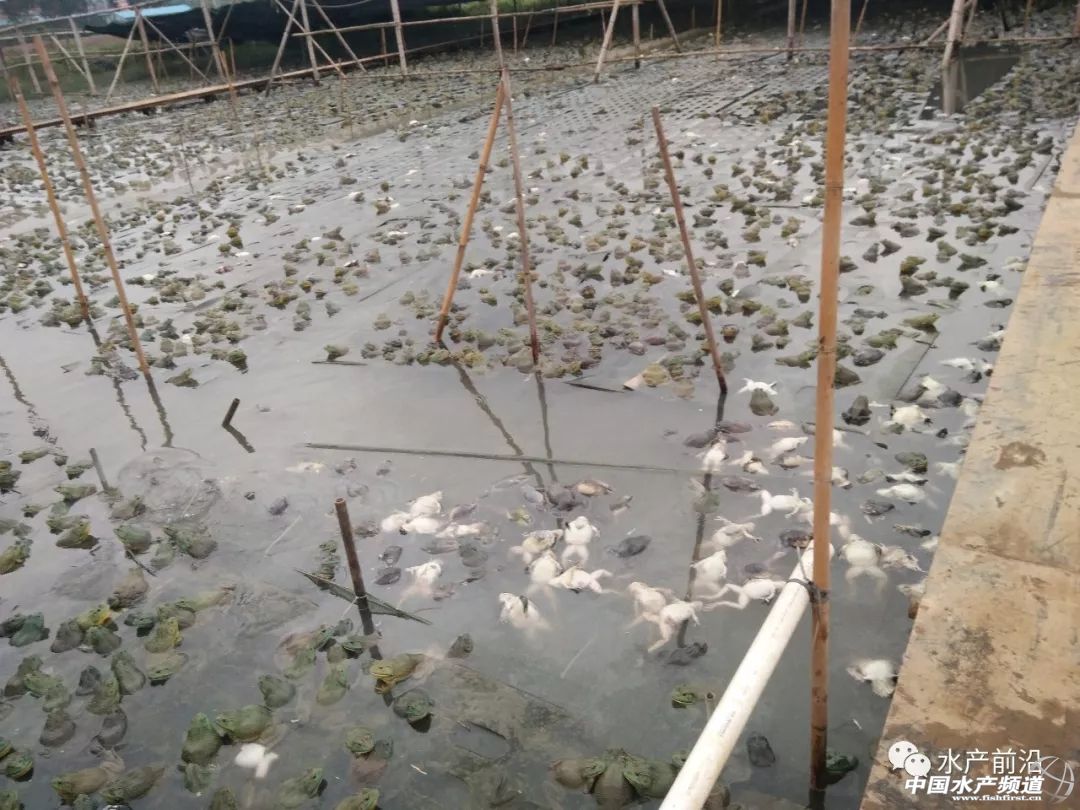 | 中國水產頻道報道, 文/ 中國水產頻道 大量死亡牛蛙,工人在打撈 挺過了臺風肆虐! 挺過了病害暴發! 挺過了行情低迷! 卻挺不過天災人禍! 一場突如其來巨大的天災人禍! 廣東省江門市新會區三江填養殖戶李其通從事水產養殖已有十幾年,目前主要養殖牛蛙、草魚等品種,由于他勤勞能干,善于管理,養殖一向注重水質調控,極少使用抗生素產品,牛蛙等也很少生病,所以他養殖的水產品綠色安全深受市場歡迎。對于養殖,李其通表示,非常辛苦,但每當血汗付出終有回報時,就覺得很欣慰,因此10多年來他一直堅持養殖,并且經?偨Y心得,養殖技術不斷提高,他樂于分享并成了周邊養殖戶信賴技術服務員,經常指導大家養殖。 李其通表示,他養殖的牛蛙都是”自產自銷“,即是自己打通流通銷售渠道,直接對接餐館,由于他的牛蛙是“無抗”蛙,價格自然高于市場價一籌。如目前市面上的牛蛙行情處于低迷狀態,最多只有5-6元/斤,但這些對他影響不大,因為他養殖的牛蛙規格大,一般達1.5斤以上,品質上乘,自己運輸至餐館,賣價可高達10元/斤。 李其通養殖牛蛙塘面積有7畝,去年9月份投苗的是40-60只/斤規格的牛蛙苗,經過半年時間辛苦養殖,目前牛蛙的規格達以6兩-1.7斤/只,總產量在45-50萬斤左右,計劃在近期陸續收獲,自己送餐館,預計產出達450萬元,豐收希望就在眼前。但一場意料不及“天災人禍”把這一切徹底毀滅了。 10多天來,天天打撈死蛙 李其通的養殖場位于江門大道邊上。據他稱,廣佛江快速通道江門段在江門大道施工打水泥樁,修建道路。4月11日正好修到李其場養殖場這一位置。李其通表示,工程是在完全沒有做好排污設施的情況下施工,而在施工當晚即11日晚天降大暴雨,導致混凝土大量沖進蛙塘了,連累蛙塘慘案發生了! 李其通稱,暴雨當晚,蛙塘水位就上漲了不少,奇怪的事情發生了,竟然出現了牛蛙死亡,至13-14日大規模死亡,15日待水退去部分水位降低后,發現池塘里殘留很多水泥漿,后來經排查發現原來是江門大道施工沒有做好排污設施,導致連降暴雨,混凝土漿流入蛙塘。據他之后打起塘里的水裝在瓶子里,瓶子里的水很快就凝固。 池塘打起的養殖池水,在瓶子里凝固了 事情發生后,李其通找到施工方交涉溝通,16日,施工方代表及合作商平安公司屬下的子公司評估公代表來到蛙塘,對死蛙情況進行評估,對損失情況簽字,但也是僅此一天而已。 稱重、評估死蛙現場 據抽樣統計,僅從4平方米的面積里就打撈起149斤死蛙。 但對于12日-15日死蛙數量(已由當地村生產隊長簽字確認)以及17日之后死蛙數量,施工方及其合作的保險公司均不承認、不簽字。李其通夫婦稱真是欲哭無淚。 死蛙出現后,李其通叫工人立刻換水,但也無濟于事,測量各項水質指標如PH值、氨氮、亞硝酸鹽等全部超標。12日開始就出現了死蛙,13-14日大量死亡,水色是黑的,每天打撈很多死蛙上岸,至15-16日很多已腐爛在塘底,根本無法打撈,整個蛙塘及周圍臭氣熏天,惡臭難頂。 到昨天(4月24日)李其通表示,已經有30萬斤牛蛙死亡,還有大約15萬斤在塘里,剩下的蛙屬于身體腐爛受傷的病蛙,每天以幾千斤的速度在死亡。這些蛙已無法銷向市場也不可能銷向市場,只能全部“報廢”。李其通及其太太不只一次向筆者稱:真是慘,血本無歸! 剩下的瀕死的牛蛙,細菌感染,爛皮爛肉,慘不忍睹 經歷這次死蛙創重并付出大量時間精力尋求說法,李其通及其太太心力交瘁。據李太太告訴筆者,由于死蛙數量太大,撈蛙工作又臭又累,聘請的工人現在都不肯來撈蛙,因為很多工人撈完死蛙后,皮膚出現又紅又癢過敏現象。之前施工方、平安公司叫保留死蛙作證,卻遲遲不來處理,高溫炎熱天氣之下,編織袋里的死蛙已腐爛長蛆,在當地政府協助之下,挖了大坑作無害化處理。 李其通還告訴筆者,暴雨沖刷混凝土漿入蛙塘不久,政府有關部門要求施工方先做好排污設施后再施工,但施工方并沒有做。于是在4月21日,江門再降暴雨,此時施工位置已遠離蛙塘,但卻在李其通草魚塘邊,于是又有混凝土漿再次流入魚塘,幸虧魚塘塘基較高,混凝土漿進入相對較少,但也導致了2000-3000斤草魚死亡,約損失了1萬多元。 據李太太表示,昨天下午5點多鐘時,她接到來自信訪部門短信,稱目前三江鎮政府部門接受處理這個事件,在60個工作日內出結果。李其通夫婦表示,目前只有等待,心中是非常忐忑,不知道理賠的結果會如何?不奢望產值450萬元能得到全額賠償,單單是成本投入200多萬能否賠償也是未知數,但目前只有等待。 發稿之前,筆者聯系了施工方代表了解情況,但對方表示不方便透露。 死蛙不計其數,目前每天仍死數幾斤 |