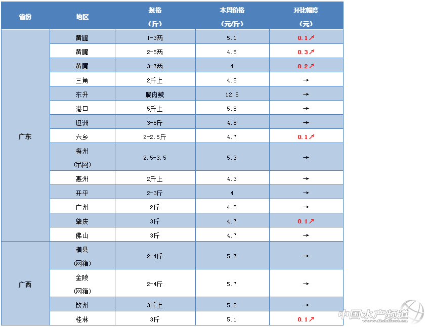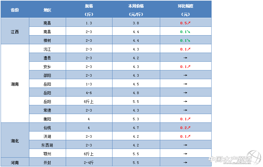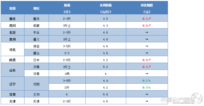 文/ 水產(chǎn)前沿 鄭鵬飛 一周要聞 中國水產(chǎn)頻道原創(chuàng)報(bào)道,隨著五一小長假的臨近,近期各地淡水魚行情也是整體呈現(xiàn)上漲趨勢。據(jù)養(yǎng)殖戶介紹,最近兩天泰州鯽魚暴漲0.8元/斤,9兩的鯽魚已經(jīng)賣到7.1元/斤;無錫地區(qū)的鳊魚也從之前的3.2-3.3元/斤漲到現(xiàn)在的5.2元/斤,最大漲幅達(dá)到2元/斤;遼寧沈陽地區(qū)鏡框鯉漲勢迅猛,最新塘頭賣到6.5元/斤;甘肅蘭州地區(qū)鯽魚在兩天內(nèi)上漲0.5元/斤,最新報(bào)價(jià)7元/斤。 草魚作為國內(nèi)產(chǎn)量最高的淡水魚養(yǎng)殖品種,整體行情也是繼續(xù)保持回暖趨勢。從養(yǎng)殖戶和流通商了解到,最近中山部分地區(qū)3斤的草魚一周內(nèi)從4.2元/斤漲到4.7元/斤,漲了0.5元/斤;最近大涌地區(qū)草魚苗種銷路有所好轉(zhuǎn),1-3兩草魚賣5.1元/斤,2-5兩的賣4.5元/斤,3-7兩賣4元/斤;目前,江西贛州地區(qū)3斤的草魚塘頭已經(jīng)賣到5.5元/斤,相比上周上漲了0.3元/斤,最近永州、婁底等地區(qū)也是有上漲勢頭;江蘇泰州部分地區(qū)4斤的草魚10天內(nèi)從3.9元/斤漲到了4.4元/斤,上漲0.5元/斤,目前無錫地區(qū)大草魚已經(jīng)賣到7.8元/斤,養(yǎng)殖戶表示五一之后很有可能漲到8.5元/斤;面對(duì)目前的養(yǎng)殖形式,有養(yǎng)殖戶表示今年的低魚價(jià)應(yīng)該會(huì)慢慢回升,預(yù)計(jì)中秋會(huì)達(dá)到行情的高點(diǎn)。 今日行情 華南地區(qū) 本周華南地區(qū)的草魚塘頭價(jià)整體上還是沒有明顯變化,節(jié)前局部市場受到供求變化的影響漲跌比較明顯。據(jù)養(yǎng)殖戶介紹,目前中山坦洲地區(qū)草魚塘頭價(jià)上漲趨勢比較明顯,部分地區(qū)3斤規(guī)格的草魚一周內(nèi)從4.2元/斤漲到4.7元/斤,漲了0.5元/斤。從流通商了解到,目前中山大涌地區(qū)草魚苗種銷路有所好轉(zhuǎn),行情呈現(xiàn)上漲趨勢,其中1-3兩草魚賣5.1元/斤,2-5兩的賣4.5元/斤,3-7兩賣4元/斤,成魚最新報(bào)價(jià)4.3-4.5元/斤,不過因?yàn)樗疁馗吡唆~長的很快,想要大幅上漲還是有壓力。據(jù)養(yǎng)殖戶介紹,最近臺(tái)山開平個(gè)別市場草魚出現(xiàn)爛市,昨天賣的3斤草魚塘頭價(jià)只有4元/斤,養(yǎng)殖戶表示這個(gè)價(jià)格要虧死。目前只有鯪魚和大頭的行情好一點(diǎn),1兩半的鯪魚能賣6.4元/斤,3斤的大頭魚可以賣5元/斤。最近廣西地區(qū)的草魚行情基本還是沒有太大變化,不過養(yǎng)殖戶表示這幾天桂林地區(qū)賣魚的養(yǎng)殖戶有所增加,最新塘頭價(jià)5-5.1元/斤,如果沒有外地魚的沖擊的話,預(yù)計(jì)五一之后草魚價(jià)格能夠有0.3-0.5元/斤的上漲。 江門:本周江門大部分地區(qū)草魚行情還是沒有太大變化,目前鶴山地區(qū)4斤以上的草魚還是5元/斤,基本維持上周水平。 肇慶:養(yǎng)殖戶表示,目前肇慶地區(qū)草魚最新塘頭價(jià)4.7元/斤,預(yù)計(jì)五一之后價(jià)格有望突破5元/斤。 臺(tái)山:最近開平地區(qū)有個(gè)別市場草魚再次出現(xiàn)爛市,有養(yǎng)殖戶表示昨天賣的3斤草魚塘頭價(jià)依然只有4元/斤,只有鯪魚和大頭好點(diǎn),目前1兩半的鯪魚能賣6.4元/斤,3斤的大頭魚可以賣5元/斤。 中山:據(jù)養(yǎng)殖戶介紹,最近中山坦洲地區(qū)草魚上漲趨勢比較明顯,部分地區(qū)一周內(nèi)從4.2元/斤漲到了4.7元/斤,上漲0.5元/斤,目前大部分地區(qū)3斤的草魚最新塘頭價(jià)4.7-4.8元/斤。從流通商了解到,目前大涌地區(qū)草魚苗種銷路有所好轉(zhuǎn),1-3兩草魚賣5.1元/斤,2-5兩的賣4.5元/斤,3-7兩賣4元/斤,成魚最新報(bào)價(jià)4.3-4.5元/斤,最近,不過因?yàn)樗疁馗吡唆~長的很快,大幅上漲還是有壓力。 廣西:本周廣西地區(qū)草魚行情暫時(shí)還是沒什么變化,不過部分地區(qū)賣魚開始增多。據(jù)養(yǎng)殖戶介紹,這幾天桂林地區(qū)賣魚的養(yǎng)殖戶有所增加,最新塘頭價(jià)5-5.1元/斤,如果沒有外地魚的沖擊的話,預(yù)計(jì)五一之后草魚價(jià)格能夠有0.3-0.5元/斤的上漲;目前貴港地區(qū)草魚塘頭價(jià)還是5.2元/斤,暫時(shí)行情還是比較低迷。 華中地區(qū) 面臨五一小長假,近期華中地區(qū)草魚整體行情也是繼續(xù)看好。據(jù)養(yǎng)殖戶介紹,最近贛州地區(qū)草魚塘頭價(jià)漲了,目前3斤的草魚塘頭已經(jīng)賣到5.5元/斤,相比上周上漲了0.3元/斤;養(yǎng)殖戶表示最近婁底地區(qū)草魚有上漲勢頭;永州地區(qū)草魚最新塘頭價(jià)5.2元/斤,部分地區(qū)也是有上漲勢頭;長沙地區(qū)3斤以上的草魚繼續(xù)穩(wěn)定在5元/斤。同時(shí)我們也了解到,目前南昌地區(qū)草魚有價(jià)無市,行情再次出現(xiàn)下滑,有養(yǎng)殖戶表示這幾天常德地區(qū)的草魚銷量還沒有前幾天好,價(jià)格暫時(shí)沒有明顯變化。面對(duì)目前的情形,有養(yǎng)殖戶表示還是不能過于樂觀,需要提防因扎堆上市導(dǎo)致草魚局部行情的爛市。 江西:本周江西地區(qū)的草魚行情有漲也有跌。最近贛州地區(qū)草魚塘頭價(jià)漲了,目前3斤的草魚塘頭已經(jīng)賣到5.5元/斤,相比上周上漲了0.3元/斤;樟樹地區(qū)小一點(diǎn)的還是3.8元/斤,3斤以上的賣4-4.4元/斤,暫時(shí)還是沒有明顯變化;有養(yǎng)殖戶表示,這兩天南昌地區(qū)草魚有價(jià)無市,行情也是再次出現(xiàn)下滑。 湖北:據(jù)最新了解,近期湖北地區(qū)草魚行情整體上還是以穩(wěn)定為主,部