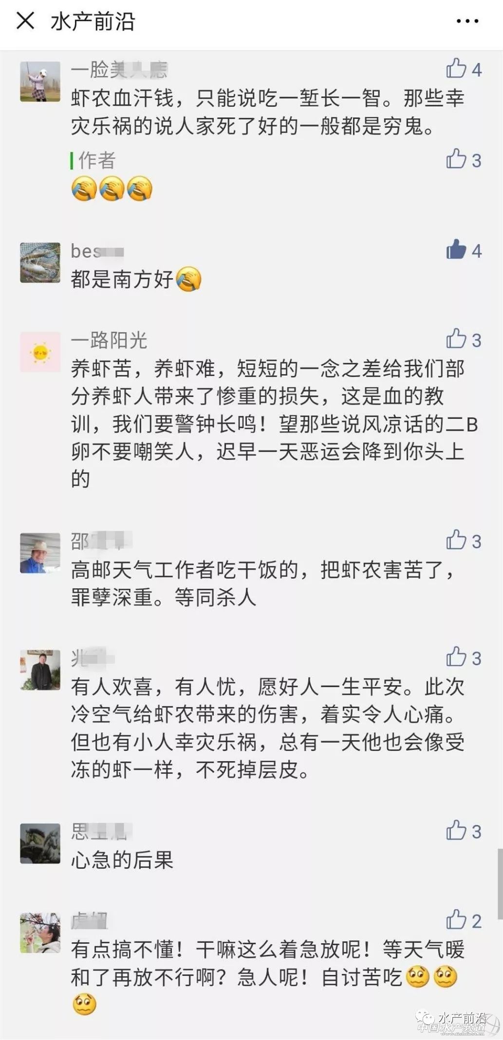 | 中國水產頻道原創報道, 2019年高郵羅氏沼蝦開局不利,對后市影響很大 文/ 水產前沿 李釩 4月底,對于高郵地區的羅氏沼蝦養殖戶來說是一場噩夢,由于冷空氣突然來襲,已經放大水的池塘出現羅蝦大量凍死或凍傷的慘況,受災面積達3萬畝,部分池塘全軍覆沒,養殖戶心急如焚。(具體情況請看之前的報道:損失慘重!冷空氣洗劫高郵,大量羅蝦被凍死或凍傷,3萬畝面積受影響,今年或會缺蝦?)當地相關部門也在開展受災情況統計調查,但目前相關的數據還沒有出來。 雖然現在氣溫已經回暖,但情況卻更加不容樂觀。據江蘇海普瑞飼料有限公司的魏家謙介紹,天氣好轉后,之前受災的池塘死亡量更加嚴重,部分池塘低溫過后死亡率高達90%。 “受災比較嚴重的面積差不多在1.2萬畝,最嚴重的是司徒鎮,百分之九十的養殖戶損失達90%,基本算是全軍覆沒了。有些池塘還有一個多月就可以出頭批蝦了,現在凍死的死,傷的傷,養殖戶損失很大。”魏家謙預計,受此次冷空的影響,高郵羅蝦可能會減產7500噸成品蝦。現在養殖戶處理措施是補苗,但是現在苗普遍比較嫩,補苗的死亡率也比較高。而且今年蝦苗比較緊張,可能無法滿足市場的需求。 如果按減產7500噸成品蝦,平均價格25元/斤計算,直接損失或達到3.75億元。4月30日到5月4日是放大水的高峰期,高郵基本90%已經放了,這個時間放的則沒有什么損失。 以下為部分受災的池塘相片 據悉,高郵的羅蝦鍋爐棚放苗時間是2月中下旬,到4月15日左右,就開始有人陸陸續續放大水了,大家為了搶早蝦賣好價格,并且以為今年天氣偏暖,整體放大水的時間提前。隨后冷空氣來襲,最低溫度只有6攝氏度,池塘水溫只有15度,這已經接近羅蝦的最低生存溫度。尤其是25日放大水的池塘,損失最為慘重,達到60%左右,死亡規格均為3公分以上的大蝦苗。后放的也有30%左右的損失。 5月初天氣開始轉晴,氣溫回升,由于水質的變化和病菌的繁殖,之前凍傷的蝦由于體質很差,也開始陸續出現死亡,養殖戶束手無策。 目前,高郵區域羅蝦養殖面積占全國養殖面積的1/4以上,是全國沼蝦養殖最具代表性的區域。受此輪冷空氣的影響,今年減產已成定局。這與2016年的情況如出一轍,很多蝦放了大水后,由于偏低的溫度,導致凍僵凍傷,甚至傷亡較重,直接導致全年產量上不去,400-500斤/畝,養殖虧本比例大,一年的辛苦白費了。 消息一出,網友也對此事展開了討論,有人認為這是人禍,并非天災,養殖戶過于自信,盲目搶早導致直接的損失。具體的受災情況如何,我們將繼續關注。(后附冷空氣來臨時的相關注意事項) 低溫期如何減少損失 1、不要冒險,盡量等到天氣穩定后再放大水。放大水提前要注意及時掀棚通風,直至夜間全部掀掉薄膜,盡早鍛煉蝦的適應能力; 2、將水位加高,利用水的熱容量來給蝦盡可能的提供保溫作用; 3、適當肥水,肥水的保溫能力強于瘦水2-3℃; 4、往水體中添加可溶性營養源以及富含鈣、鎂等微量元素產品保證藻類營養供給、提高其抗逆性,同時增加對蝦殼的厚度,提高對蝦抵抗力; 5、保證充足的溶氧,潑灑Vc等防應激; 6、寒流前,適當使用改底產品,防止有害物質積累和底部缺氧; 7、低溫期少投料或者不用投料。 寒流過后回溫的處理措施 1、回溫后,加料不宜過快; 2、天氣穩定后,再使用溫和的消毒劑適當消毒,控制病菌的繁殖; 3、外潑維生素A、D、C等多種維生素類和多糖類幫助提高體質,幫助恢復體質,增強免疫力,助進料; 4、可投喂動物餌料(小黃魚、青魚、螺螄肉等)幫助恢復體質; |