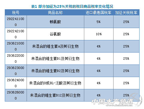 | 中國水產頻道原創報道, 自2019年6月1日0時起,對原產于美國的部分進口商品提高加征關稅稅率 文/ 水產前沿 唐東東 5月13日,國務院關稅稅則委員會發布公告:根據《中華人民共和國對外貿易法》《中華人民共和國進出口關稅條例》等法律法規和國際法基本原則,國務院關稅稅則委員會決定,自2019年6月1日0時起,對原產于美國的部分進口商品提高加征關稅稅率。 其中,對包括賴氨酸、谷氨酸、未混合的維生素A及其衍生物、未混合的維生素B1及其衍生物、未混合的維生素B2及其衍生物、未混合的D或DL-泛酸及其衍生物、未混合的維生素B12及其衍生物等在內的共2493個稅目商品,實施加征25%的關稅;對去殼花生、亞麻子等1078個稅目商品,實施加征20%的關稅;對不適于供人食用的其他動物的肉骨粉、其他不適于供人食用的肉/雜碎的渣粉及團粒、未混合的維生素E及其衍生物、制成的飼料添加劑、其他配制的動物飼料等974個稅目商品,實施加征10%的關稅;對酯膠等595個稅目商品,仍實施加征5%的關稅。 此輪反制清單中,與行業相關的稅目商品主要是部分氨基酸、維生素、肉骨粉、飼用添加劑等。 氨基酸方面:據了解,水產飼料中視原料使用情況及對氨基酸平衡模型的理解,一般會少量添加賴氨酸、蛋氨酸等,極少時候會用到色氨酸、蘇氨酸。相對而言,本輪清單中出現賴氨酸值得關注。但是,沒到影響國內市場供應格局的地步。北京博亞和訊農牧技術有限公司副總經理柳曉峰在“2019中國氨基酸與飼料原料應用研討會”上表示,2018年全球飼用氨基酸(賴氨酸、蛋氨酸、蘇氨酸、色氨酸)總供應量達523.5萬噸,中國飼用氨基酸供應量265.3萬噸,尤其是賴氨酸、蘇氨酸、色氨酸產量大幅增長。目前,中國飼用氨基酸供應量占全球總供應量的比重首次超過一半,達到50.7%。其中,2018年中國賴氨酸出口量同比增長9.8%。可見,飼用氨基酸在中國本土不太缺。秣寶網提供的信息也顯示:5月14日,蛋氨酸市場價格下降至18.5-19.5元/kg;賴氨酸廠家報價穩定,98.5%賴氨酸7.2-7.4元/kg,70%賴氨酸4.2-4.4元/kg;蘇氨酸市場偏于清淡,出現搭售現象。整體而言,國內飼用氨基酸市場行情并沒有隨加征稅率大幅提升而劇烈波動。 維生素方面:秣寶網分析認為,中國是維生素大國。對進口而言,維生素幾乎都沒有美國生產然后進口到中國的,氨基酸也僅有羥基蛋氨酸衍生物部分是美國生產并進口到中國。因此,對中國進口市場而言,除了羥基蛋氨酸衍生物有部分影響之外,其他添加劑包括維生素沒什么影響。就出口來說,美國本土除了生產煙酰胺和煙酸,其他維生素原料都需要依賴進口。中國維生素產量占全球比重75%以上,還有25%是歐洲等國家生產。如果后期對全部維生素產品加關稅,歐洲等國家可能加大對美國的出口,但歐洲對美國出口增加造成本地市場不足的部分仍必須從中國進口。因此這些維生素品種長期看,整體供需還是能夠維持目前的平衡,市場供需格局不會有大的變化。但結構變化過程中會出現市場波動,這其中輿論和信心的影響,很多時候都大于實際的供需格局變化。 肉骨粉:現在應用新趨勢是在水產飼料中大量使用雞肉粉,配合魚溶漿來實現魚粉替代,目前美國雞肉粉的產量約為140萬噸,中國大概進口20萬噸。加征之后,對該品類在國內的銷售會產生一定的影響。 |