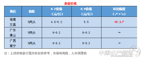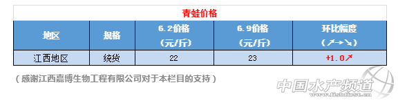 | 中國水產頻道原創報道, 每逢端午節,青蛙價格都會迎來一個小高峰。 文/ 水產前沿 陳曉慶 一周行情簡析 上周,很多養殖戶都把希望寄托在節假日上,但事與愿違,端午和高考并沒能帶動牛蛙價格的上漲。同樣作為網紅品種的小龍蝦,端午節期間卻異常火爆,終于止跌回升,上漲了1~3元/斤。節假日期間牛蛙仍不見漲,養殖戶大呼“看不懂”、“牛蛙價全國最低”。據悉,近期天氣變化不斷導致病蛙較多、禁養清拆不斷養殖戶被迫集中出蛙,才導致了牛蛙價格到了節假日期間也難以回漲。同時也有人認為,蛙價低迷與市場壓價有關。 目前,南方正在經歷入汛以來最大范圍的強降雨天氣,6月7日起,江西吉安縣、永新縣、安福縣等地遭遇暴雨襲擊,突發洪澇災害,大量水產養殖戶受災。 吉安縣一養殖場遭受洪水襲擊,70多畝地的牛蛙一夜之間化為烏有 今日價格行情 牛蛙 6月9日廣東澄海地區牛蛙統貨現金價4.2-4.3元/斤,相比上周下降了0.2元/斤,廣東江門地區7兩頭規格牛蛙報價4.3-4.5元/斤。福建福州今日牛蛙現金價4.1元/斤、欠賬4.8元/斤。江西地區牛蛙報價4.8元/斤,與上周持平。海南文昌7兩頭規格牛蛙報價5.5-6元/斤,相比上周上漲了0.5元/斤。據悉,海南地區的牛蛙養殖戶很少,幾乎都是以零售價賣給當地的餐館和酒店,因此價格要比內地要高很多。廣西南寧地區7兩頭規格牛蛙報價4.3-4.5元/斤,與上周持平。 金浦蛙料養殖效果 青蛙(黑斑蛙) 6月9日青蛙統貨報價23元/斤,相比端午節前上漲了1元/斤。每年的端午節期間,青蛙價格都會迎來一個小高峰,因為此時蛙苗剛入池養殖,年底的囤蛙也消耗殆盡,市場青蛙庫存很少,價格最好。 近期幼蛙開始上岸,養殖戶紛紛在朋友圈中曬出自家青蛙上岸的視頻,幼蛙狀態多數比預期要好,活力滿滿。目前天氣多變,因幼蛙皮膚薄、抵抗力差,極易爆發“腐皮病”,可能造成較大的損失,養殖戶在日常管理中需嚴防此病的發生。 泰國虎紋蛙 6月9日廣東佛山、廣西南寧地區5兩頭規格的泰蛙報價6-6.2元/斤,目前泰蛙存量較少,價格高企。海南文昌5兩頭規格的泰蛙今日報價5.5元/斤,相比上周上漲了0.3元/斤。 |