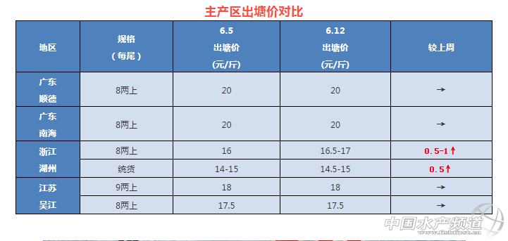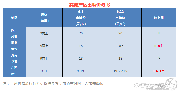 | 中國水產(chǎn)頻道原創(chuàng)報(bào)道, 6月12日各產(chǎn)區(qū)加州鱸最新塘頭報(bào)價(jià) 文/圖 杰大飼料 水產(chǎn)前沿 李曉欣 聯(lián)合發(fā)布 本周受端午節(jié)消費(fèi)拉動(dòng),各產(chǎn)區(qū)加州鱸銷量增加,魚價(jià)穩(wěn)中有升。其中浙江湖州、湖北武漢、廣西南寧加州鱸塘頭價(jià)比上周價(jià)格上漲了0.5-1元/斤不等,其他產(chǎn)區(qū)價(jià)格基本持穩(wěn)。 6月初廣東魚價(jià)猛漲了2元/斤,近期目前魚價(jià)較為穩(wěn)定,8兩上塘頭報(bào)價(jià)20元/斤左右,比去年同期魚價(jià)15.5元/斤高出4.5元/斤,漲勢喜人。近期高溫天氣,塘頭抓魚“硬骨”現(xiàn)象多發(fā),拉魚操作需要非常小心。此外,最近暴雨襲擊江南、華南,建議養(yǎng)戶做好相應(yīng)的魚塘防護(hù)措施,確保養(yǎng)殖收益。 今日各地加州鱸塘頭價(jià)及本周行情分析 廣東順德:今天報(bào)價(jià)8兩上20元/斤左右,6兩上19.3-19.8元/斤左右,現(xiàn)在無論6兩還是8兩上規(guī)格,都是看原塘的大規(guī)格魚比例定價(jià)。順德本地舊魚存塘量很少,近期陸續(xù)有養(yǎng)殖戶安排出魚清塘,但也有因?yàn)橛补菚簳r(shí)出不了魚,近期天氣反復(fù),拉網(wǎng)出魚要非常小心,目前存塘舊魚養(yǎng)殖風(fēng)險(xiǎn)增大,對水質(zhì)要求最大,所以必須加強(qiáng)管理。 廣東南海:今天報(bào)價(jià)8兩上20元/斤左右,6兩上報(bào)價(jià)19.3-19.8元/斤左右,主要看塘魚大規(guī)格魚比例來定價(jià)。6兩上抓起如果大魚比例大,定價(jià)接近8兩上價(jià)格。部分養(yǎng)殖戶選擇清塘后安排分塘過苗,但整體出魚的養(yǎng)殖戶還是不多。 浙江湖州:湖州8兩上報(bào)價(jià)16.5-17元/斤,統(tǒng)貨14.5-15元/斤左右。湖州鱸魚存塘舊魚已經(jīng)很少,流通商到當(dāng)?shù)乩~收不夠有放空風(fēng)險(xiǎn),大多選擇到周家吳江地區(qū)收魚,湖州本地每天出魚量都不大。 江蘇吳江:吳江8兩上加州鱸報(bào)價(jià)17.5元/斤,9兩上18元/斤,魚價(jià)與上周持平。現(xiàn)在吳江整體存塘量仍較大,但大規(guī)格鱸魚較為緊缺。節(jié)后當(dāng)?shù)厥蒸~量有所減小,預(yù)計(jì)短期內(nèi)魚價(jià)以持穩(wěn)為主。 四川成都:今天報(bào)價(jià)9兩上20元/斤,成都區(qū)域老口魚存塘量很少,現(xiàn)在魚價(jià)達(dá)到養(yǎng)戶心理價(jià)位,部分養(yǎng)殖戶想賣老口魚給魚苗定塘,出魚意向較高。 湖北武漢:武漢9兩上鱸魚報(bào)價(jià)18.5元/斤左右,魚價(jià)比上周漲了0.5元/斤,現(xiàn)在湖北本地較為缺魚,受端午銷量增加及高溫外地魚運(yùn)輸損耗較大影響,當(dāng)?shù)佤~價(jià)有所上漲。 湖南華容:今天華容9兩上報(bào)價(jià)18元/斤,價(jià)格與上周持平。目前魚價(jià)當(dāng)?shù)仞B(yǎng)戶出魚積極性較高,但節(jié)后鱸魚走量不大,所以整體出魚量不大。 廣西南寧:南寧1斤上加州鱸報(bào)價(jià)19.5-20.5元/斤,比上周魚價(jià)漲了0.5-1元/斤,主要是受端午銷量增加和廣東魚價(jià)上漲影響。節(jié)后當(dāng)?shù)厥蒸~量有所減少,部分養(yǎng)殖戶認(rèn)為魚價(jià)達(dá)預(yù)期選擇出魚,還有部分養(yǎng)戶仍然觀望待價(jià)。 |