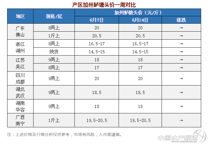 | 中國水產頻道原創報道, 養好魚,更要賣好魚! 加州鱸行情周報 《鱖鱸前沿》與您相約每周五 文/圖 鱖鱸前沿 李曉欣 今年5月份到6月初,廣東領銜全國上演了一輪又一輪加州鱸價格的上漲潮,本周各產區魚價迎來了“火箭”般飆升后的平靜。 今天廣東8兩上加州鱸塘頭報價20元/斤左右,相比去年同期價格15.5元/斤高了4.5元/斤,目前這個價格持穩了8天。據當地養戶和魚中介紹,現在存塘舊魚較多的沙頭區域養戶依然多在待價惜售,整體出魚量不大,加上廣東同規格魚價比江蘇高了2元/斤,不少流通商選擇從江蘇調魚供應廣東市場,本地魚中到塘頭的收魚量比之前減少了很多,一塘魚分幾天抓。 對于后市行情,有觀點認為前期魚價升得太猛,現在市場有點銷不動,預計接下來魚價上漲速度會變緩;也有觀點認為,接下來高溫期出魚難度大,會拉動魚價上漲,依然看好后市行情。對于今年魚價的最高位,大家也有不同的觀點,你怎么看? 廣東佛山 本周佛山魚價維持在8兩上20元/斤左右,1斤上20.5元/斤,實際成交價看8兩上比例和質量而定。順德區域舊魚存塘不多,少部分養戶在清塘出魚,南海沙頭區域達上市規格魚的存塘較多,但當地養戶出魚積極性不高,整體出魚量不大,部分流通商選擇到江蘇地區拉魚。近期高溫出魚容易“硬骨”,且養殖病害風險增多,建議養戶提前做好預防措施。 浙江湖州 湖州魚價一周維穩,8兩上16.5-17元/斤,統貨報價14.5-15/斤。現在湖州存塘舊魚已經很少,每天出魚量都不大,由于流通商到湖州地區拉魚收不夠有放空風險,大多選擇到江蘇吳江地區拉魚。 江蘇吳江 現在吳江整體存塘量仍較大,但大規格鱸魚較為緊缺。本周8兩上鱸魚維持在17元/斤,8兩半17.5元/斤,9兩上18元/斤。節后收魚量有所減少,預計短期內魚價以持穩為主。 四川成都 成都區域老口鱸魚存塘已經不多,今天9兩上報價20元/斤左右,這個價格已經維持了20多天。現在魚價達養戶心理價位,部分養戶準備給新魚苗分塘、過塘,出魚積極性較高。 湖北武漢 本周武漢9兩上鱸魚持穩在18.5元/斤左右,湖北本地較為缺魚,部分流通商到江蘇地區拉魚供應市場,預計接下來魚價以持穩為主。 湖南華容 今天華容9兩上鱸魚報價18元/斤,目前魚價持穩了半個月,節后當地鱸魚走量不大,預計短期內魚價波動不大。 廣西南寧 本周南寧1斤上加州鱸維持在19.5-20.5元/斤,目前魚價已達當地部分養戶心理預期,出魚積極性有所提升,還有部分養戶選擇繼續觀望待價。 |