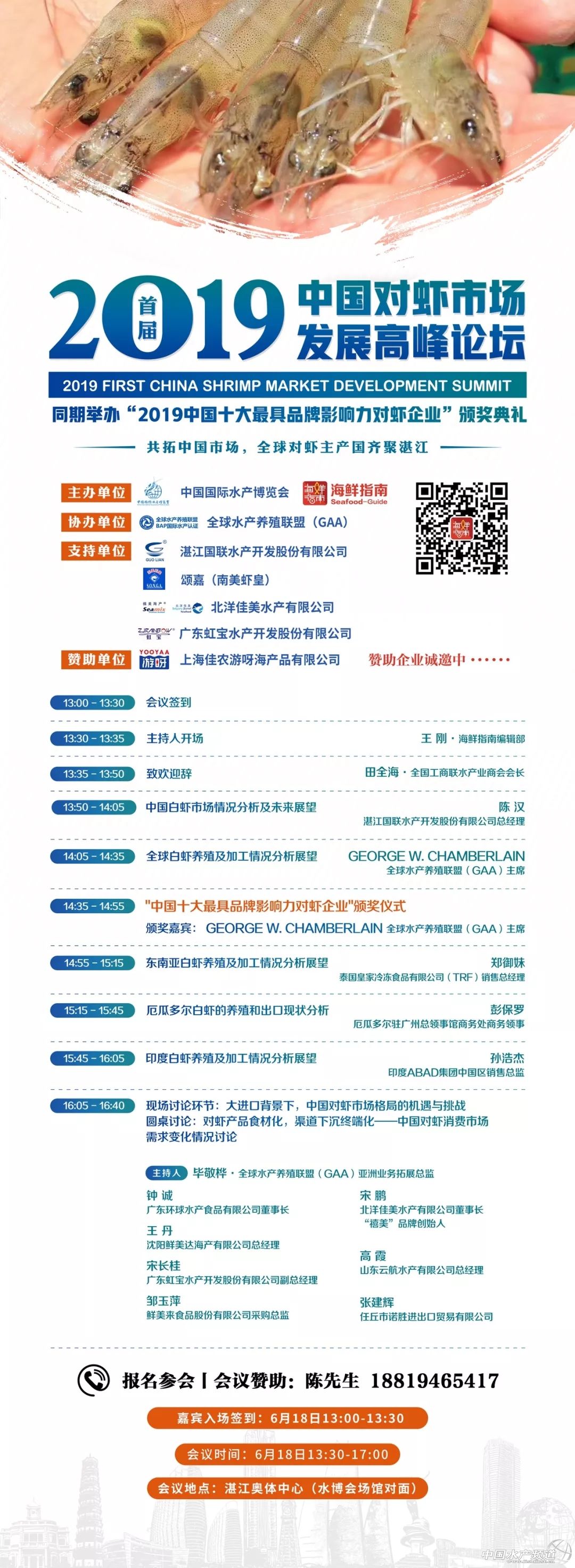 | 中國水產(chǎn)頻道報道, 策劃/主辦 中國國際水產(chǎn)博覽會組委會、海鮮指南(seafood-guide) 編輯部 2019首屆中國對蝦市場發(fā)展高峰論壇 共拓中國市場,全球?qū)ξr主產(chǎn)國齊聚湛江 6月18日·中國湛江·奧林匹克體育中心 6月18日,中國·湛江,由中國國際水產(chǎn)博覽會組委會、《海鮮指南》編輯部共同主辦的 “2019首屆中國對蝦市場發(fā)展高峰論壇”即將盛大開啟! 全球?qū)ξr產(chǎn)量正處于穩(wěn)步增長時期,預計2019年全球?qū)ξr產(chǎn)量將達到475萬噸,年均增長率達到5.7%。到2020年,全球?qū)ξr產(chǎn)量將突破500萬噸,世界對蝦產(chǎn)地和消費市場的新格局正在形成。 同時,經(jīng)過多年消費市場的發(fā)展,中國已經(jīng)是全球第一大對蝦消費國,蝦產(chǎn)品的凈進口國。更重要的是,中國新一代消費群體的壯大,讓蝦產(chǎn)品在中國的需求量具有無限想象空間。厄瓜多爾、越南、印度、泰國、印尼、馬來西亞、沙特、秘魯?shù)葘ξr主產(chǎn)國紛紛發(fā)力中國市場。越來越多形式新穎、品牌多樣的蝦產(chǎn)品通過各種渠道來到中國市場。 湛江,中國對蝦之都,中國對蝦深加工產(chǎn)業(yè)的聚集地。這里有全國最集中的對蝦加工廠,規(guī)模排名前列的對蝦進口商和經(jīng)銷商。從出口到內(nèi)銷、從資源型到渠道型,傳統(tǒng)的國內(nèi)對蝦企業(yè)正處于產(chǎn)業(yè)的轉折點。 正是在全球?qū)ξr市場風起云涌和中國對蝦消費機遇涌現(xiàn)的大背景下,我們6月18日在湛江籌備了“2019首屆中國對蝦市場發(fā)展高峰論壇”。邀請全球蝦產(chǎn)業(yè)代表齊聚湛江,共話產(chǎn)業(yè)發(fā)展的挑戰(zhàn)與機遇。 峰會將定向邀請來自全球蝦產(chǎn)品主產(chǎn)國的企業(yè)代表、供應商、進口商、經(jīng)銷商、知名餐飲企業(yè)采購、商超和電商新渠道采購代表、協(xié)會機構、政府海關等行業(yè)代表共聚一堂,深入分析目前全球各大產(chǎn)區(qū)蝦產(chǎn)業(yè)現(xiàn)狀,養(yǎng)殖端和消費端發(fā)展情況,對蝦行業(yè)的新增長點等眾多行業(yè)關注話題。 共拓中國市場,全球?qū)ξr主產(chǎn)國齊聚湛江!我們期待您的加入。 會議時間 6月18日 13:00-17:00 會議地點 湛江奧林匹克體育中心 主辦單位 中國國際水產(chǎn)博覽會組委會、《海鮮指南》編輯部 會議規(guī)模 300人 參會人員 本次會議采用邀請制和主動報名相結合的形式。參會人員涵蓋全球6大對蝦主產(chǎn)國的企業(yè)代表、供應商代表、中國市場進口商、知名餐飲企業(yè)采購、商超和電商新渠道采購代表、協(xié)會機構、政府海關等行業(yè)代表。 合作媒體 水產(chǎn)前沿 農(nóng)牧前沿 工業(yè)化水產(chǎn)圈 紅餐網(wǎng) (更多媒體誠邀中) 會議議程 部分擬邀單位(排名不分先后) 南美蝦皇 王牌 老船長 皇冠 Empagran 藍泰 歐瑪莎 桑塔 康菲瑪 帆船 鉆石 Luna 沙特國家水產(chǎn)養(yǎng)殖集團 秘魯ECO-ACUICOLA S.A.C 泰國利興冷凍食品 泰國皇家食品有限公司 越南明富 馬來西亞必樂鮮 湛江國聯(lián)水產(chǎn)開發(fā)股份有限公司 恒興集團 廣東虹寶水產(chǎn)開發(fā)股份有限公司 湛江港洋水產(chǎn)有限公司 福建海魂水產(chǎn)有限公司 通威集團 武漢三良集團有限公司 諾勝國際 良品行(上海)供應鏈服務有限公司 廣東環(huán)球水產(chǎn)食品有限公司 福清朝輝水產(chǎn)食品有限公司 茂名新洲海產(chǎn)有限公司 北海洪昌水產(chǎn)有限公司 北海宏遠水產(chǎn)食品有限公司 北海宏泰水產(chǎn)有限公司 北海寬利水產(chǎn)有限公司 湛江龍威水產(chǎn)實業(yè)有限公司 亞洲海產(chǎn)(湛江)有限公司 濟南大平水產(chǎn) 浙江藍雪食品有限公司 上海迎浩緣貿(mào)易有限公司 沈陽鮮美達海產(chǎn)有限公司 山東云航貿(mào)易有限公司 浙江大洋水產(chǎn)有限公司 廣東金航食品有限公司 北京優(yōu)頂特貿(mào)易有限公司 華廚聯(lián)盟 瀚通食品有限公司 武漢鮮美達供應鏈有限公司 青島怡雅菲進出口有限公司 北京二商集團有限責任公司 順景發(fā)集團 上海海天下食品有限公司 上海卜蜂貿(mào)易有限公司 成都裕隆達商貿(mào)有限公司 正大食品企業(yè)(上海)有限公司 青島美廚食品有限公司 山東海運國際貿(mào)易有限公司 泉州宏城水產(chǎn) 國藥嘉遠(北京)貿(mào)易有限公司 福建宏升兄弟 廣州鴻煒鮮水產(chǎn)有限公司 青島盛世海豐貿(mào)易有限公司 青島米洛克 青島東海永旺貿(mào)易有限公司 渤海水產(chǎn)有限責任公司 唐山曹妃甸惠通水產(chǎn)科技有限公司 青島國星食品股份有限公司 極鮮網(wǎng) 青島愛源食品有限公司 湛江恒興水產(chǎn)科技有限公司 湛江東洸水產(chǎn)有限公司 廣東君海水產(chǎn)股份有限公司 廣東國美水產(chǎn)食品有限公司 湛江市海岸水產(chǎn)有限公司 湛江市和鑫水產(chǎn)有限公司 湛江恒發(fā)水產(chǎn)有限公司 亞洲海產(chǎn)(湛江)有限公司 湛江市海魂水產(chǎn)有限公司 廣東佰大科技股份有限公司 廣東環(huán)球水產(chǎn)食品有限公司 湛江昌泰食品有限公司 湛江龍威水產(chǎn)實業(yè)有限公司 廣東海豐水產(chǎn)有限公司 品先(湛江)水產(chǎn)有限公司 山東國鵬水產(chǎn)有限公司 廣東泰聯(lián)海洋食品有限公司 泰國金海源國際漁業(yè)有限公司 泰國裕寧冷凍食品有限公司 泰國興富水產(ch