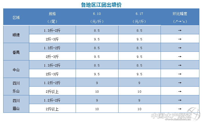 | 中國水產(chǎn)頻道原創(chuàng)報道, 文/圖 何氏水產(chǎn)、水產(chǎn)前沿 李靜 江團 1、廣東江團本周價格與上周繼續(xù)保持一樣,小魚還是8.5元/斤,中魚9.5元/斤,超大魚還是7元/斤。目前江團存塘量越來越少,銷量也有所下降。部分流通商去廣西拉魚,但廣西產(chǎn)區(qū)的江團比廣東產(chǎn)區(qū)的要耐養(yǎng),價格也相對要比廣東產(chǎn)區(qū)的要貴一些。 2、本周四川江團大小魚價格與上周持平,小魚還是9元/斤,大魚還是10元/斤,現(xiàn)在當?shù)乜傮w銷量不大,價格或?qū)⒈3址(wěn)定,銷量與上周也差不多。 |