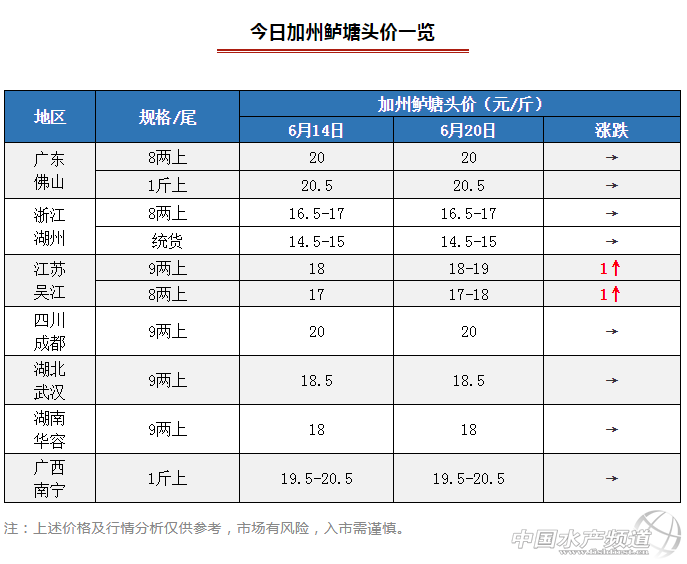 | 中國水產(chǎn)頻道原創(chuàng)報(bào)道, 各地魚價(jià)持穩(wěn)了8-21天不等,此次江蘇率先打破僵局,會否帶動又一波漲價(jià)潮? 文/圖 鱖鱸前沿 李曉欣 “8兩上18元/斤,9兩上19元/斤,今天裝了7萬多斤魚。”吳江當(dāng)?shù)啬臣又蓣|魚中說到。從吳江當(dāng)?shù)仞B(yǎng)殖戶和魚中獲悉,今天吳江各規(guī)格加州鱸塘頭價(jià)上漲了1元/斤,8兩上報(bào)價(jià)17-18元/斤,9兩上18-19元/斤。 視頻:吳江一加州鱸魚塘今天出魚15000多斤,9兩上19元/斤 “發(fā)往北方的大魚不多了,估計(jì)月底就差不多出完了,1.2-1.3斤的魚頭還多。”據(jù)介紹,目前吳江當(dāng)?shù)卮笠?guī)格鱸魚緊缺,北京、天津等北方市場訂單需求得不到滿足,收購商為刺激養(yǎng)戶出魚而上調(diào)了魚價(jià)。 據(jù)鱖鱸前沿平臺對加州鱸價(jià)格的監(jiān)測,去年同期吳江9兩上鱸魚塘頭價(jià)為15元/斤,目前魚價(jià)同比去年高出3-4元/斤。為減少成魚存塘壓力,同時(shí)騰空池塘給魚苗分塘,近期當(dāng)?shù)仞B(yǎng)戶出魚意愿較高。 今年5月份到6月初,全國加州鱸塘頭價(jià)經(jīng)歷了一波又一波上漲潮,上周開始各地魚價(jià)進(jìn)入了平穩(wěn)期,持穩(wěn)了8-21天不等。據(jù)了解,今天除江蘇魚價(jià)有所上漲外,其他產(chǎn)區(qū)魚價(jià)依然保持不變。此次江蘇率先打破持穩(wěn)僵局,會否帶動又一波漲價(jià)潮?鱖鱸前沿平臺將密切保持關(guān)注。 |