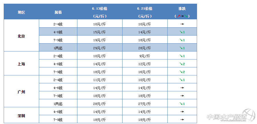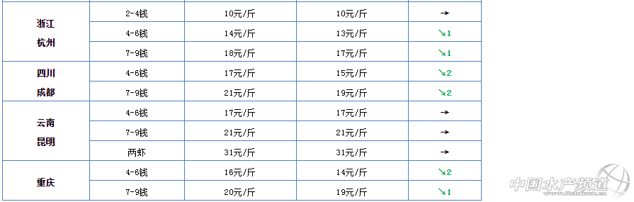 文/ 水產前沿 鄭鵬飛 中國水產頻道原創(chuàng)報道,據(jù)了解,最近兩天各地的小龍蝦行情出現(xiàn)全面下跌,個別地區(qū)一天下滑了6元/斤。在2018年世界杯的帶動下小龍蝦行情一路直線上升,批發(fā)價長期居高不下,很多養(yǎng)殖戶也是狠狠地賺了一把。正如之前人們所擔心的,養(yǎng)殖小龍蝦也是有著很大的風險。在各方面成本大幅上升,養(yǎng)殖規(guī)模大幅增加的情況下,一旦收購商對小龍蝦收購的能力不能足夠提升,那么2019年必定是小龍蝦的崩盤年。 今天,湖北荊州部分市場4-9錢的小龍蝦只賣到8元/斤。行情暴跌,有人收了幾百斤的蝦又放了回去。養(yǎng)殖戶表示不賣了,讓你跌,大不了不下籠子。還有人留了幾百斤蝦放筐里沒動,表示留著自己吃算了,反正明天不下籠了,漲不漲無所謂。 小龍蝦主產區(qū)市場批發(fā)價 湖北省 安徽省 江蘇省 湖南省 其它產區(qū) 備注:目前的報價主要以紅殼小龍蝦為主,一般情況下相同規(guī)格的青殼小龍蝦相對紅殼的便宜1-2元/斤。 主要消費市場批發(fā)價 |