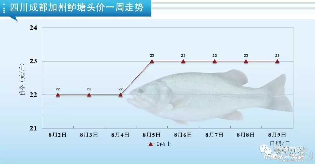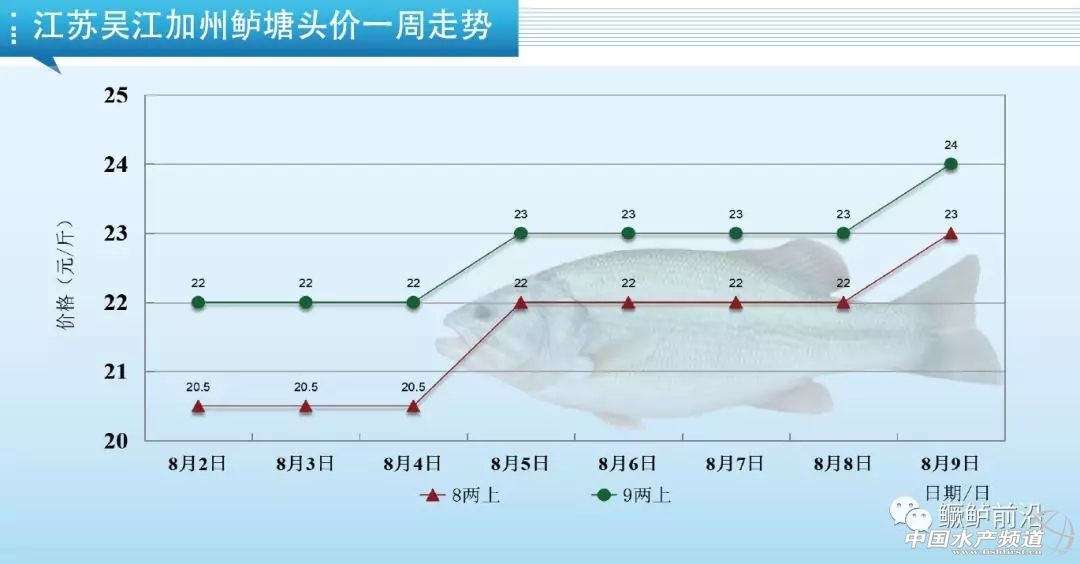 中國水產頻道原創報道, 養好魚,更要賣好魚! 加州鱸行情周報 《鱖鱸前沿》與您相約每周五 文/圖 鱖鱸前沿 李曉欣 一周熱點 1、本周產區加州鱸上漲勢頭依然強勁。受全國存塘舊魚不足影響,市場上偏大規格魚缺貨嚴重,本周廣東、江蘇、四川、湖南、廣西鱸魚塘頭價紛紛上漲,漲幅達0.5-2.5元/斤不等。其中廣東佛山8兩上今天報價22-23元/斤,同比去年同期價格17元/斤高了5-6元/斤;江蘇鱸魚一周上漲2-2.5元/斤,今天8兩上報價23元/斤,9兩上24元/斤,魚價領跑全國。目前全國老口鱸魚存塘已經很少,而新魚還未能大量上市,預計市場將會青黃不接,后市行情看好。 2、除了魚價大漲,近期珠三角加州鱸飼料在短短十余天下降了600元/噸(12元/包),對于養殖戶來說無疑是雙喜臨門。前天(7日),海大集團旗下子公司珠海海龍、珠海容川、廣州容川同步發布降價信息,稱從8月8號凌晨開始,對加州鱸全系列飼料降價300元/噸。此前,7月26日,海大集團子公司珠海海龍、廣州容川也率先發布了“從7月27號凌晨開始,對廣東市場加州鱸全系列飼料降價300元/噸”的降價通知。海大兩次率先降價均在珠三角掀起了加州鱸飼料降價潮,佛山杰大、順德旺海等十幾家珠三角主流加州鱸料企陸續發布了下調通知。 業內人士提醒,加州鱸料降價會促進料企間的優勝劣汰,一些在配方上沒有核心技術的料企將被淘汰出局,但同時可能會引起一些品牌料質量下滑的問題,建議養殖戶要睜大眼睛,留意養殖效果。 3、據中國天氣網消息,今年第9號臺風“利奇馬”(超強臺風級)預計將于明日(10日)凌晨到上午在浙江象山到蒼南一帶沿海登陸,最大可能在浙江臺州到樂清一帶沿海登陸,強度為強臺風級或超強臺風級(14~16級,45~52米/秒),是今年來登陸我國最強的臺風,今天早晨中央氣象臺已發布今年首個臺風紅色預警,將影響我國東部沿海等10余省市,建議養殖戶提前做好池塘管理和臺風防御措施。 廣東佛山 本周佛山加州鱸價2次上調,漲幅1.5-2元/斤,今天8兩上舊魚報價22-23元/斤,個別塘口開價23元/斤,現在舊魚主要集中在南海沙頭區域,但存塘已不足2成。新魚價格看規格比例和魚頭大小而定,由于魚價較為理想,近期陸續有新魚上市,但總體量不大。 浙江湖州 本周湖州統貨維持在17-18元/斤左右,當地嚴重缺魚,基本很少出魚。 江蘇吳江 本周吳江鱸魚塘頭價2次上調,今天8兩上報價23元/斤,比上周漲了2.5元/斤;9兩上報價24元/斤,比上周漲了2元/斤。吳江老口鱸魚預計還有10多天就清完,而新魚9月底才能少量上市,后市或將出現斷貨情況。 四川成都 成都市場老口鱸魚緊缺,本周魚價上漲了1元/斤,今天9兩上鱸魚報價23元/斤左右,當地新魚還未達上市規格。 湖北武漢 武漢當地存魚不多,流通商多到華容拉魚,但近期從華容拉魚受損較多,收魚積極性下降,本周武漢魚價一周企穩,9兩上報價21元/斤左右。受存塘魚不足及江蘇、湖南魚價上漲影響,武漢魚價或有上升空間。 湖南華容 今天華容9兩上鱸魚報價21.5-22元/斤,相比上周價格21-21.5元/斤上漲了0.5元/斤,近期華容出魚損耗較多,養戶出魚積極性下降,流通商為滿足市場需求上調了收魚價格。 廣西南寧 南寧魚價企穩了將近兩個月,這兩天價格終于迎來上漲,今天1斤上報價21-22元/斤左右,相比上周價格漲了1.5元/斤,主要是受廣東魚價上漲和當地存魚不多影響。 【關鍵字】:加州鱸 塘頭報價 水產養殖 |