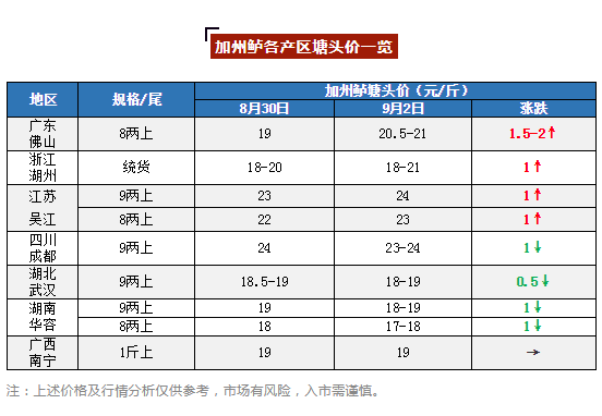 | 中國水產(chǎn)頻道原創(chuàng)報道, 9月2日加州鱸產(chǎn)區(qū)塘頭價格與行情 文/圖 鱖鱸前沿 李曉欣 8月下旬,廣東加州鱸塘頭價動蕩下跌,從高位25元/斤一路跌至18.5-19元/斤,降幅高達6-6.5元/斤,跌幅之大讓部分養(yǎng)殖戶有點恐慌出魚,正當大家以為加州鱸后市行情呈下行態(tài)勢時,魚價卻逆轉(zhuǎn)局勢,從8月30日至今不斷傳來回漲消息,目前塘頭報價較亂,今天8兩上舊魚報價20.5-21元/斤左右,近幾天魚價回漲了1.5-2元/斤。 據(jù)悉,此次魚價持續(xù)回漲,一方面是江浙、湖北、四川等產(chǎn)區(qū)老口鱸魚已經(jīng)基本清完,水車回流到廣東收魚增多;另一方面,雖然現(xiàn)在有部分新魚能上市,但魚頭以1.1-1.2斤為主,大規(guī)格魚不多,目前市場上大規(guī)格魚仍較為緊缺。 受廣東魚價回漲影響,江浙兩地魚價也有所上升,而四川、湖北、湖南市場受廣東魚沖擊,本地魚價有所下調(diào)。現(xiàn)正值臺風季,部分產(chǎn)區(qū)多大風暴雨天氣,建議養(yǎng)戶做好相應(yīng)魚塘管理措施,同時理性看待魚價走勢,根據(jù)自身情況合理安排出魚時機,確保養(yǎng)殖收益。 加州鱸產(chǎn)區(qū)行情簡析 廣東佛山:佛山加州鱸塘頭報價較亂,今天舊魚8兩上報價20.5-21元/斤左右,新魚價格看魚頭大小和規(guī)格比例有所浮動。近期外省水車到廣東收魚增多,行情回暖,魚價回漲了1.5-2元/斤。 浙江湖州:湖州基本很少出魚,統(tǒng)貨報價18-21元/斤,相比30日報價漲了1元/斤,主要是受廣東和江蘇魚價回暖影響。 江蘇吳江:吳江本地老口鱸魚已經(jīng)基本清完,流通商多到廣東區(qū)域拉魚,今天報價8兩上23元/斤,9兩上24元/斤,比30日價格上漲了1元/斤,主要是受廣東魚價回漲影響。 四川成都:成都9兩上鱸魚今天報價23-24元/斤,相比30日價格下跌了1元/斤,當?shù)乩峡邝|魚即將清完,部分流通商到廣東拉魚回本地市場。 湖北武漢:今天武漢9兩上報價18-19元/斤,比30日價格下跌了0.5元/斤,流通商多到廣東區(qū)域收魚。 湖南華容:華容今天8兩上起抓17-18元/斤左右,9兩上18-19元/斤,魚價下跌了1元/斤,當?shù)卮骠~量已經(jīng)很少。 廣西南寧:南寧本地老口鱸魚已經(jīng)不多,部分水車到廣東收魚,今天1斤上加州鱸報價19元/斤左右。 |