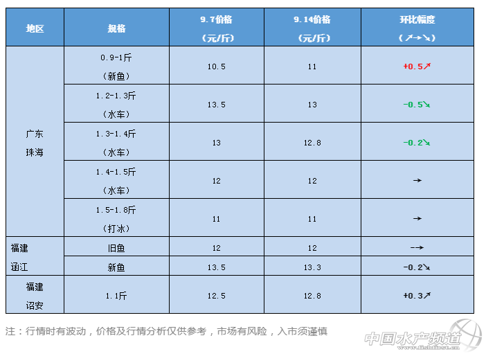| 中國水產頻道原創報道, 文/ 水產前沿 陳曉慶 全新的海鱸行情周報正式開啟,每周與您相約,歡迎各位讀者交流看法與建議,提供更多地區價格行情,讓信息更暢通,讓每個人都能養好魚、賣好魚! 一周行情簡析 珠海海鱸:本周海鱸新魚價格繼續高漲,出魚量增多,舊魚價格輕微下滑。0.9到1斤的海鱸新魚價格11元/斤,相比上周上升了0.5元/斤,舊魚1.2-1.3斤價格13元/斤,相比上周下跌了0.5元/斤,1.3-1.4斤的舊魚價格12.8元/斤,相比上周下降了0.2元/斤。中大規格的舊魚目前價格平穩,1.4-1.6斤價格12元/斤,1.7-1.9斤價格11元/斤,與上周持平。 由于同等規格的海鱸新魚、舊魚價格差距大,因此收購商多數更青睞新魚,需求量增大,價格上漲,反之舊魚由于新魚的沖擊,需求減少,價格有所下滑。據悉,海鱸新魚舊魚的價格還將繼續拉近,當價格差距在1塊錢左右時才會到達平衡,同漲同跌。 今年新魚存塘較少,加上正處于雙節期間,海鱸價格預計還將繼續處于高價位。 圖片來自網絡 今日海鱸報價 海鱸美食 秋天已經來臨,早晚溫差開始變大,這個時候,經過了一個夏天酷暑的消耗,身體要適當進步營養,海鱸魚是非常不錯的選擇。海鱸自古以來深愛大眾喜愛,它不僅味道鮮美,且營養價值極高。下面跟大家分享一道“蔥油鱸魚”的做法!(來源:白蕉海鱸) 蔥油鱸魚 食材:紅椒絲;鱸魚1條;蔥花;姜絲;鹽少許;雞精少許;蒸魚豉油或美極鮮味汁;料酒 做法: 1、 鱸魚清洗干凈后,在魚身兩面各劃3刀,抹少許鹽及雞精腌制10分鐘,再均勻倒入1湯匙料酒。 2、 放入適量豬油,鋪上姜絲,入開水鍋中大火蒸5分鐘,取出撒上蔥花。 |