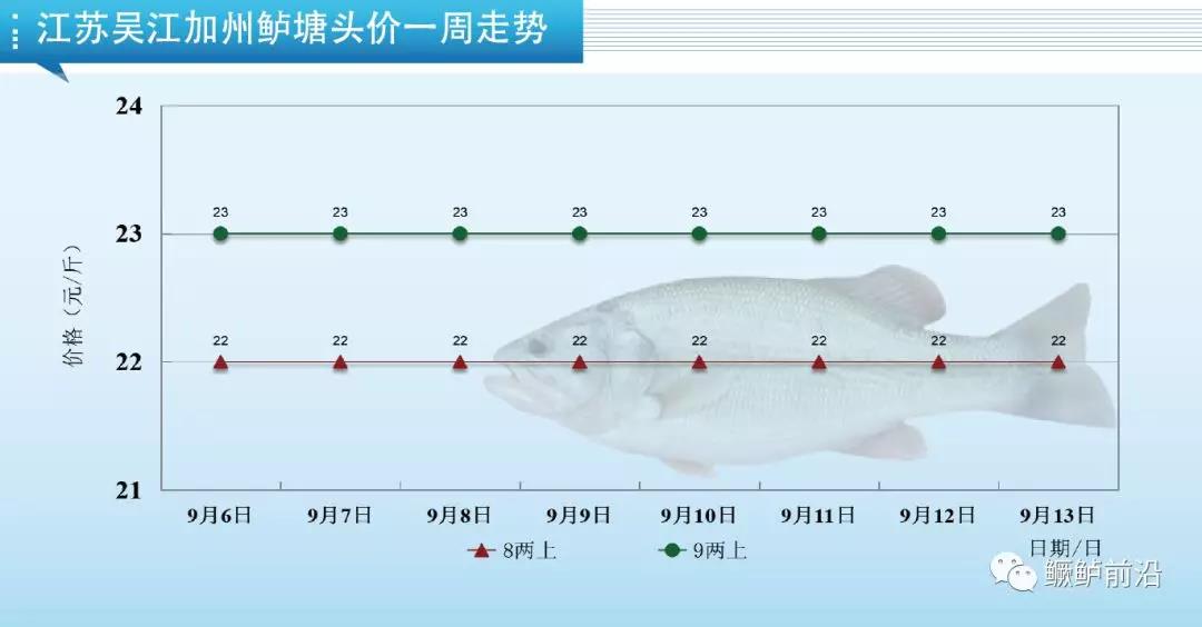 文/圖 鱖鱸前沿 李曉欣 中國水產頻道原創報道,本周中秋節后,各地加州鱸銷量逐漸恢復正常,但由于各加州鱸產區的存塘舊魚已經基本清空,而新魚上市除了廣東有一定的量,其他地區上市量很少,所以魚價整體呈穩中有升態勢。 現在廣東老口鱸魚已經基本清完,新魚陸續上市,但量不大,魚頭多以1.2-1.3斤為主,市場上大規格魚緊缺,近期外省舊魚陸續清空后,流通商南下廣東收魚增多,爽市之下魚價一周上漲了0.5-1.5元/斤不等;四川成都受廣東上漲影響,今天魚價也回漲了1元/斤;其他產區價格以企穩為主。 再過10天就是國慶黃金假期了,不少養殖戶期盼著魚價上漲,按照往年行情規律,國慶之后隨著新魚上市量逐漸增大,魚價將逐漸回落,建議養殖戶根據自身情況合理選擇出魚時機,確保養殖收益。 廣東佛山 佛山舊魚已經基本清空,新魚塘頭報價較亂,今天6兩上報價15.5-16.5元/斤左右,7兩上16.5-18.5元/斤左右,8兩上19-22元/斤左右,實際定價看魚頭大小和規格比例有所浮動。受市場大魚緊缺和外省水車來廣收魚增多影響,本周佛山魚價多次上調。 浙江湖州 本周湖州統貨價格維持在17-20元/斤左右,當地有個別新魚上市,塘頭報價較亂,預計10月中旬新魚才大批量上市。 江蘇吳江 吳江8兩上鱸魚報價21-22元/斤,9兩上報價22-23元/斤,一周價格企穩。吳江本地已經沒有老口魚了,有個別新魚陸續上市,流通商多到廣東收魚。 四川成都 今天成都9兩上鱸魚報價21元/斤,相比上周價格漲了1元/斤,主要是受廣東魚價上漲影響,當地新魚陸續上市。 湖北武漢 本周武漢9兩上魚價維持在20元/斤左右,武漢老口鱸魚基本清空,新魚僅有少量上市,流通商多到廣東收魚供應市場。 湖南華容 華容魚價一周企穩,8兩上報價19元/斤,9兩上20元/斤,當地老口鱸魚已經基本清完,新魚預計要到國慶才有少量上市。 廣西南寧 南寧1斤上魚價維持在19-20元/斤,南寧本地老口鱸魚已經不多,新魚大部分也未達上市規格,流通商多到廣東收魚。 產區加州鱸塘頭價一周對比
