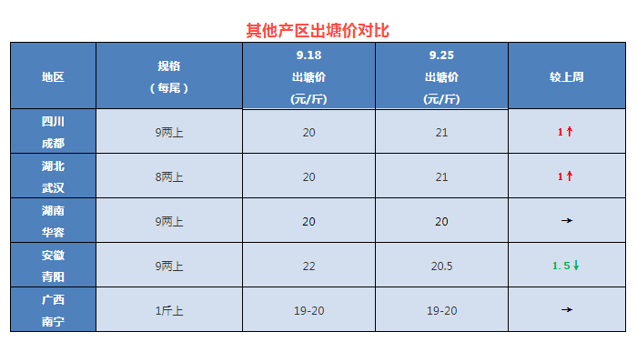 | 中國水產頻道原創報道, 各產區加州鱸最新塘頭報價與行情一周簡析 文/圖 杰大飼料 水產前沿 李曉欣 聯合發布 隨著各地加州鱸舊魚陸續清空,而新魚上市量少且規格較小,全國再度陷入大魚緊缺的態勢,魚價依然高企。 本周廣東佛山魚價相比上周略有波動,6兩上15-16.5元/斤,7兩上16-18元/斤左右,實際定價看魚頭大小和整塘魚規格比例,塘頭報價較亂;受上周廣東魚價上升影響,本周四川成都、湖北武漢兩地魚價均上漲了1元/斤;而安徽青陽魚價一周下跌了1.5元/斤,9兩上報價20.5元/斤,主要是受吳江新魚開始上市影響。 再過5天就是國慶假期了,預計接下來幾天市場銷量將會有所增加,不少養殖戶期盼魚價能夠上漲,但也有養殖戶擔心國慶前后新魚上市量將增加,對魚價或有一定程度沖擊。業者建議,養殖戶應理性看待魚價走勢,根據自身養殖情況合理選擇出魚時機,確保養殖收益。 今日各地加州鱸塘頭價及本周行情分析 廣東順徳:今天報價6兩上15-16.5元/斤,7兩上16-18元/斤左右,本周塘頭定價依然比較亂,沒有統一標準,主要按魚頭大小發價。現在大規格魚特別新魚8兩上受市場歡迎,但魚頭和上車規格要求比較嚴格,本周據說最高8兩上起抓能發到22元/斤。隨著氣溫的降低,部分地區本周出魚的人比上周明顯增多。臨近國慶長假,本周外省魚車進入廣東收魚依然比較多,對收魚量有一定的拉動作用,對魚價也有一定的利好。 廣東南海:今天報價6兩上15-16.5元/斤,7兩上16-18元/斤左右,實際塘頭發價看圍魚魚頭大小及整塘魚大小規格比例不同有一定的浮動。本周大規格魚特別是8兩上較少,所以比較受市場歡迎,魚價也比較理想,但目前市場上依然以出6-7兩上規格魚為主。 浙江湖州:湖州有少量新魚陸續上市,以統貨規格出魚為主,價格主要看炮頭大小和8兩上成數而定。由于上市量少,目前塘頭定價較亂,沒有統一的標準,統貨價格在17-20元/斤左右,預計要到10月中旬新魚才大批量上市。 江蘇吳江:本周吳江8兩上魚價維持在21-22元/斤,9兩上22-23元/斤,吳江老口魚已經基本清完,有少量新魚開始上市,以出統貨為主,價格看炮頭大小和8兩上成數而定。 四川成都:今天報價9兩上21元/斤,魚價比上周價格上漲了1元/斤,主要是受廣東魚價影響,加上臨近國慶,商品魚需求比較大,但當地新魚上市不多,所以對魚價有一定的拉升。 湖北武漢:武漢鱸魚8兩上起抓21元/斤,相比上周價格上漲了1元/斤,9兩上報價20元/斤左右,當地能上市的魚非常少,流通商多到周邊城市收魚供應市場。 湖南華容:華容老口鱸魚已經基本清完,本周有新魚上市,但量很少,魚價一周持穩,8兩上19元/斤,9兩上20元/斤。 安徽青陽:青陽今天9兩上報價20.5元/斤,相比上周下跌了1.5元/斤,主要是受吳江新魚上市影響。國慶將至養戶出魚積極性提高,每天保持6000-8000斤的出魚量,預計國慶老口將基本出光,而新魚上市估計還有一月左右。 廣西南寧:南寧魚價一周持穩,1斤上報價19-20元/斤左右。當地老口存塘已經很少,新魚達上市規格的也不多,流通商多到廣東收魚。 |