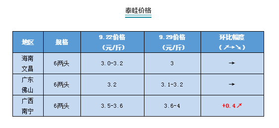 | 中國水產頻道原創報道, 本周牛蛙、黑斑蛙、泰蛙最新行情報價 文/ 水產前沿 陳曉慶 一周行情簡析 牛蛙 本周牛蛙價格經歷了兩次跌價,周一整體下跌2到4毛,周末牛蛙再次跌價2到3毛。今日福建福州牛蛙現金價4.8元/斤,欠賬5.3元/斤,海南文昌8兩頭4.2-4.4元/斤,相比上周下降了0.2元/斤;江西地區4.6-4.7元/斤,廣西南寧8兩頭4.4-4.5元/斤,廣東佛山8兩頭4.4-4.5元/斤,相比上周下降了0.5元/斤。 目前牛蛙銷售困難,且產量又比較大,價格低迷,廣西養殖戶多數選擇自己拉蛙到南寧、柳州批發市場上賣。有業內人士認為,在目前市場需求一定的情況下,養殖戶主動把蛙拉到市場上賣,會拉低了收蛙商價格,檔口多數會選擇價格更低的蛙,進一步加重整體蛙價的下跌。正常情況下國慶期間市場銷量有所增長,價格還有回升的余地,但還是要看廣西蛙的存量,除非廣西的蛙大量減少,否則蛙價還是難以回升。 近期牛蛙腸胃炎“爛大腸”等問題較為嚴重,牛蛙表現活力低下、后腿無力、停止進食,身體出現腫脹,部分后腿內側出現紅色血斑點。經解剖大量體液伴隨血液溢出,腸道處大量氣泡或是大量粘稠液體未見飼料殘渣,嚴重者腸道尾段潰爛糜爛,大腸不成形! 經分析主要是由于水質環境差、喂料習慣不固定且喂料過猛、高溫牛蛙肝臟負荷大、平常缺乏保健措施、過度使用非專業藥物,牛蛙肝臟腸胃機能變差(嚴重的引起慢性中毒,黑身越來越多)等原因引起。 建議養殖戶:1、養成良好的投喂飼料習慣,定時定餐,不跟風喂料,不要經常換料以保證適口性;2、保證水體的清潔度,切勿在發臭水體內喂料,勤換水,尤其注意是料粒越大也要經常換水,不要不喂料不換水!3、不要使用非專業藥物來預防。4、定期在飼料中添加保健產品來提高牛蛙自身的免疫能力,保肝利膽健腸胃。(整理自公眾號:興牧威一新海水產技術中心) 泰國虎紋蛙 繼上周廣西泰蛙上漲2毛之后,本周繼續上漲。今日廣西南寧6兩頭泰蛙3.6-4元/斤,相比上周上升了0.4元/斤,海南文昌、廣東佛山泰蛙價格平穩,本周報價3-3.2元/斤,與上周持平。 “目前泰蛙、牛蛙價格低,有的養戶寧愿把蛙賣給養蛇戶作為蛇的餌料也不愿把蛙賣到市場上去,有些關系好的,價格還可能更高一些。”業內人士告訴筆者,現在市場蛙價低迷,市場3塊錢一斤的價格已經遠遠跌破了成本價,有些關系好的養蛇戶卻能給到3塊8的價格。有的養殖戶無奈的感嘆到,現在十斤蛙也只夠換一斤排骨了。 相比海南、廣東接近3塊錢的價格,廣西近兩周來接連上漲,本周最高4元/斤。據悉,廣西豬肉價格貴過廣東,蛙肉今年本地消費量大,又因收蛙的小販多,價格不受市場統一約束,廣西又相對靠近越南,有的選擇出口到越南,所以價格好過廣東、海南等地。 青蛙(黑斑蛙) 近期黑斑蛙價格仍然低位運行,整體平穩,價格回漲仍需等待一段時間。 |
