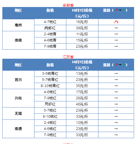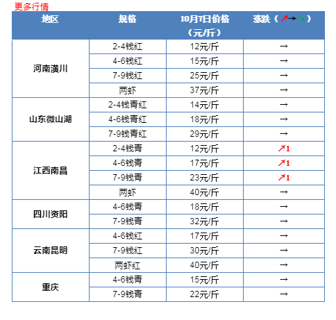 | 中國水產(chǎn)頻道報(bào)道, 據(jù)了解,昨天湖北、安徽、江蘇、湖南以及河南等地區(qū)小龍蝦的塘頭價(jià)出現(xiàn)全線上漲,最高漲幅達(dá)到3元/斤。具體上漲情況見下表! 據(jù)了解,10月7日是小龍蝦批發(fā)價(jià)也是繼續(xù)呈現(xiàn)回暖趨勢。其中,湖北荊門、江西南昌以及安徽亳州等地的批發(fā)價(jià)上漲明顯。目前,湖北荊門地區(qū)4-6錢青蝦報(bào)價(jià)15元/斤,上漲1元/斤;7-9錢青蝦報(bào)價(jià)21元/斤,漲1元/斤;安徽亳州地區(qū)4-7錢紅蝦已經(jīng)賣到16元/斤,漲1元/斤;江西南昌地區(qū)2-4錢青蝦報(bào)價(jià)12元/斤,上漲1元/斤4-6錢青蝦報(bào)價(jià)17元/斤,上漲1元/斤;7-9錢青蝦報(bào)價(jià)28元/斤,漲1元/斤。但是,從業(yè)內(nèi)人士了解到,目前湖北一些地區(qū)小龍蝦還是非常難賣,導(dǎo)致大家對明年的小龍蝦行情普遍不太看好。明年小龍蝦到底還有沒有搞頭,歡迎加小編微信交流分享! |