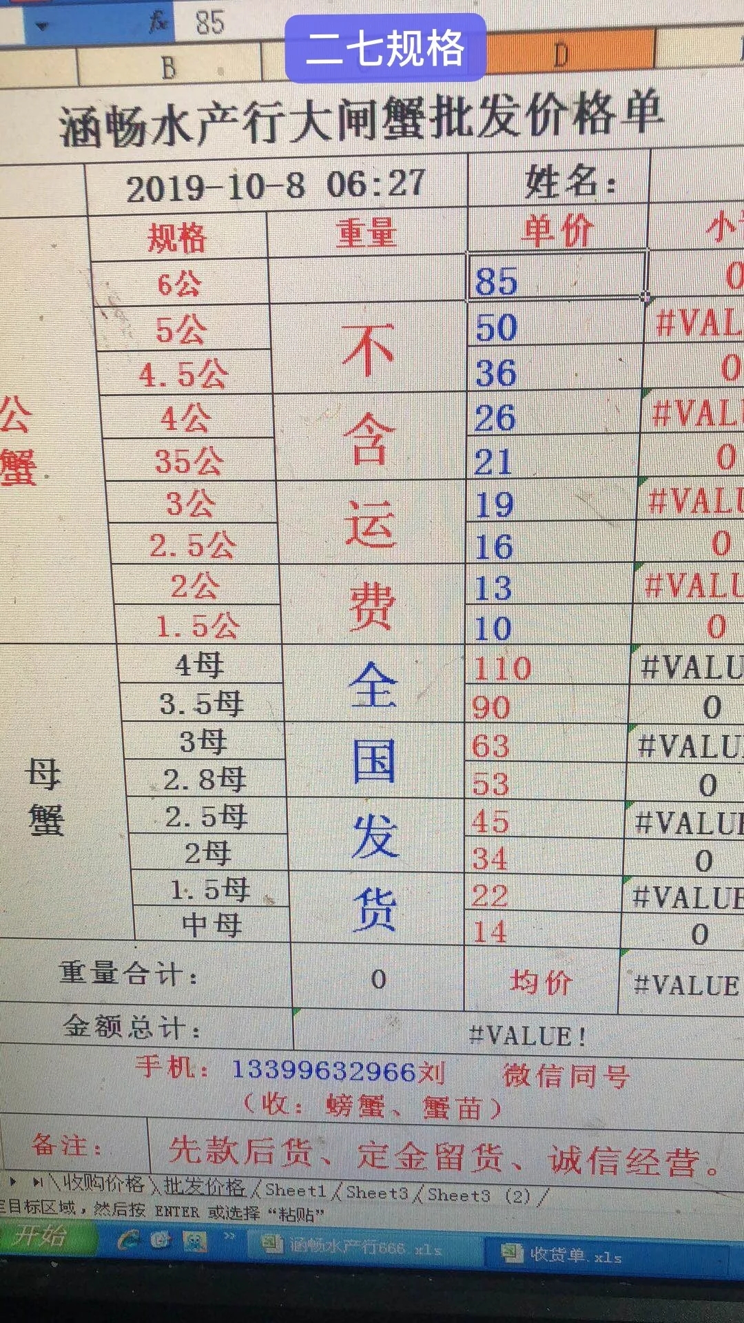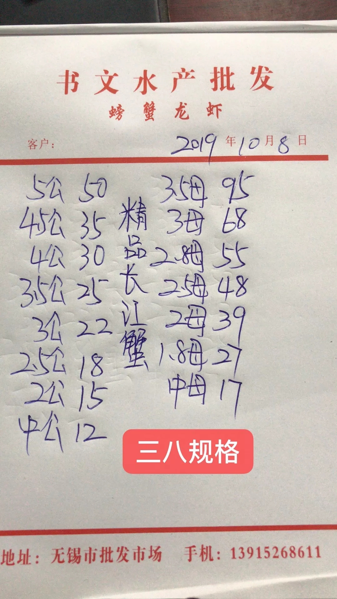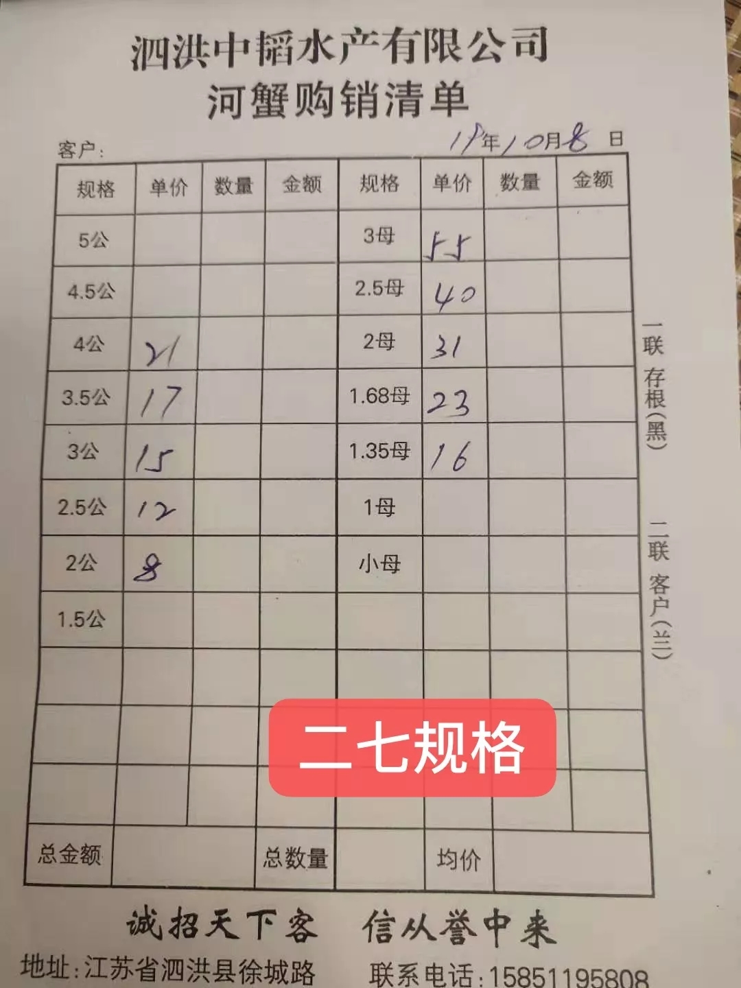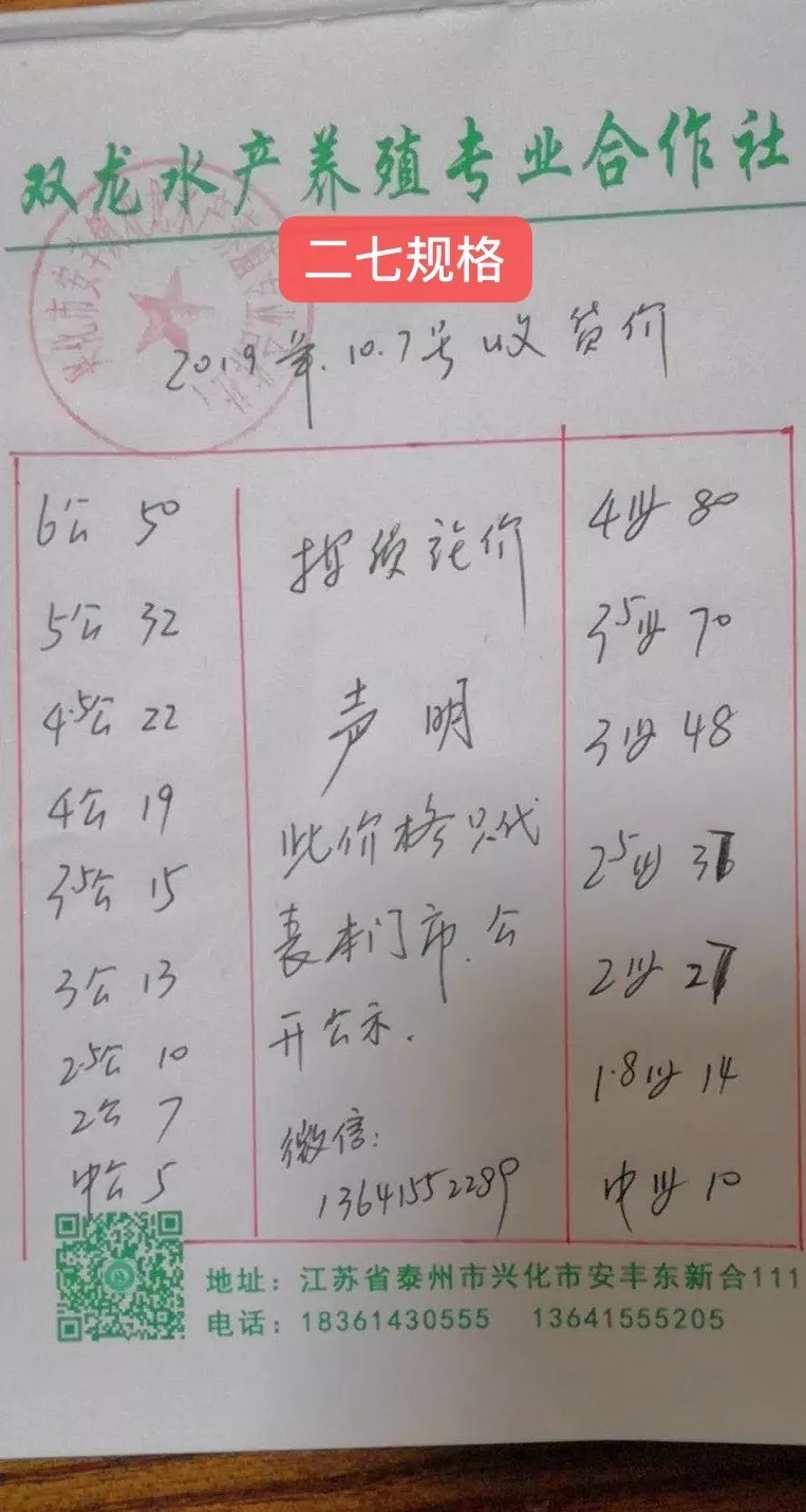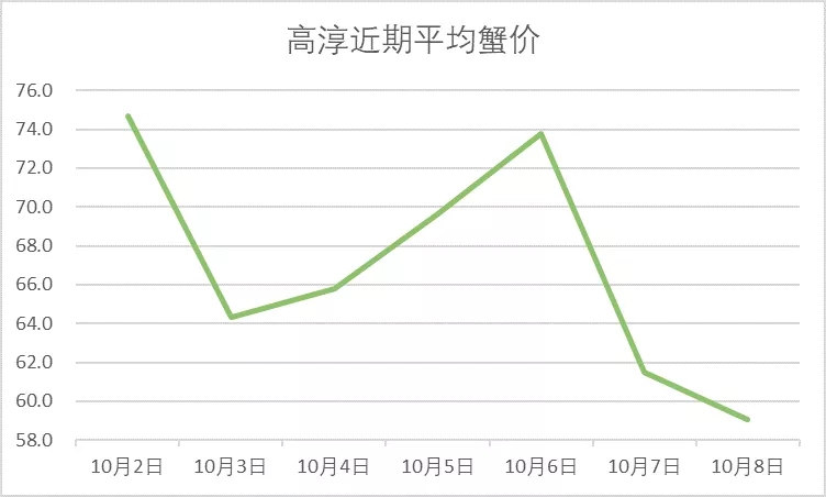 | 中國水產頻道原創報道, 最新行情解析 興化 近期興化蟹價持續下跌,昨天重陽節仍未拯救蟹價,節后行情不容樂觀。今天跌價以母蟹為主,公蟹價格較為穩定。與去年相比,近期蟹價遠低于去年同期。 今天興化5公、4.5公分別跌1元/斤、2元/斤,其他規格公蟹價格未變。母蟹整體下跌,4母、3母、2.5母跌5元/斤,跌價最多,其他規格母蟹跌1-4元/斤不等。 高淳 近期高淳蟹價波動較大,6日暴漲,7日暴跌,今天繼續下跌,節后跌價明顯,與去年同期相比,目前蟹價明顯偏低。 今天高淳部分公蟹微跌,母蟹小跌。2.5公、3公、4公、4.5共均跌3元/斤,值得一提的是,2兩公蟹漲2元/斤。3母由95元/斤跌至85元/斤,跌價最多,其他規格母蟹跌2-5元/斤不等。 今日參考價 興化 此報價由興化丁老板提供 高淳 此報價由江蘇好潤固城湖店劉坤提供 此報價由江蘇好潤獅樹店田玲提供 泗洪 此報價由泗洪孫老板提供 馬鞍山 此報價由江蘇好潤塘南店張悅提供 宣城 此報價由宣城劉老板提供 無錫 |