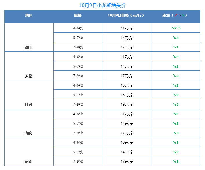 全線下跌!湖北小龍蝦塘頭價最高跌4元/斤!10月9日小龍蝦行情!