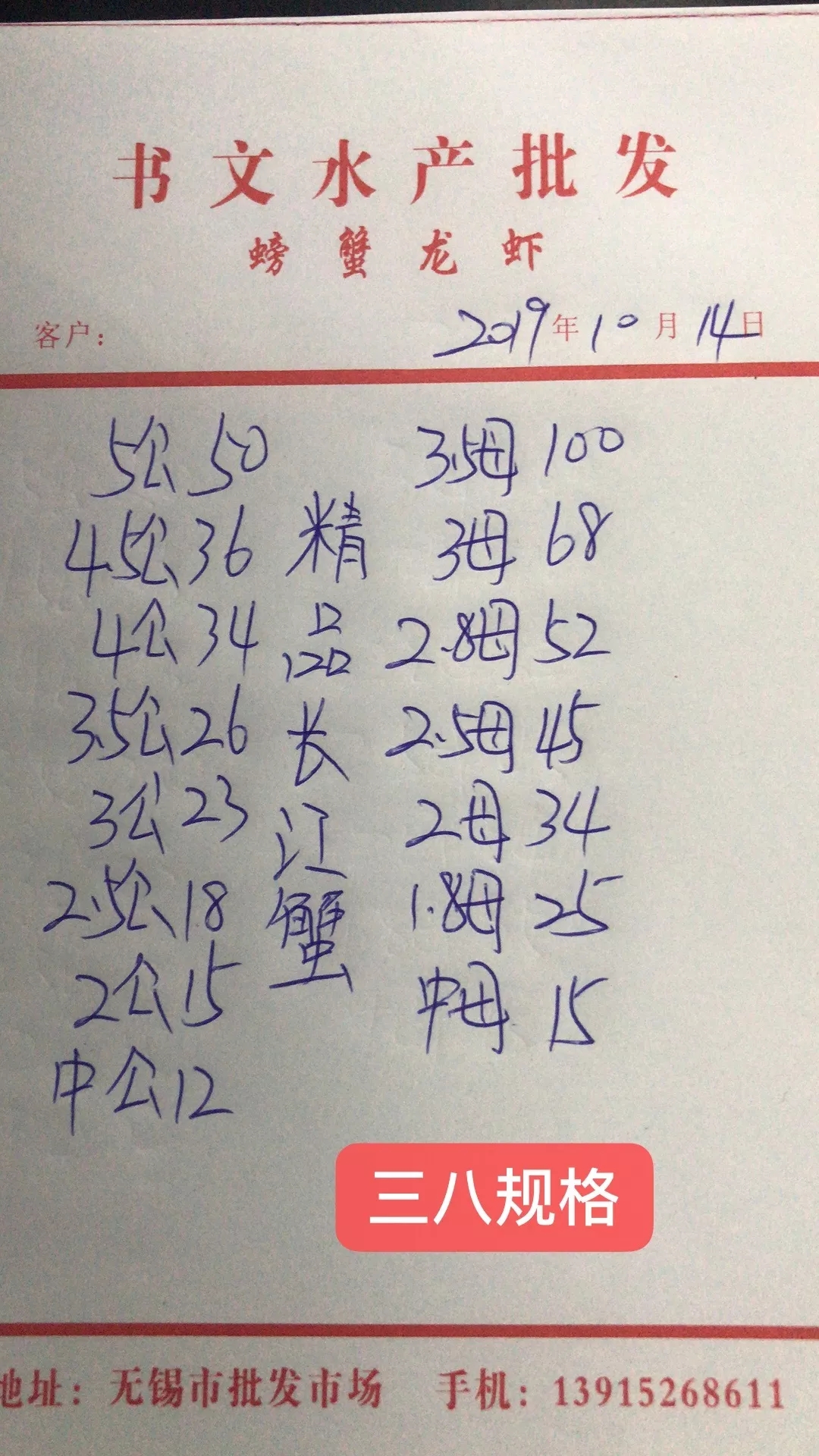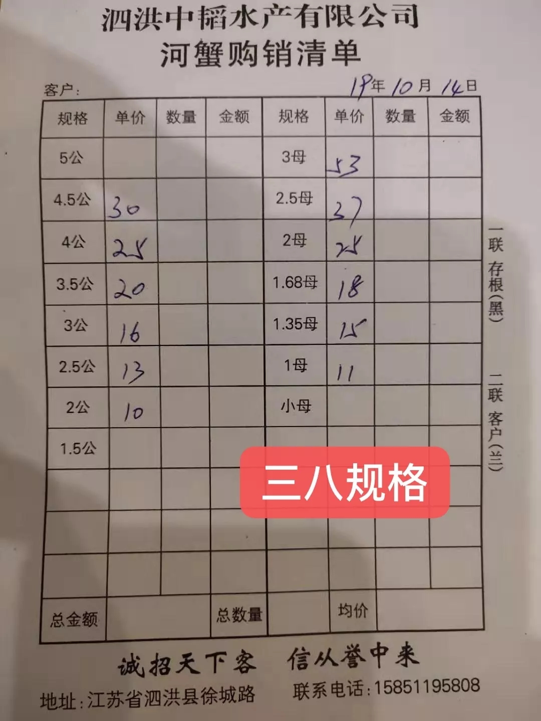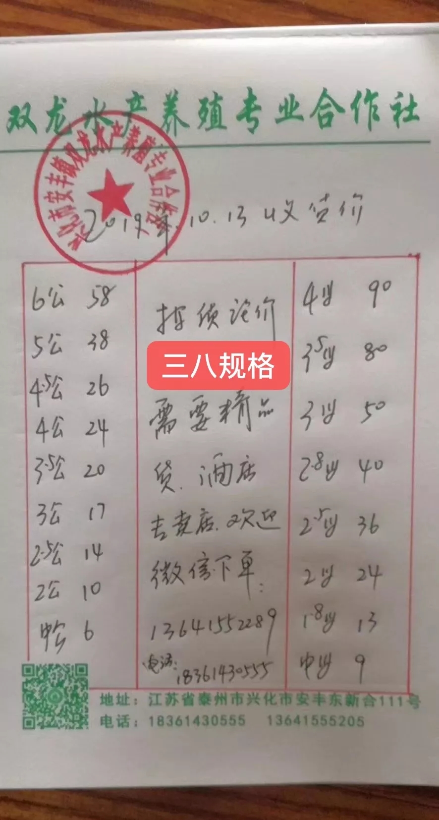 | 中國水產(chǎn)頻道原創(chuàng)報道, 蝦蟹行情每日播報 您身邊的行情顧問 歡迎關注蝦蟹前沿公眾號! 掃碼關注我們 最新行情解析 興化 自9日市場調(diào)整為硬三八規(guī)格后,興化平均蟹價基本穩(wěn)定在32-33元/斤左右。今天平均蟹價32.6元/斤,較昨天略為下跌。與去年同期相比,目前蟹價整體略低于去年。 今天興化公蟹價格未變,部分規(guī)格母蟹價格下跌,3母、2.8母均跌3元/斤,2.5母、2母跌1元/斤。 高淳 本周高淳蟹價整體起伏不大,平均蟹價在60元/斤左右。今天蟹價較昨天略為下跌,且明顯低于去年同期。 今天高淳精品門市僅1.8母漲2元/斤,而5公、4.5公、3母等大規(guī)格蟹均跌5元/斤,4公跌2元/斤,3.5公、2母跌1元/斤。 今日參考價 興化 此報價由興化丁老板提供 高淳 此報價由江蘇好潤固城湖店劉坤提供 泗洪 此報價由泗洪孫老板提供 馬鞍山 此報價由江蘇好潤塘南店張悅提供 無錫 此報價由無錫王老板提供 宣城 此報價由宣城劉老板提供 |