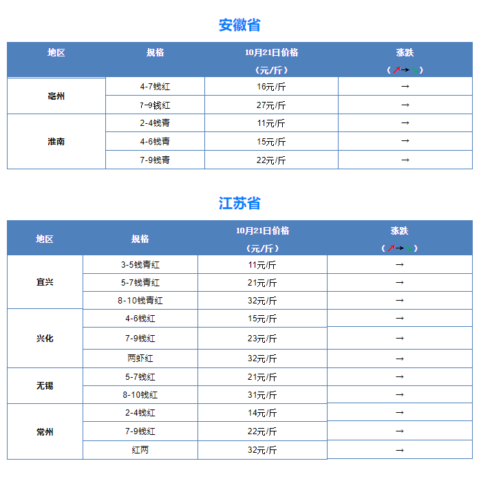 摘要: 中國水產頻道原創報道, 10月21日全國小龍蝦市場批發價。